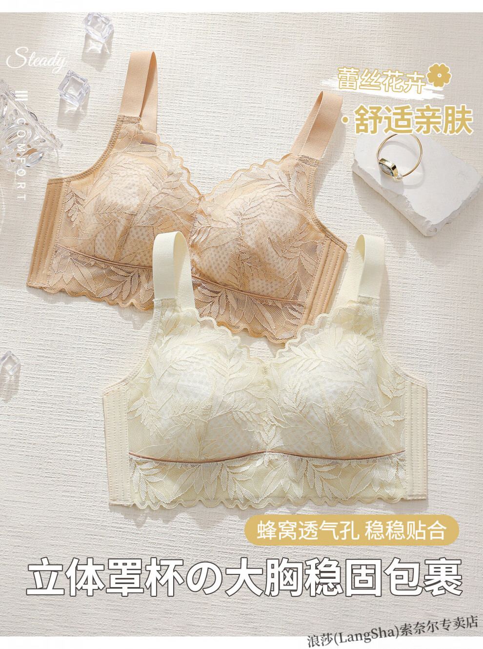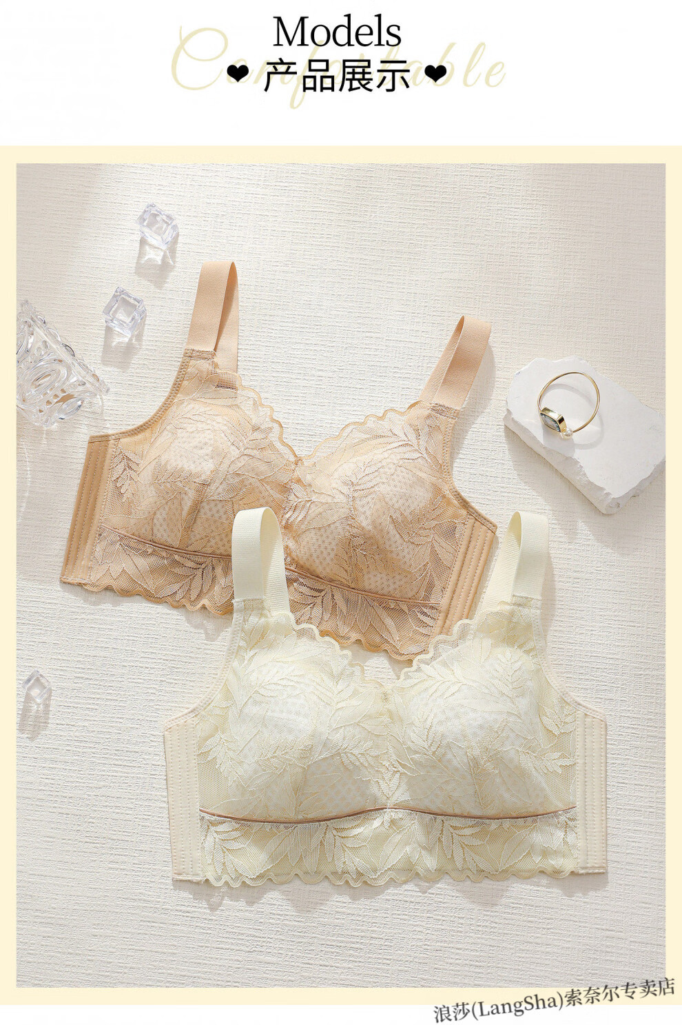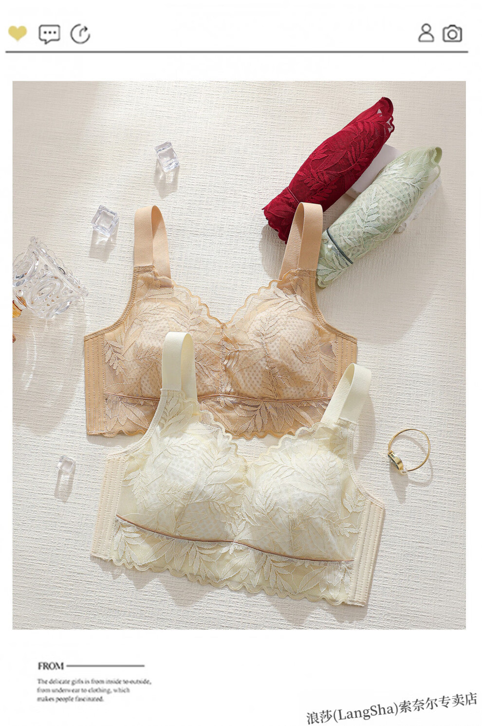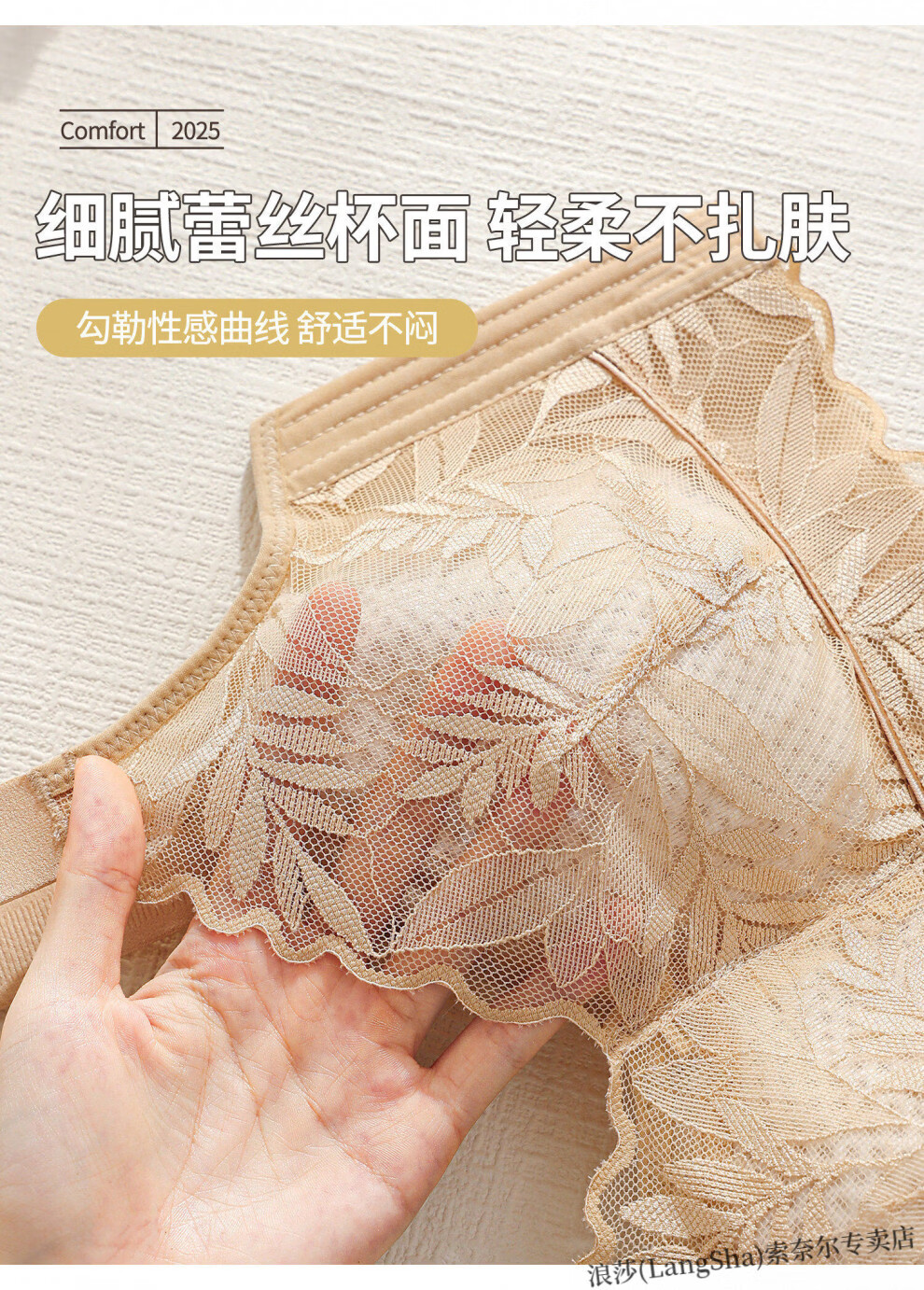 LangSha thin full-cup bra for women with large breasts, narrowing the secondary breasts, preventing sagging, holding up, comfortable lace red bra, champagne color 75B 34/75BC, full cup