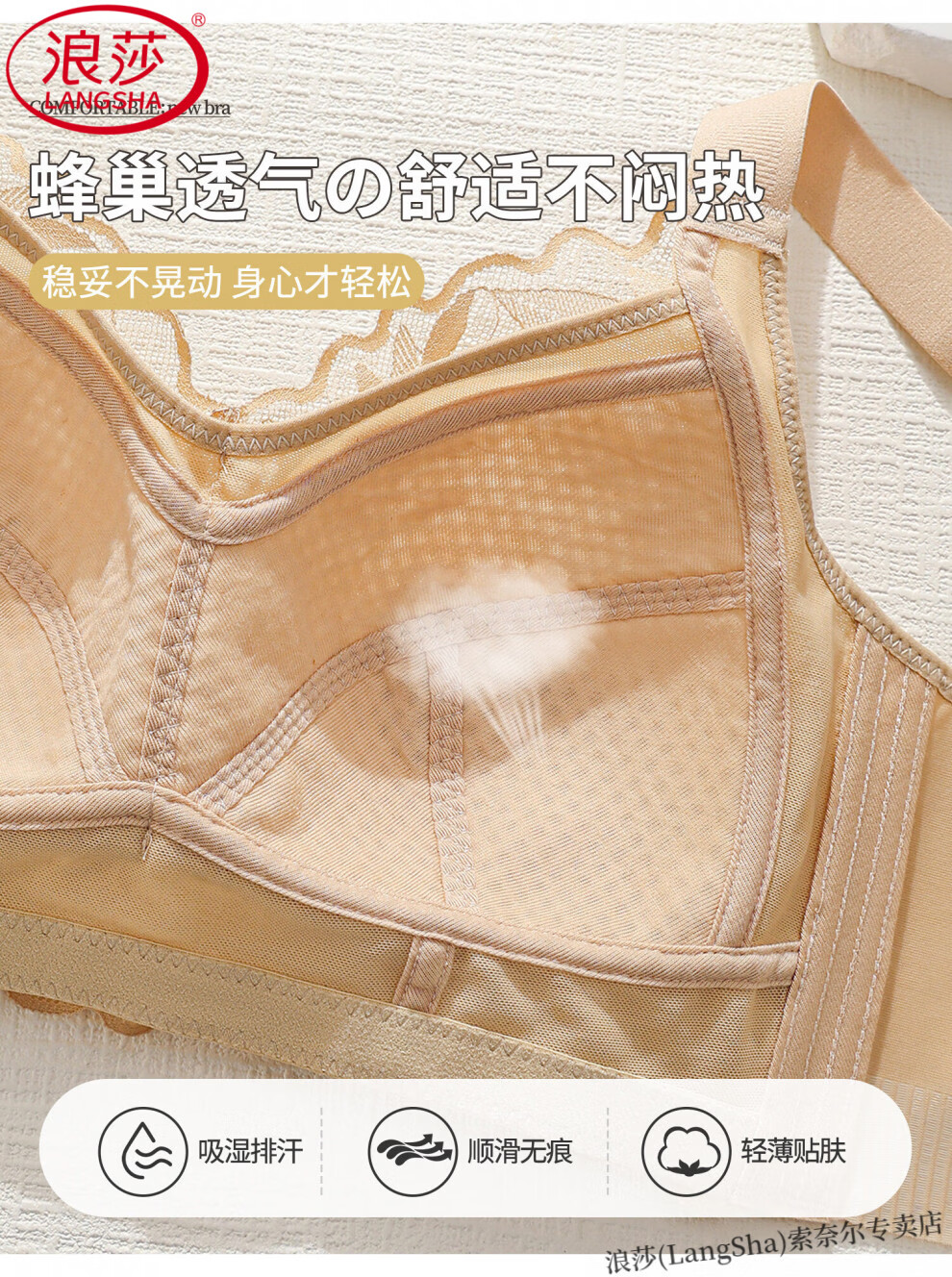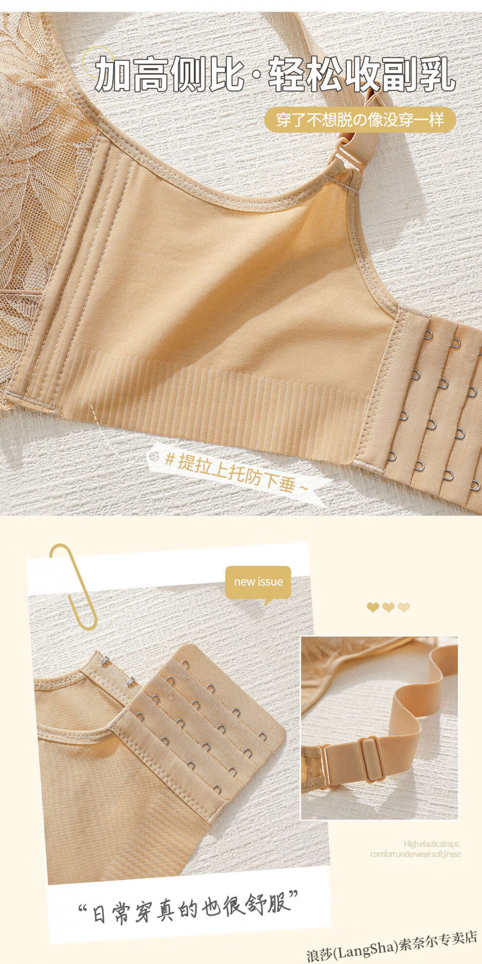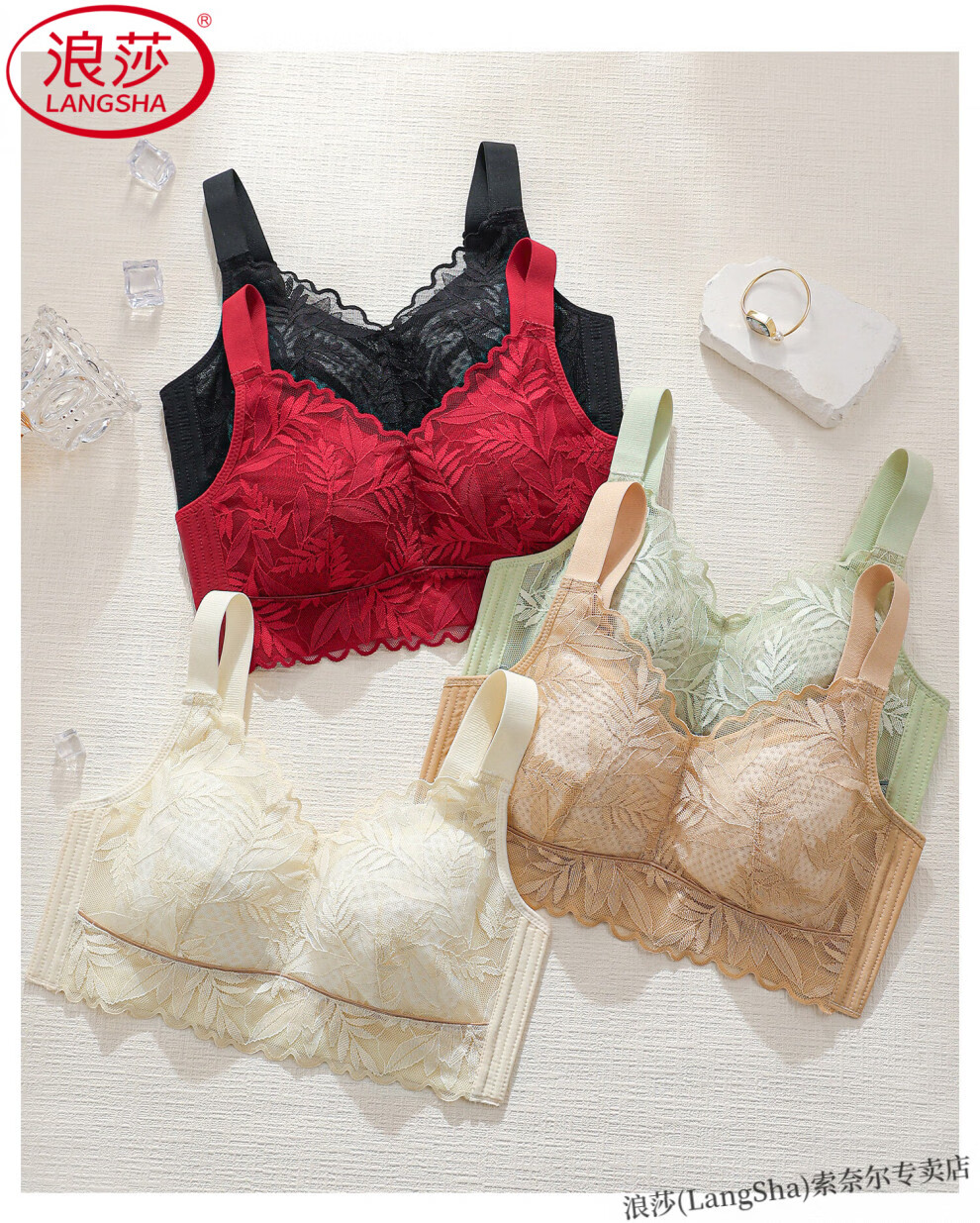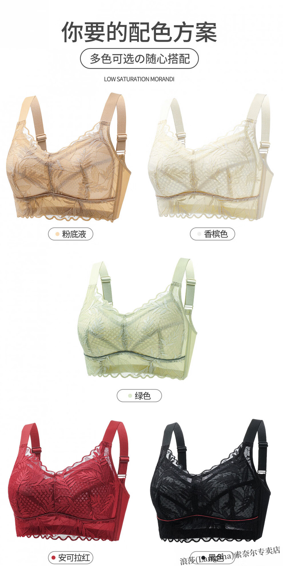 LangSha thin full-cup bra for women with large breasts, narrowing the secondary breasts, preventing sagging, holding up, comfortable lace red bra, champagne color 75B 34/75BC, full cup