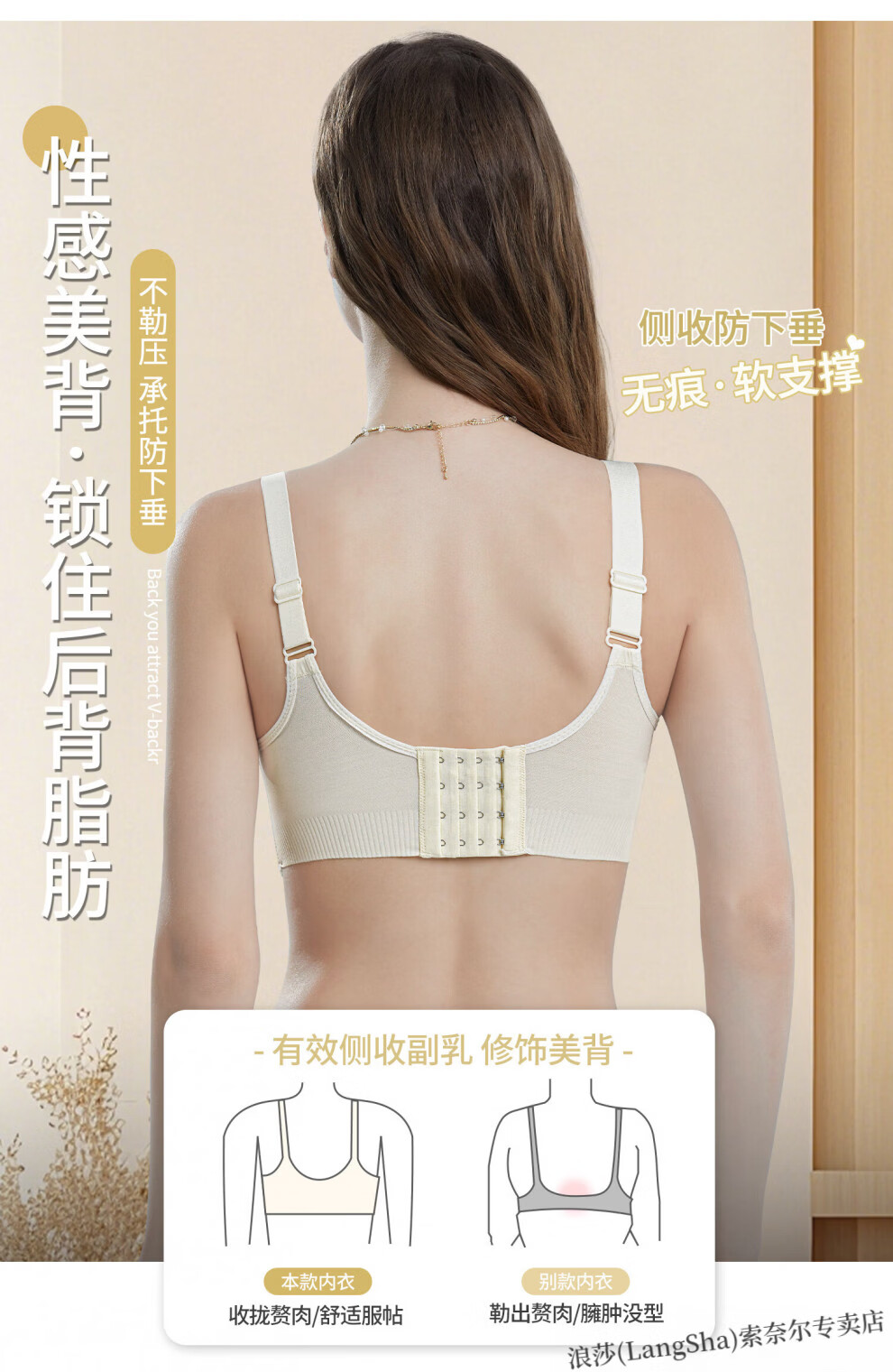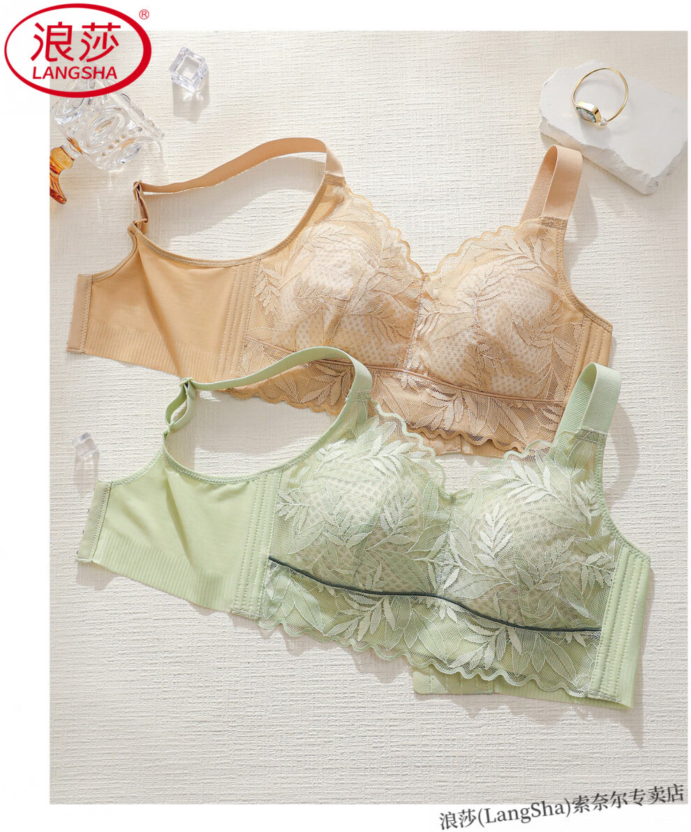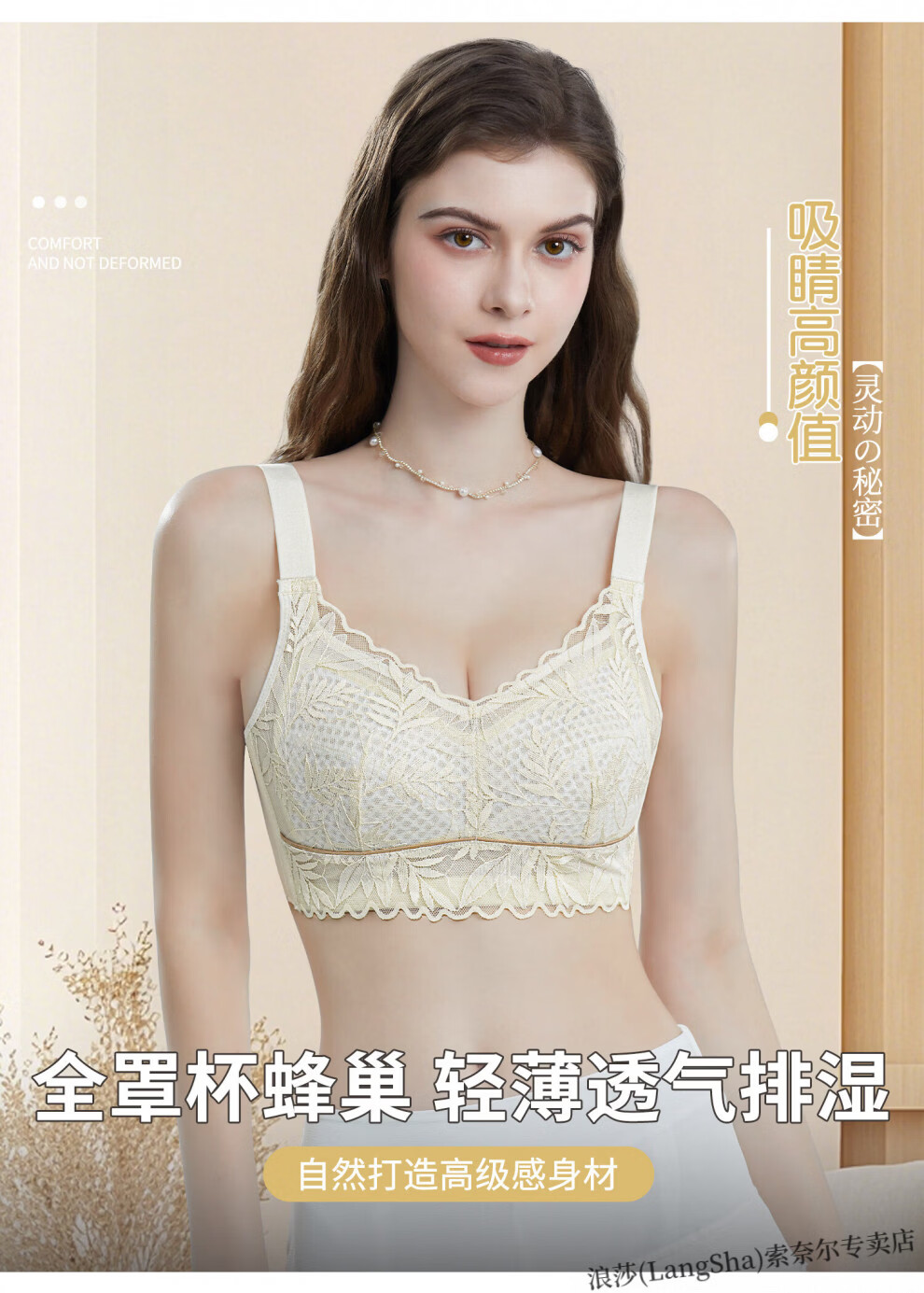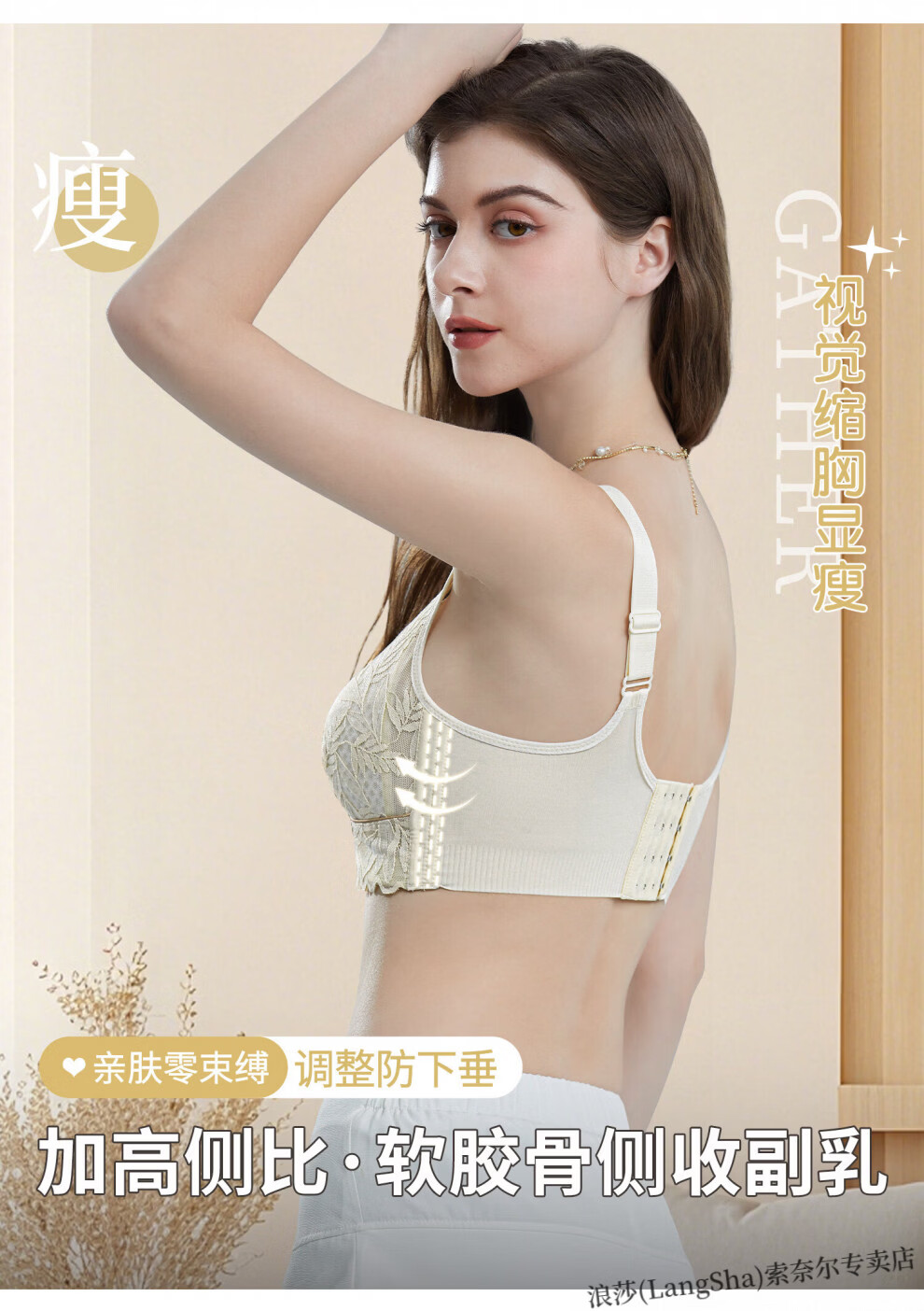 LangSha thin full-cup bra for women with large breasts, narrowing the secondary breasts, preventing sagging, holding up, comfortable lace red bra, champagne color 75B 34/75BC, full cup
