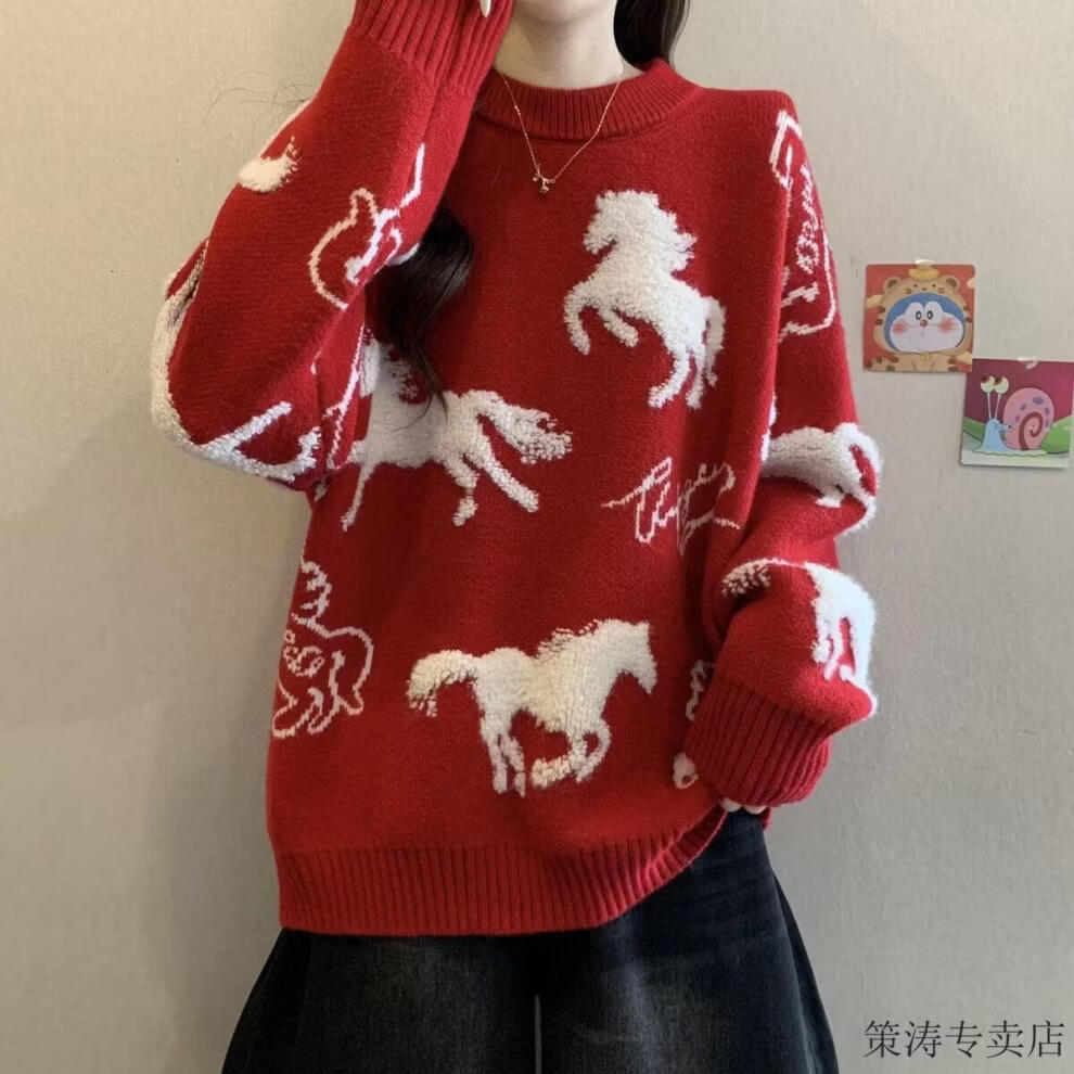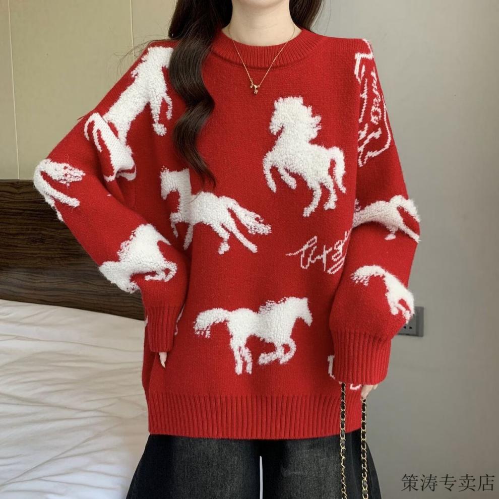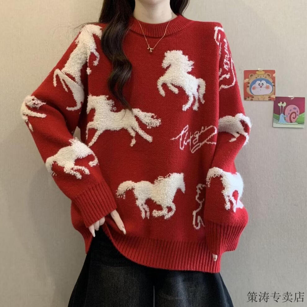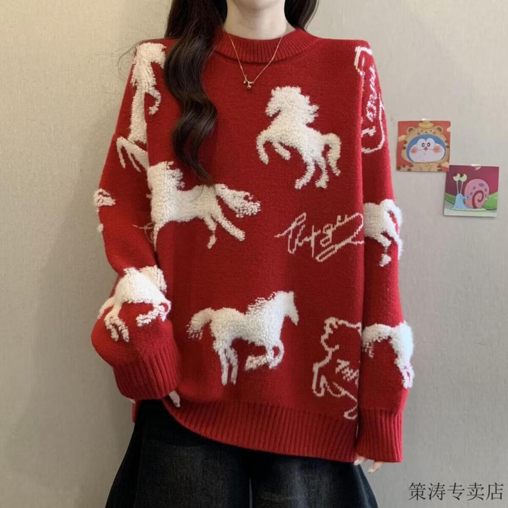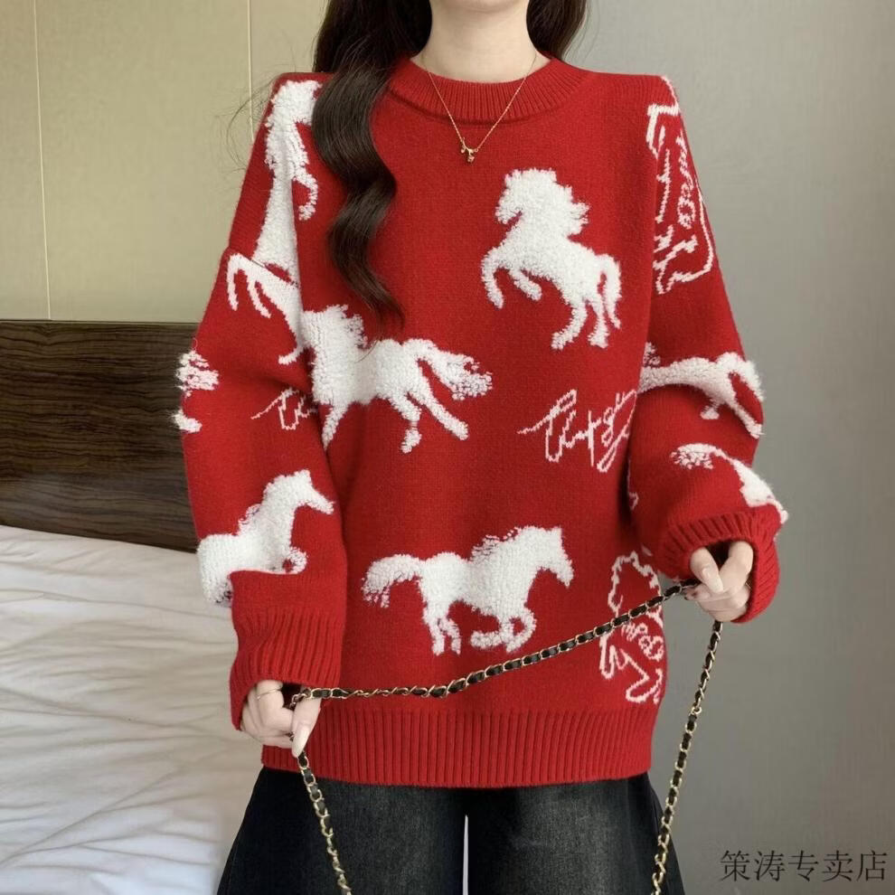 Hengyuanxiang Christmas Couple Outfit Red Sweater Men and Women's Animal Year 2025 Autumn and Winter New New Year's Year of the Horse Thickened Sweater Red S 80-90Jin Jin is equal to 0.5 kg