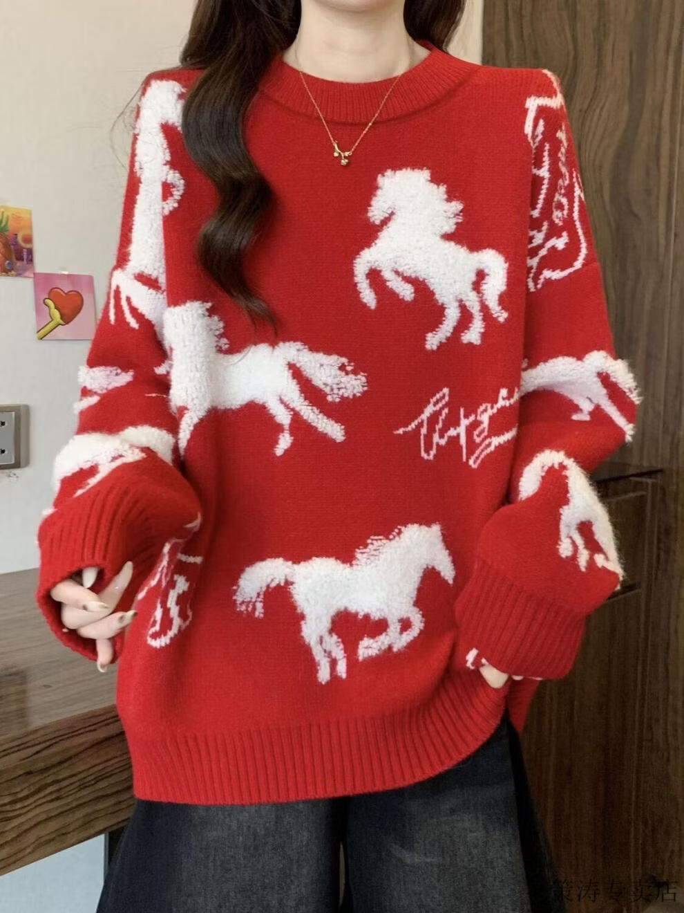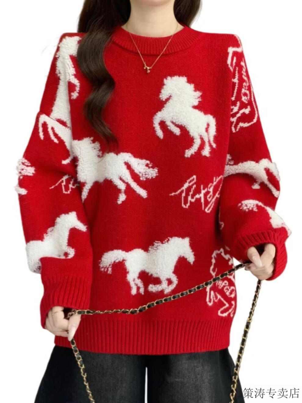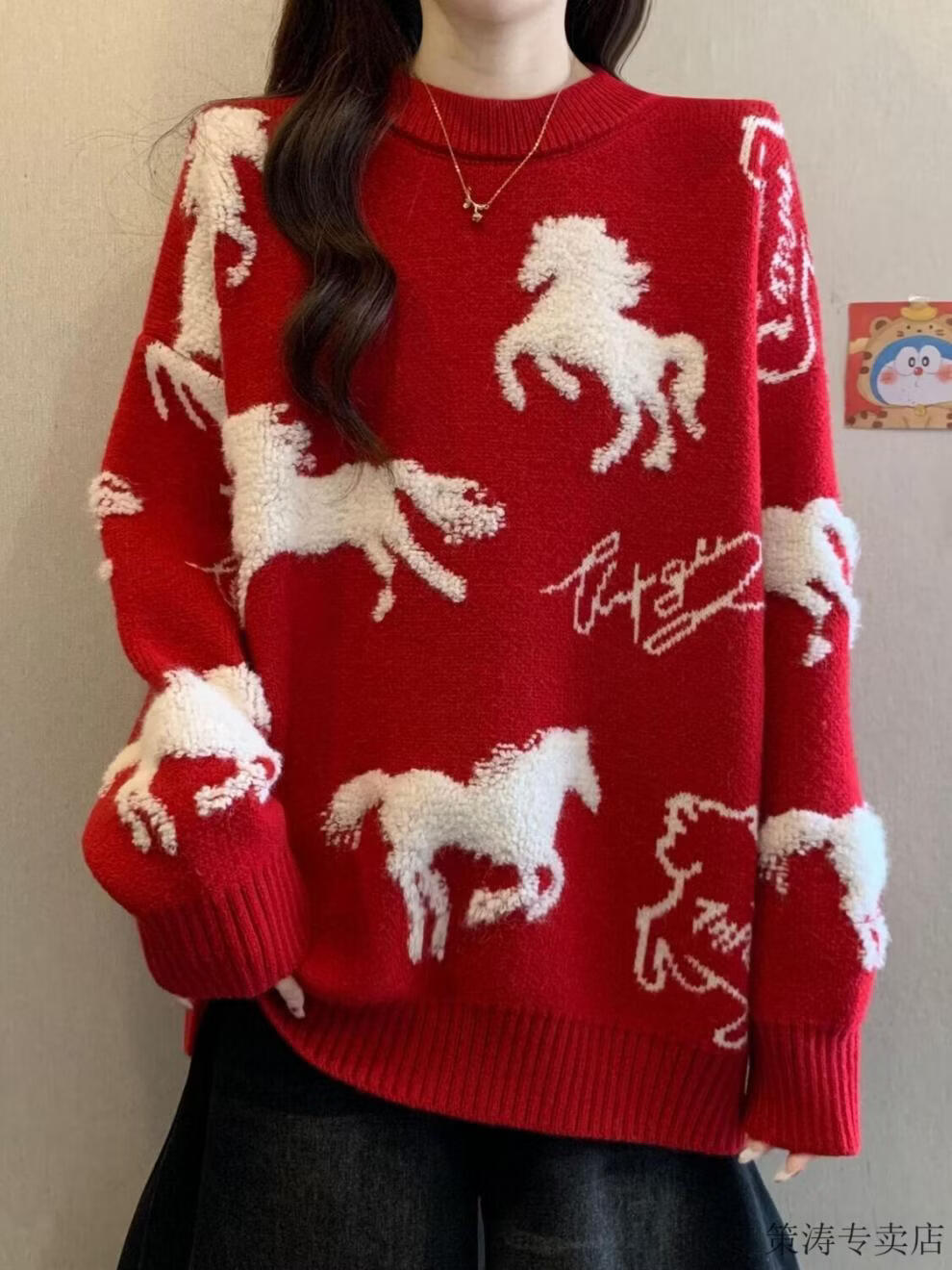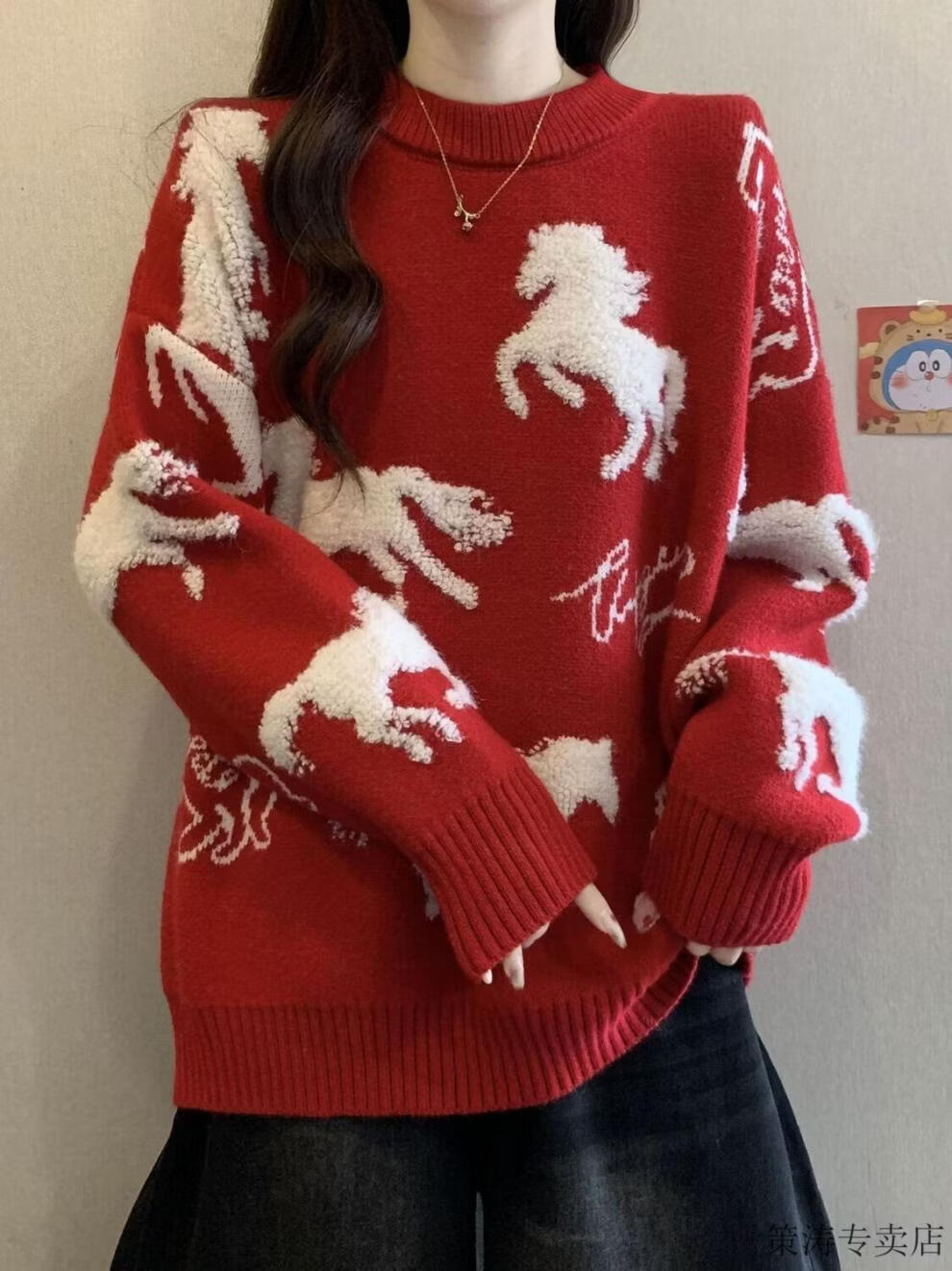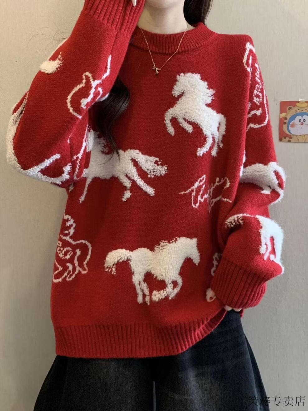 Hengyuanxiang Christmas Couple Outfit Red Sweater Men and Women's Animal Year 2025 Autumn and Winter New New Year's Year of the Horse Thickened Sweater Red S 80-90Jin Jin is equal to 0.5 kg