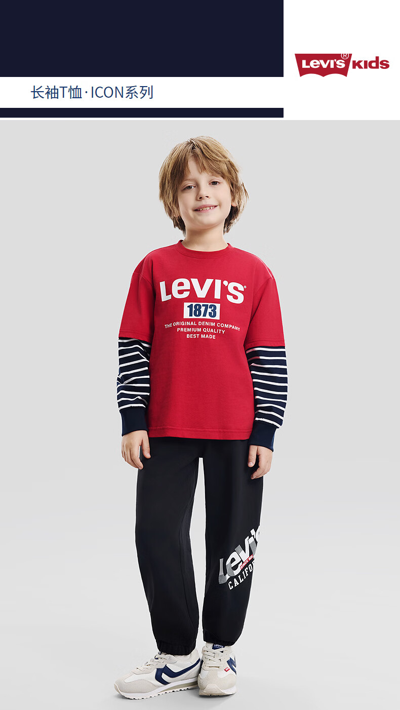 Levi s New Year Horse Levi's Boys Red Long Sleeve T-Shirt Children's Pullover 2026 New Year Clothes Chili Red 160/80 Recommended Height 158-170cm