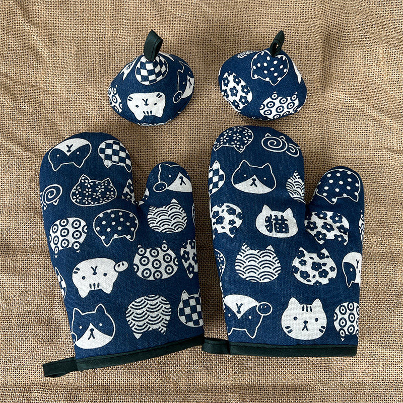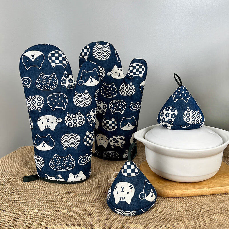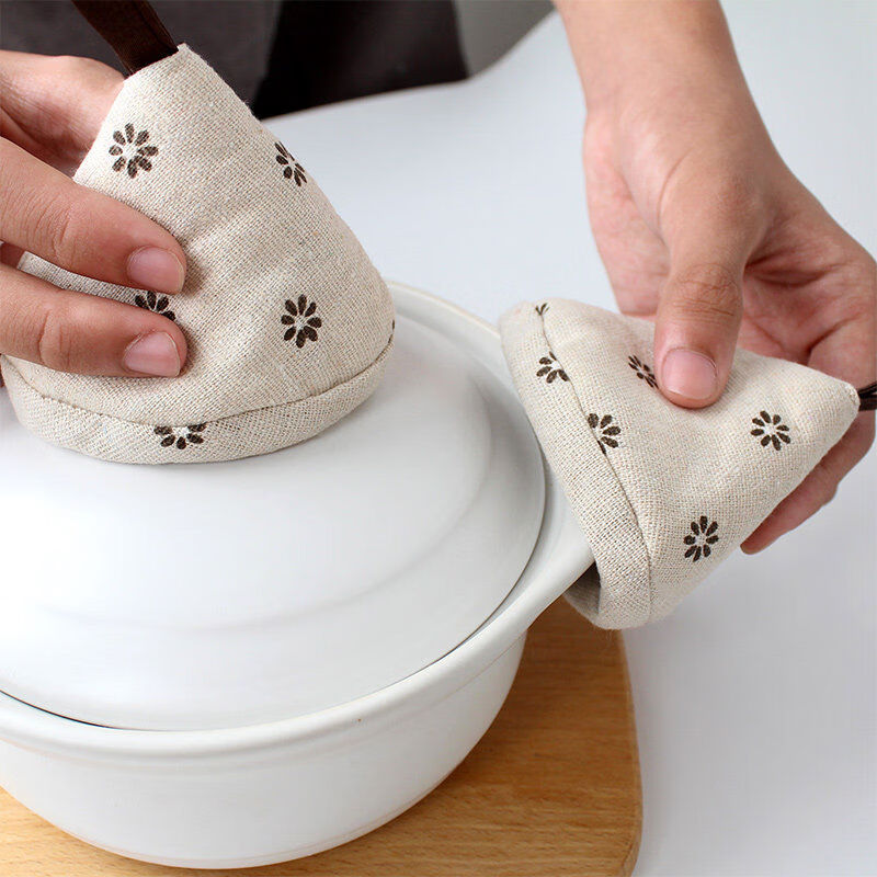 Sanqihu insulated triangular pot cap, high temperature resistant, anti-scalding, thickened anti-scalding gloves, microwave baking oven oven gloves, extended, small flower gloves, lace thickened style 1 piece