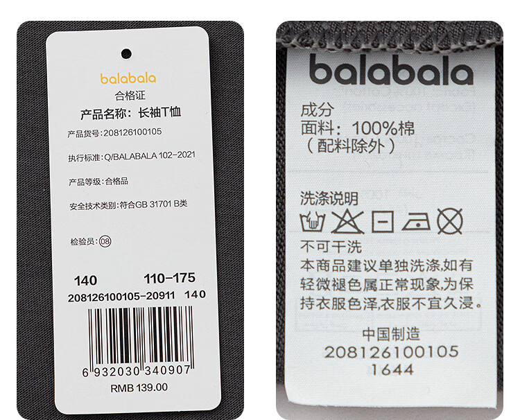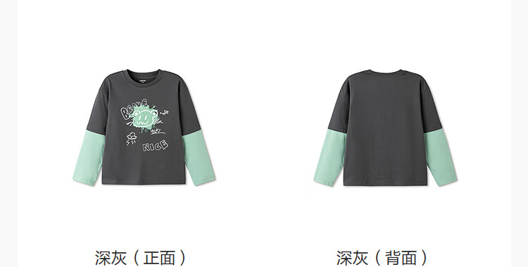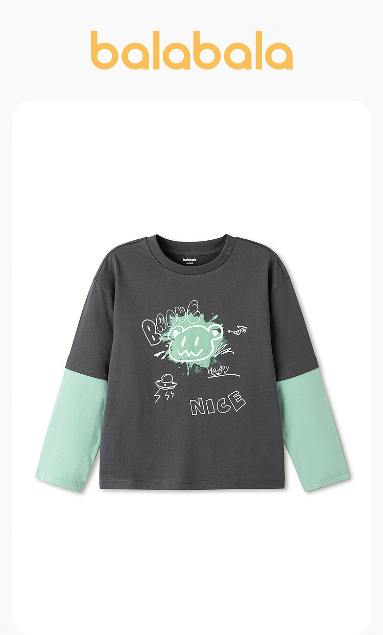 BALABALA balaOne Balabala children's clothing children's long-sleeved T-shirt boys 2026 spring new fake two-piece top dark gray 20911 160