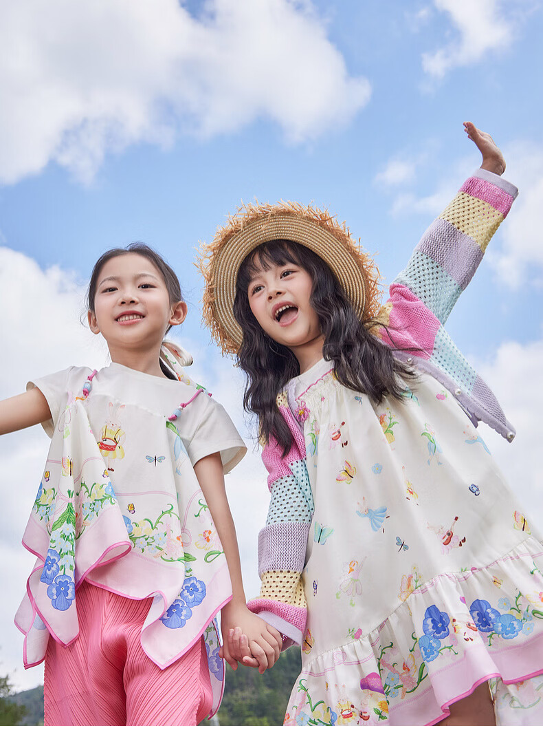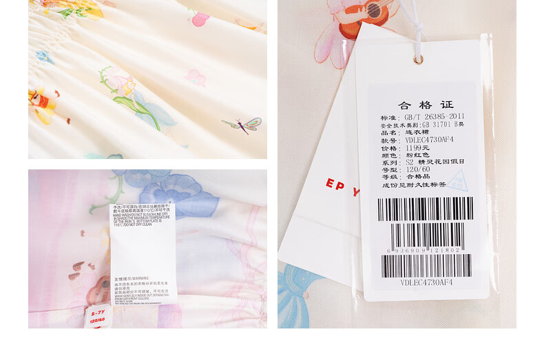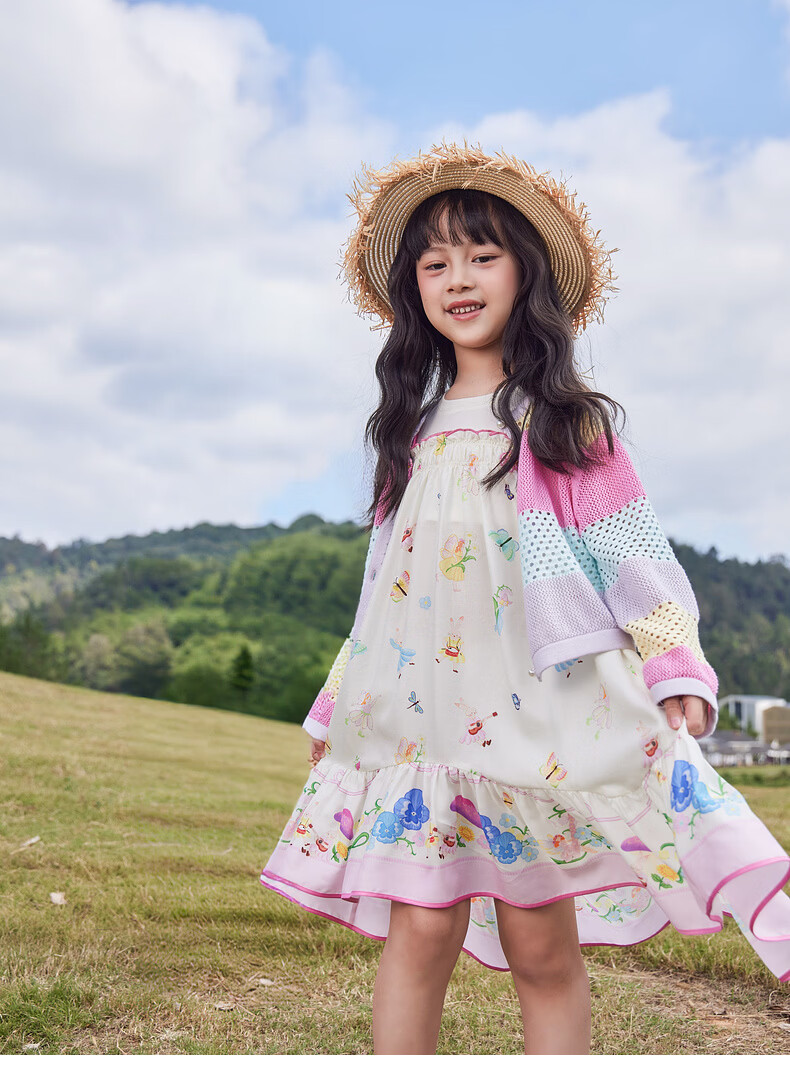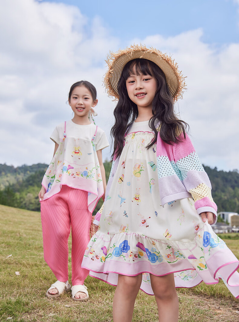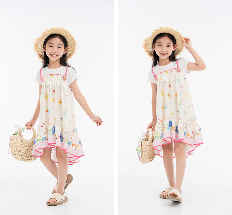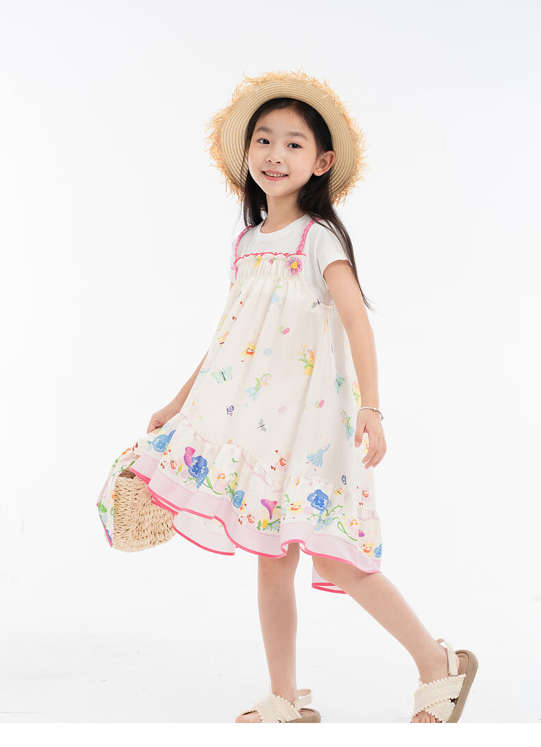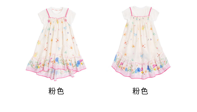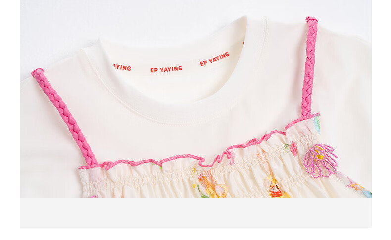 EP YAYING children's clothing 2026 spring new fake two-piece short-sleeved large skirt casual dress for girls, pink 120