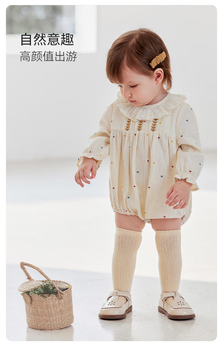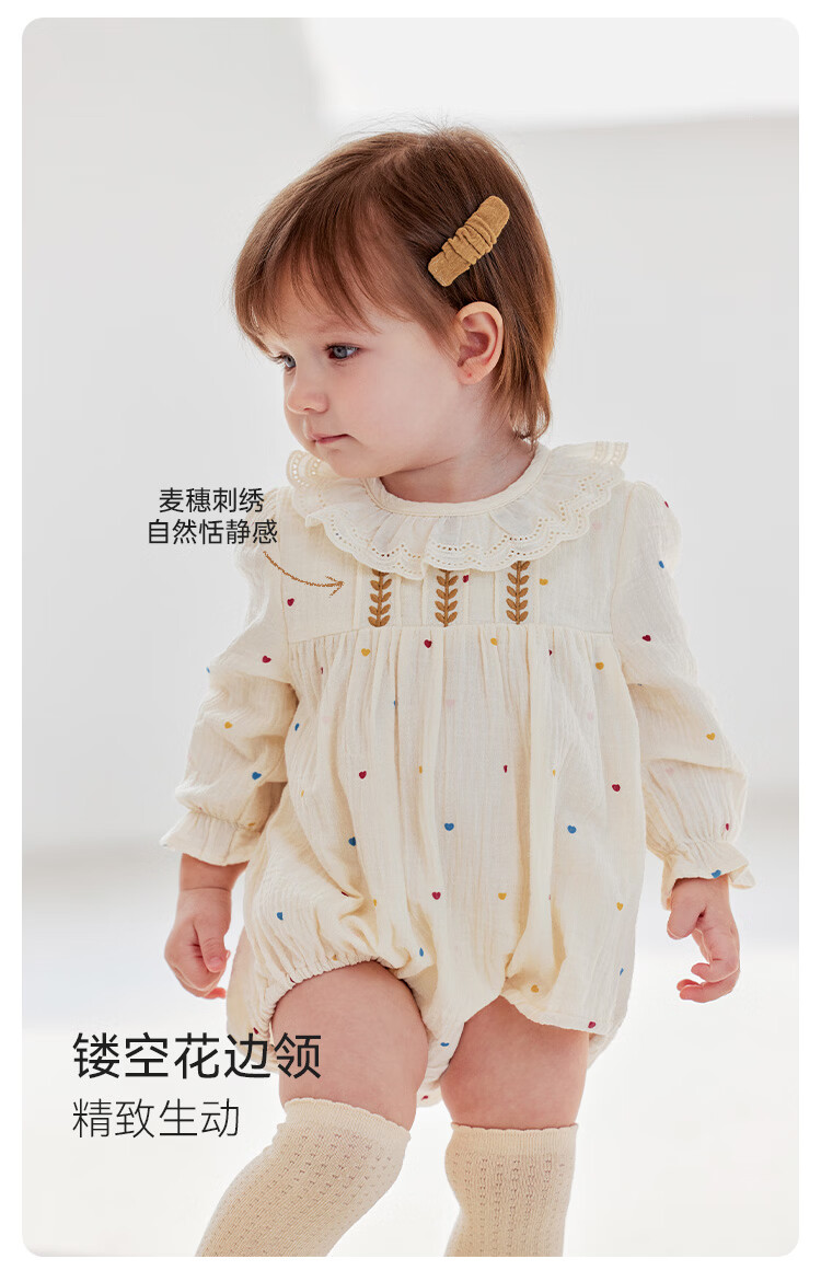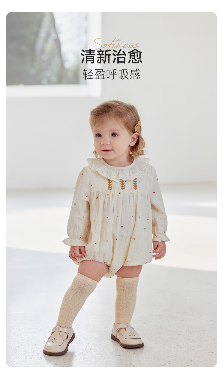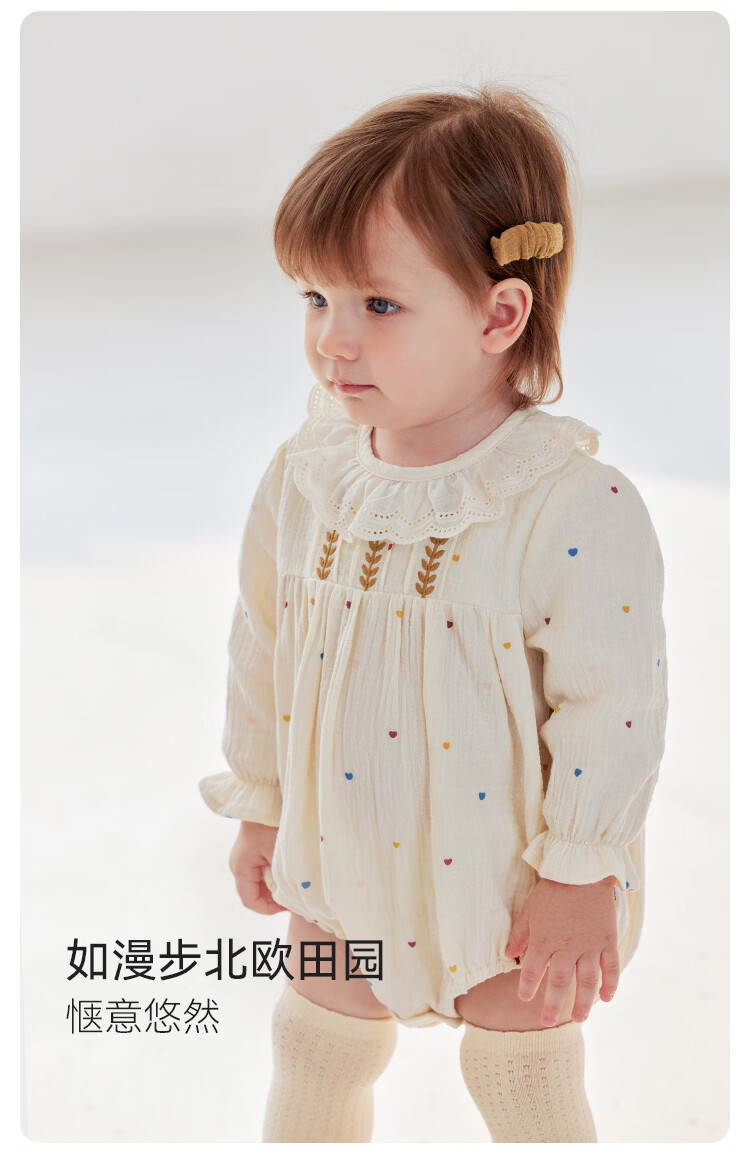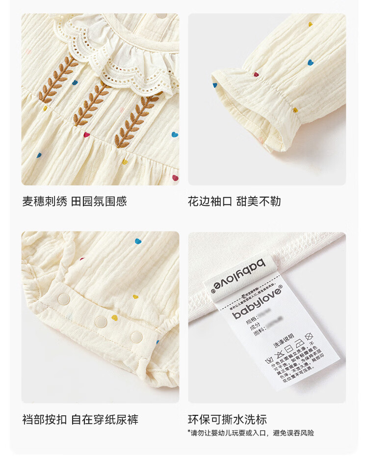 Babylove baby girl spring and autumn pure cotton gauze baby triangle harem princess sweet outing clothes Stowe white 66cm