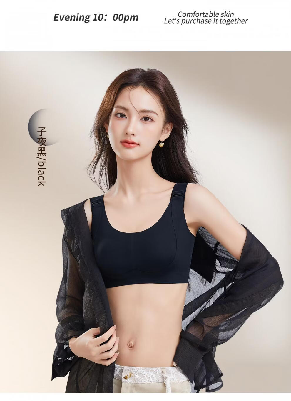 Modal 7-level adjustable pull-up bra for women with big breasts, full cup, thin push-up, side breasts, anti-sagging bra, Midnight Black L (recommended 115-130Jin Jin equals 0.5kg 36/80BCD)