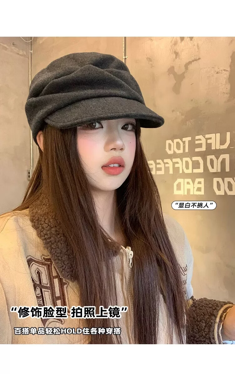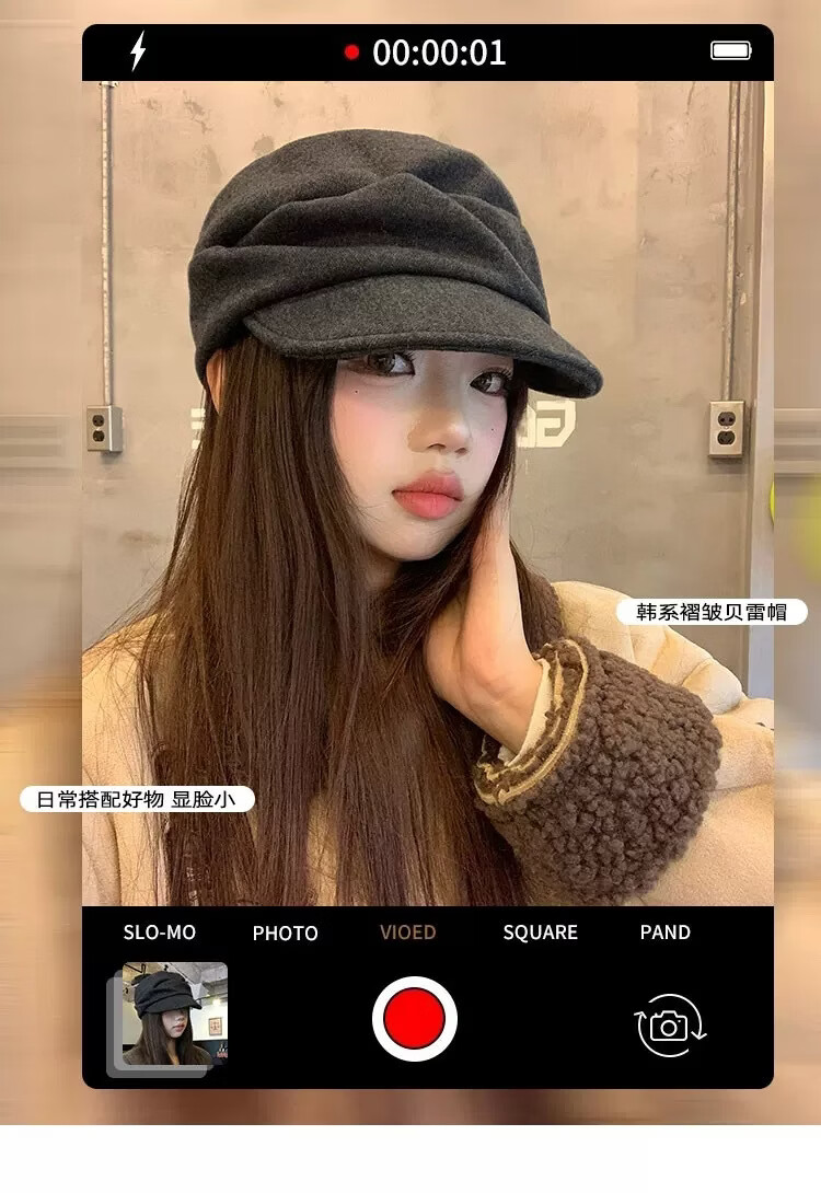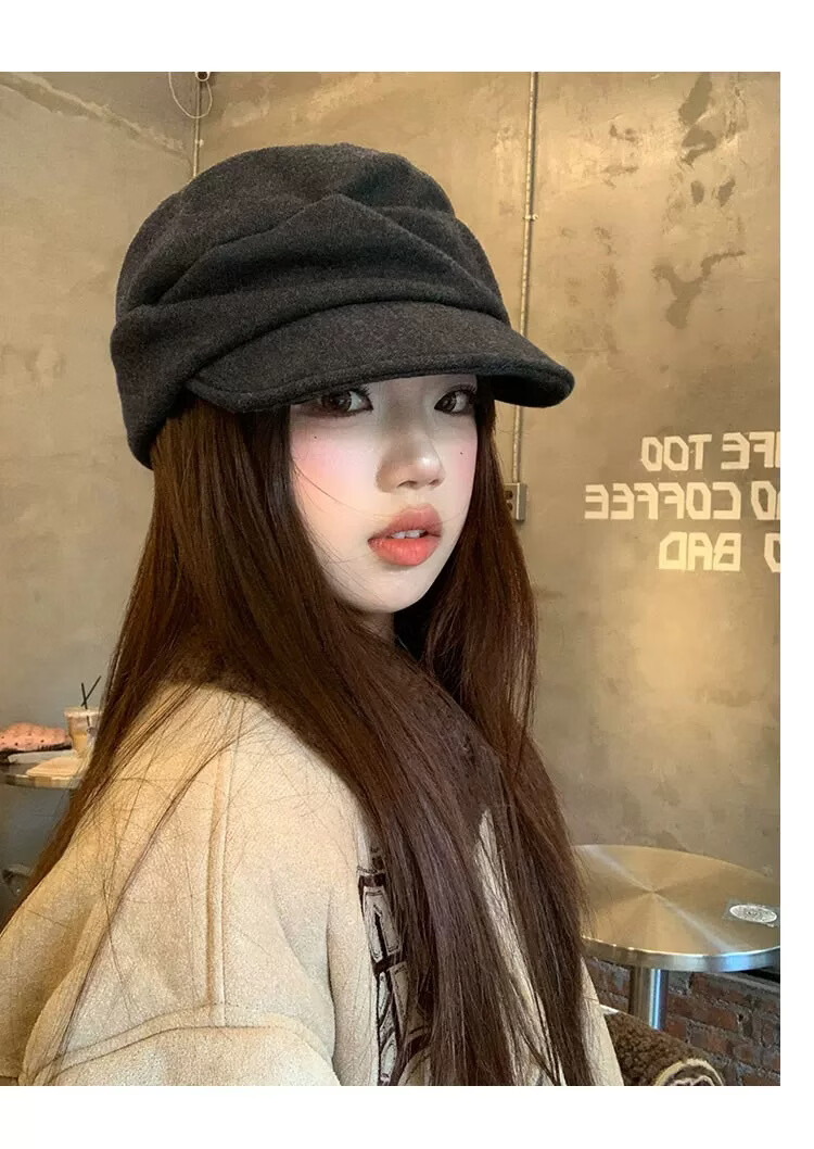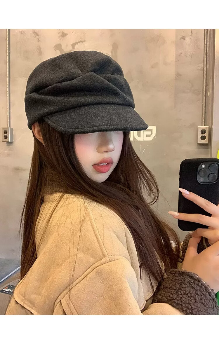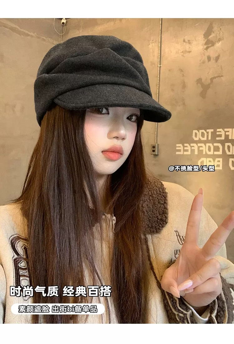 No top, no bottom, Japanese Yamamoto style black pleated beret for women, autumn and winter face-showing small newsboy hat, large head circumference, versatile painter hat, gray, one size fits all, adjustable