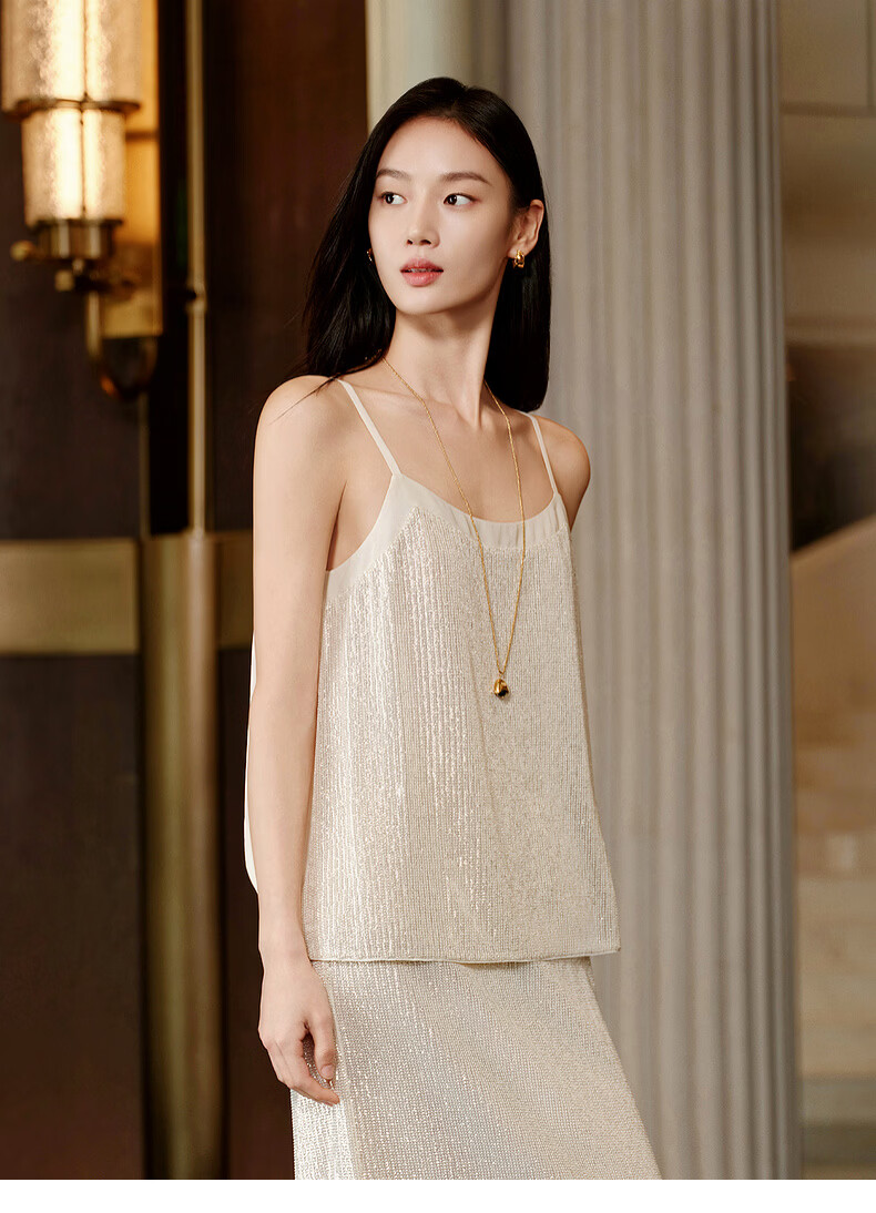 EP Yaying high-end series heavy sequin embroidery shining U-neck suspender top 2026 spring new style 2302A beige M