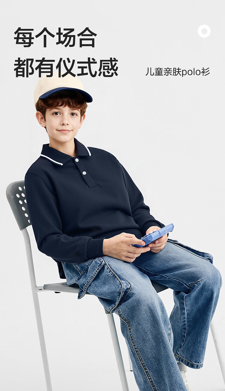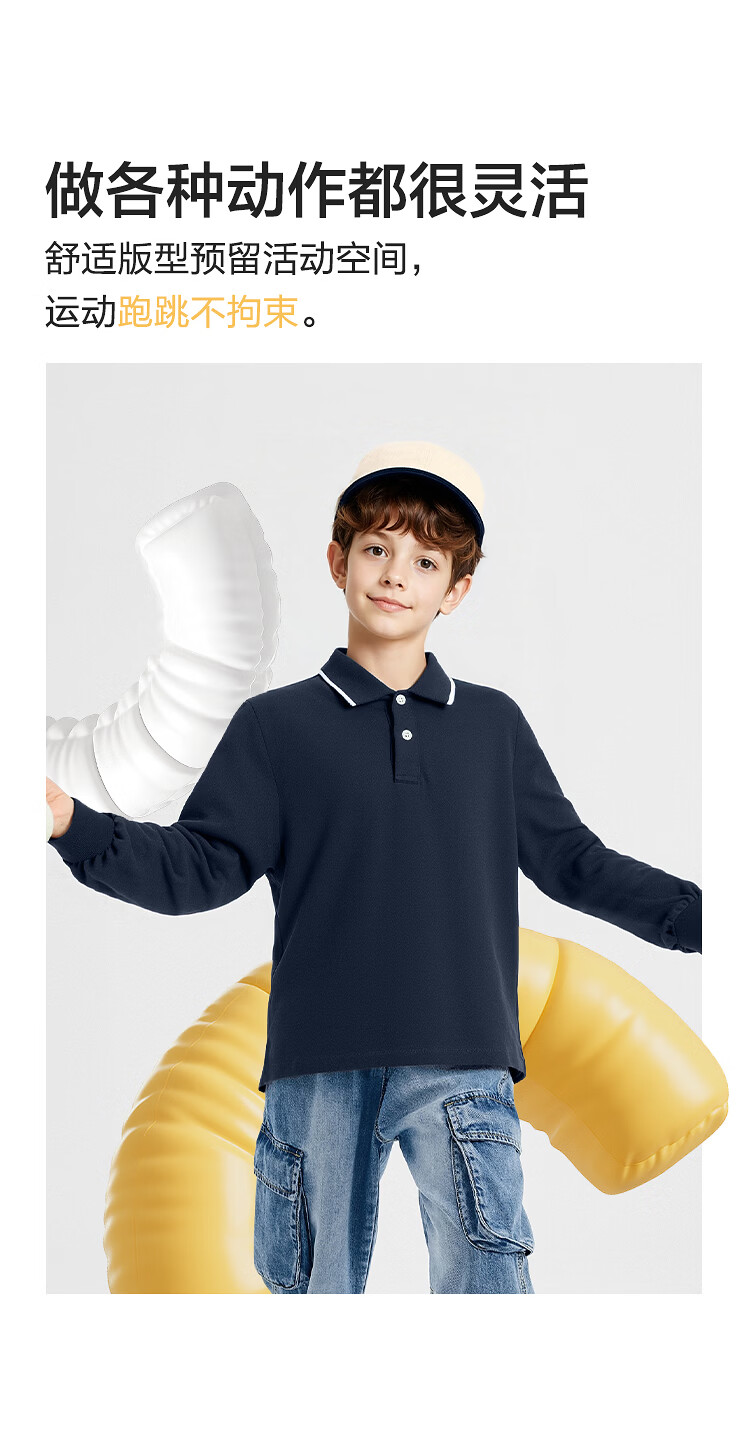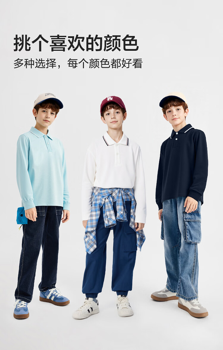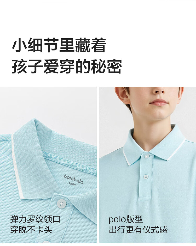 BALABALA balaOne BALABALA children's clothing children's long-sleeved T-shirt boys 2026 spring new POLO shirt versatile ice blue 80916 170