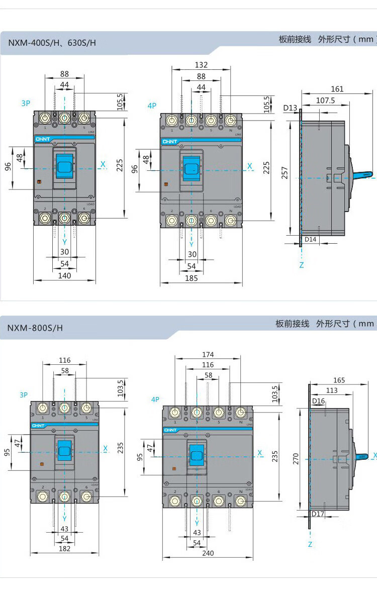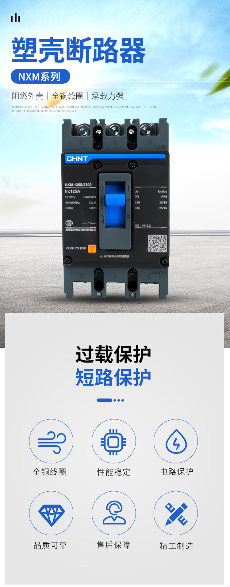 Автоматический выключатель в литом корпусе Chint Kunlun NXM-63S/3300 125 160 250 400 630 800A 3P NXM-630S/3300630A