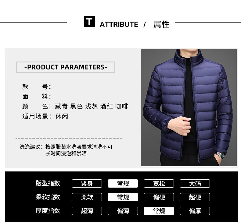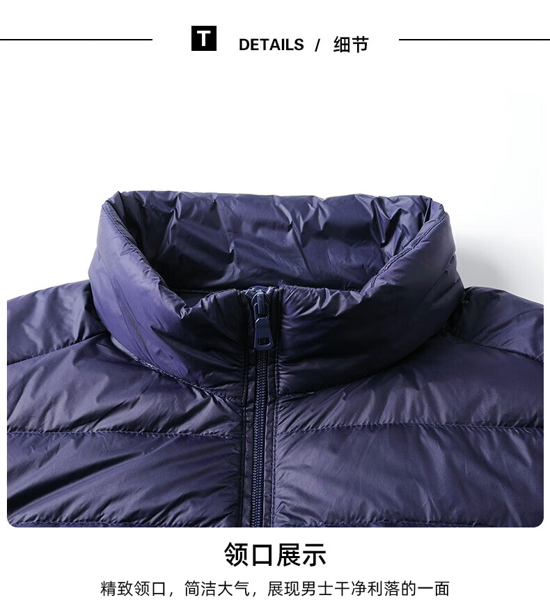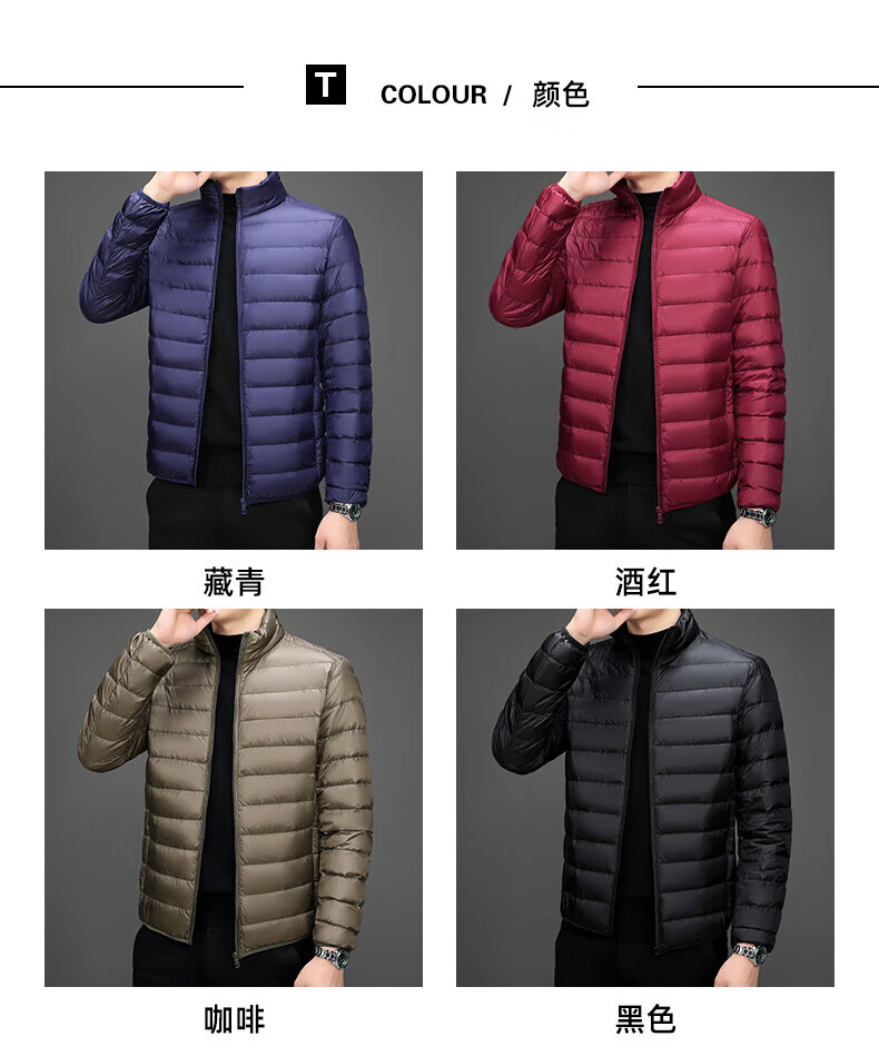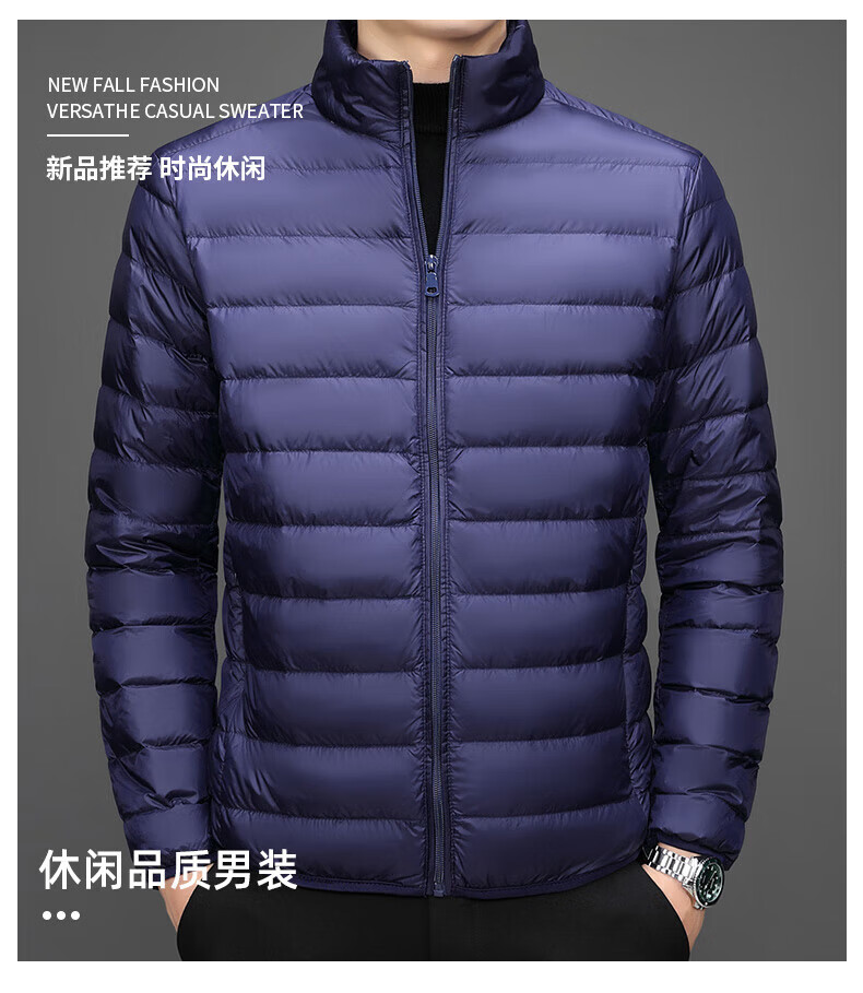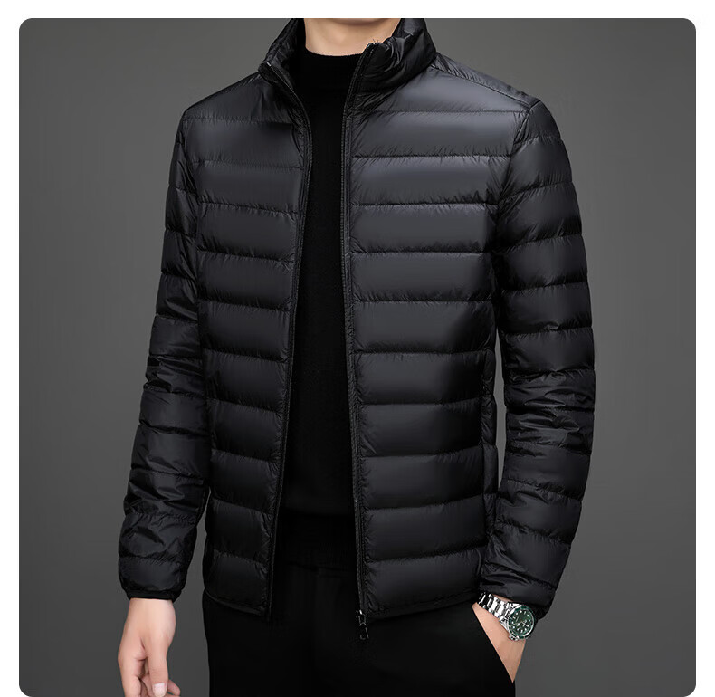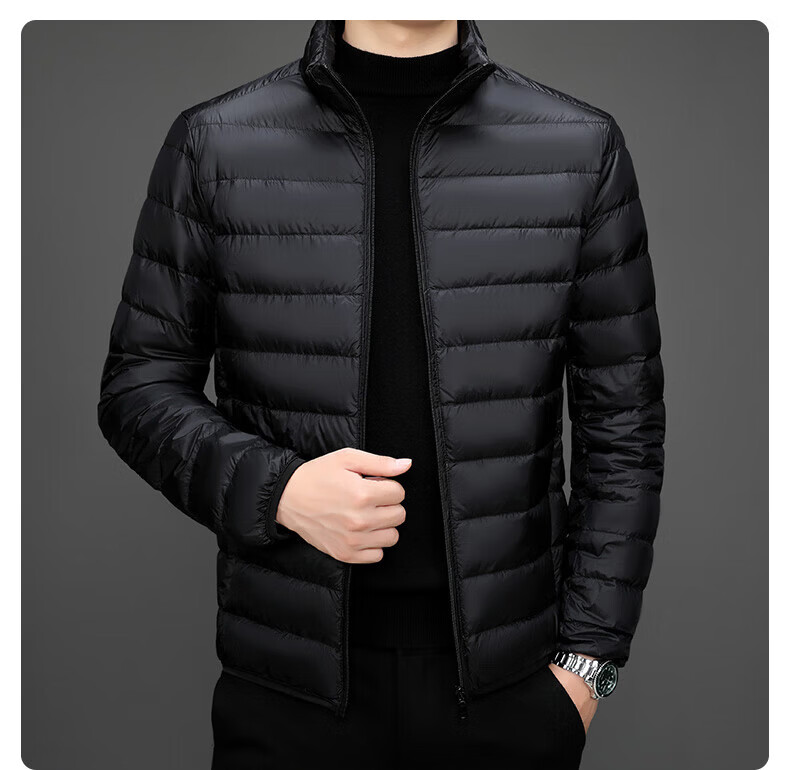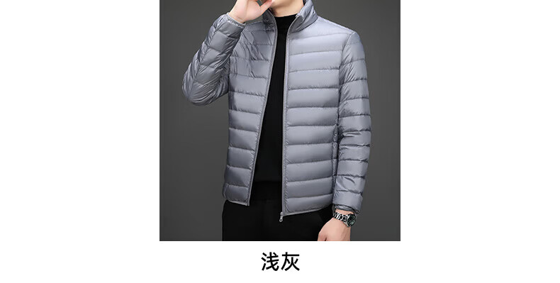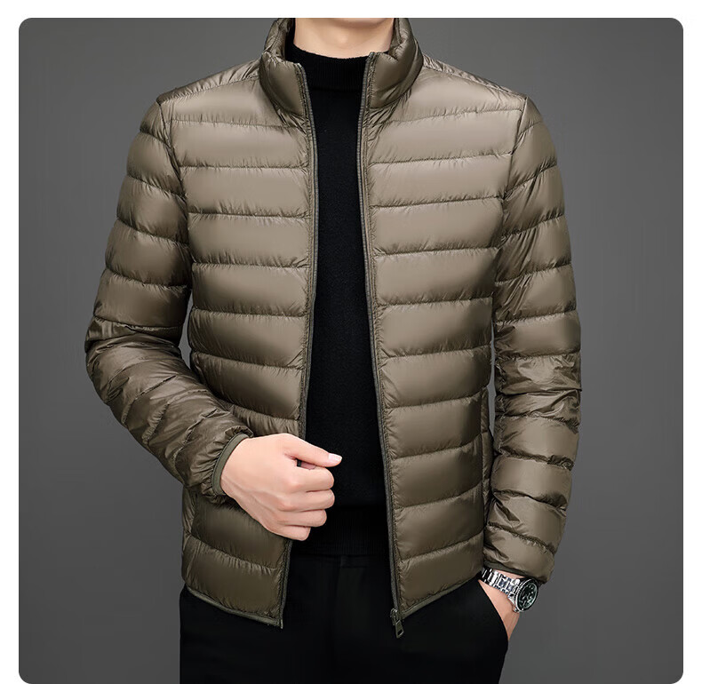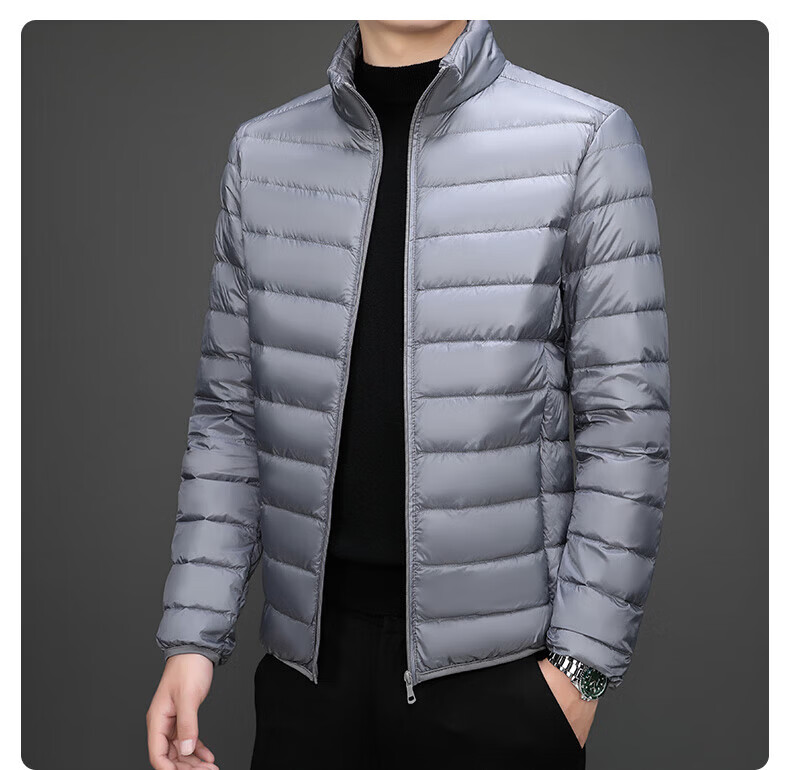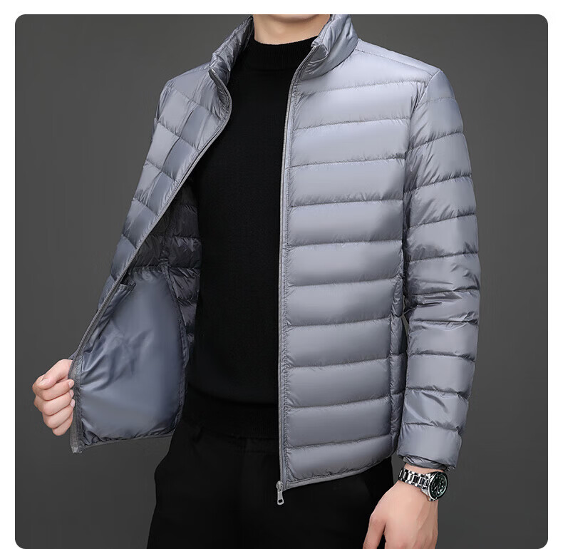 Jeanswest down jacket men's 2025 spring and autumn new high-end stand-up collar business casual men's warm jacket top YR911 Gray M