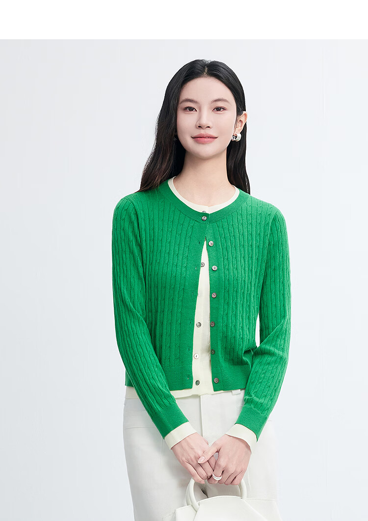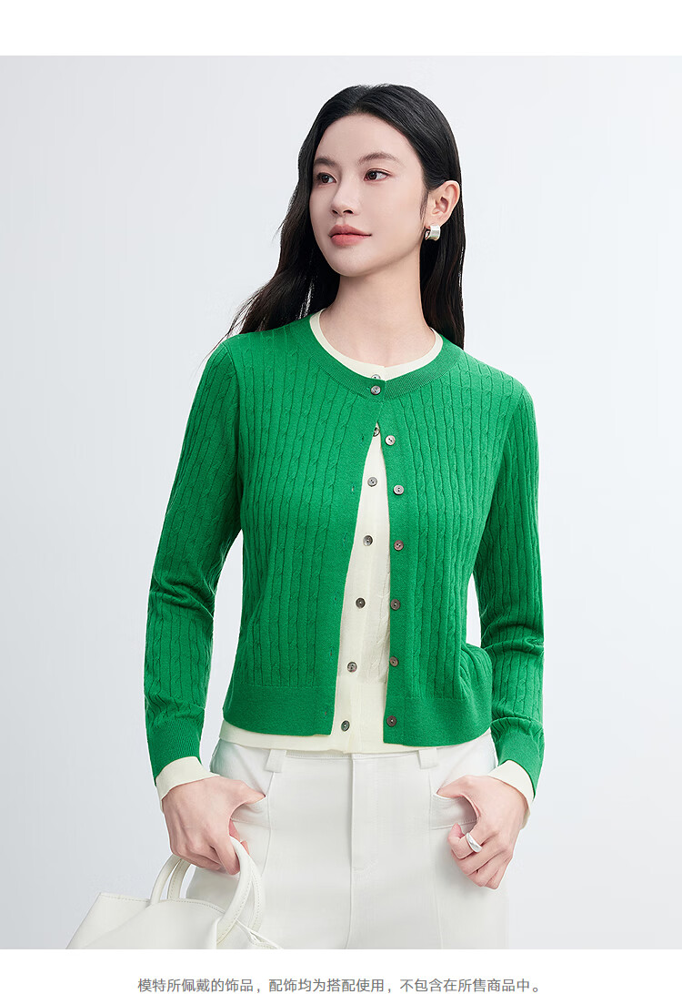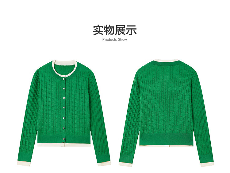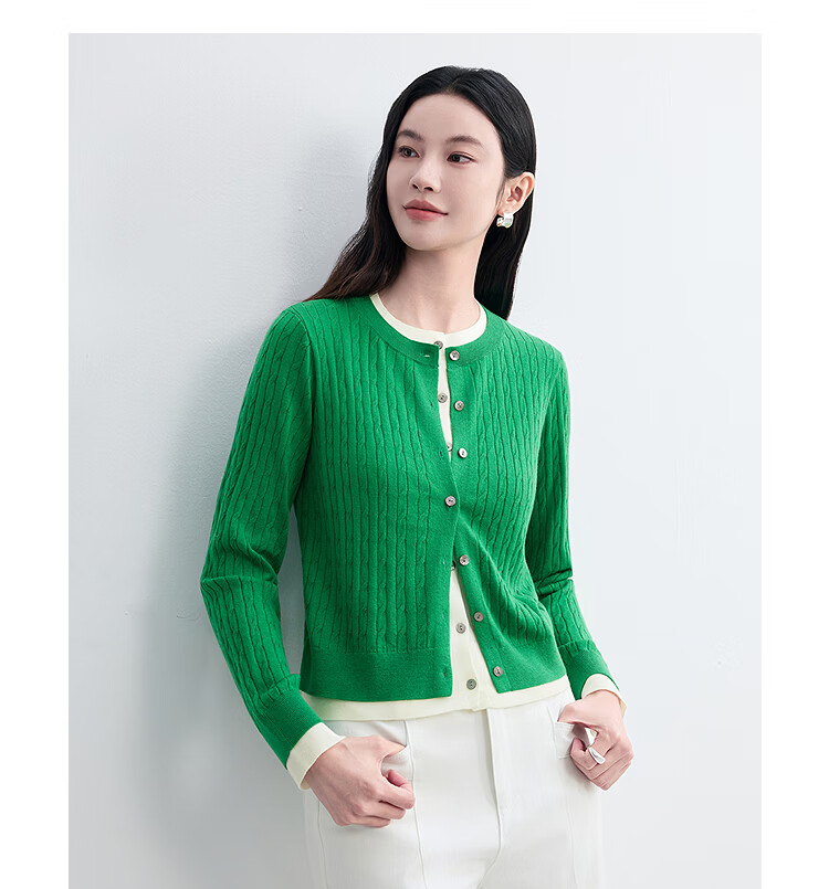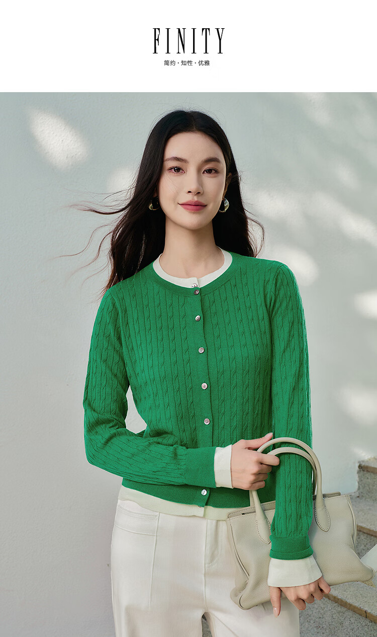 FINITY 26 spring new products new knitted sweaters simple small fragrance fake two-piece round neck cardigan for women green S