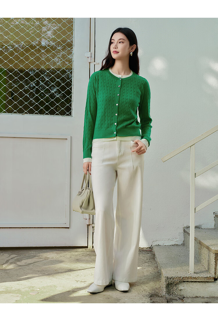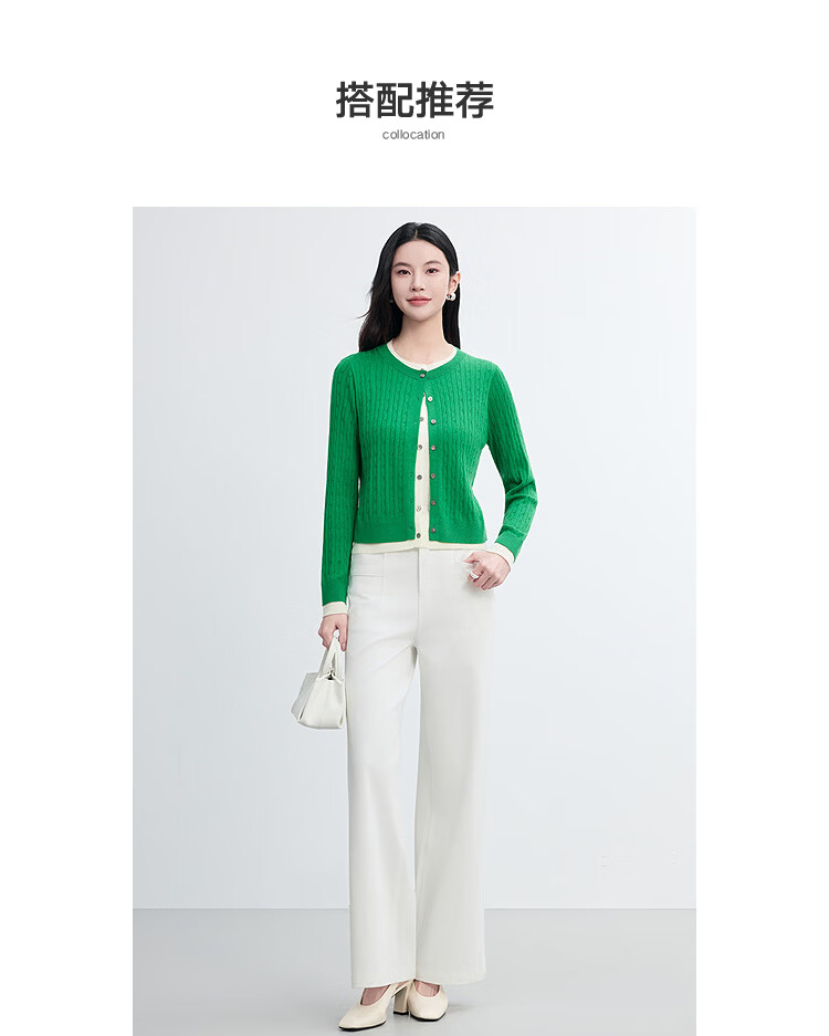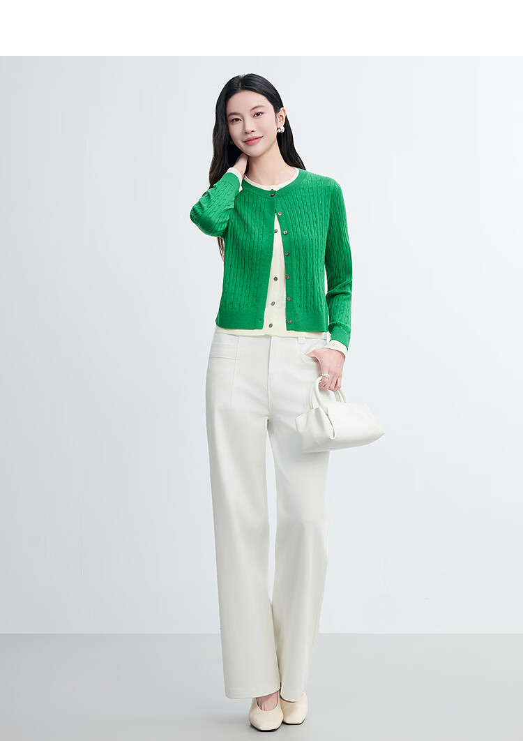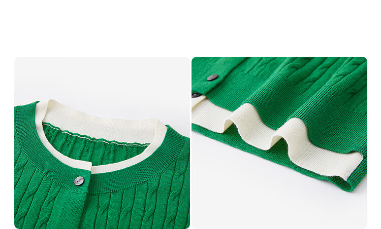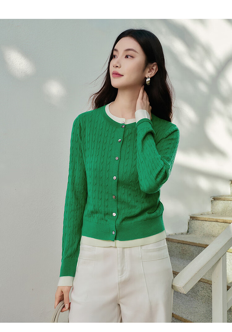 FINITY 26 spring new products new knitted sweaters simple small fragrance fake two-piece round neck cardigan for women green S