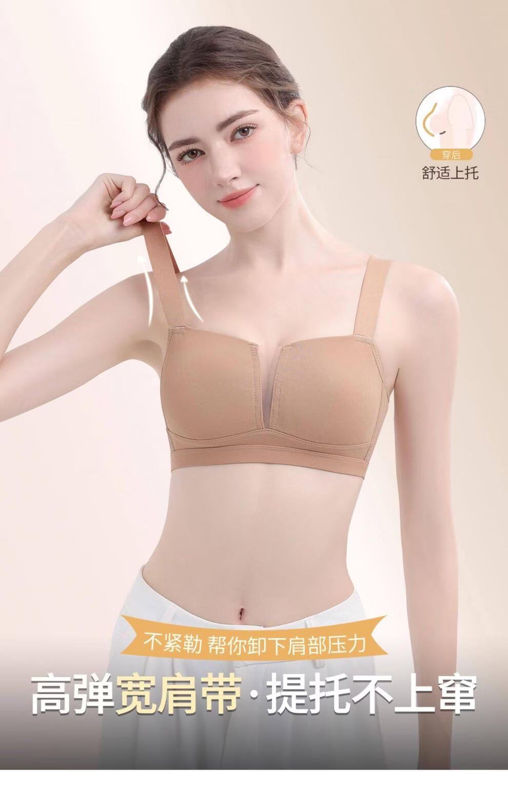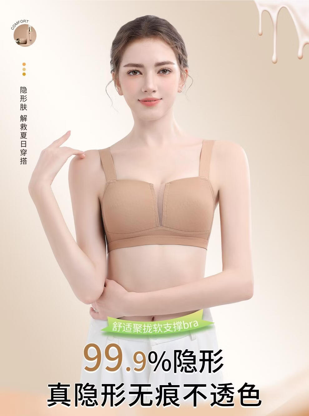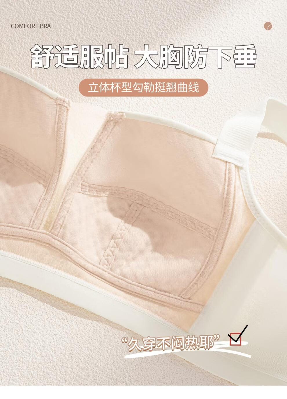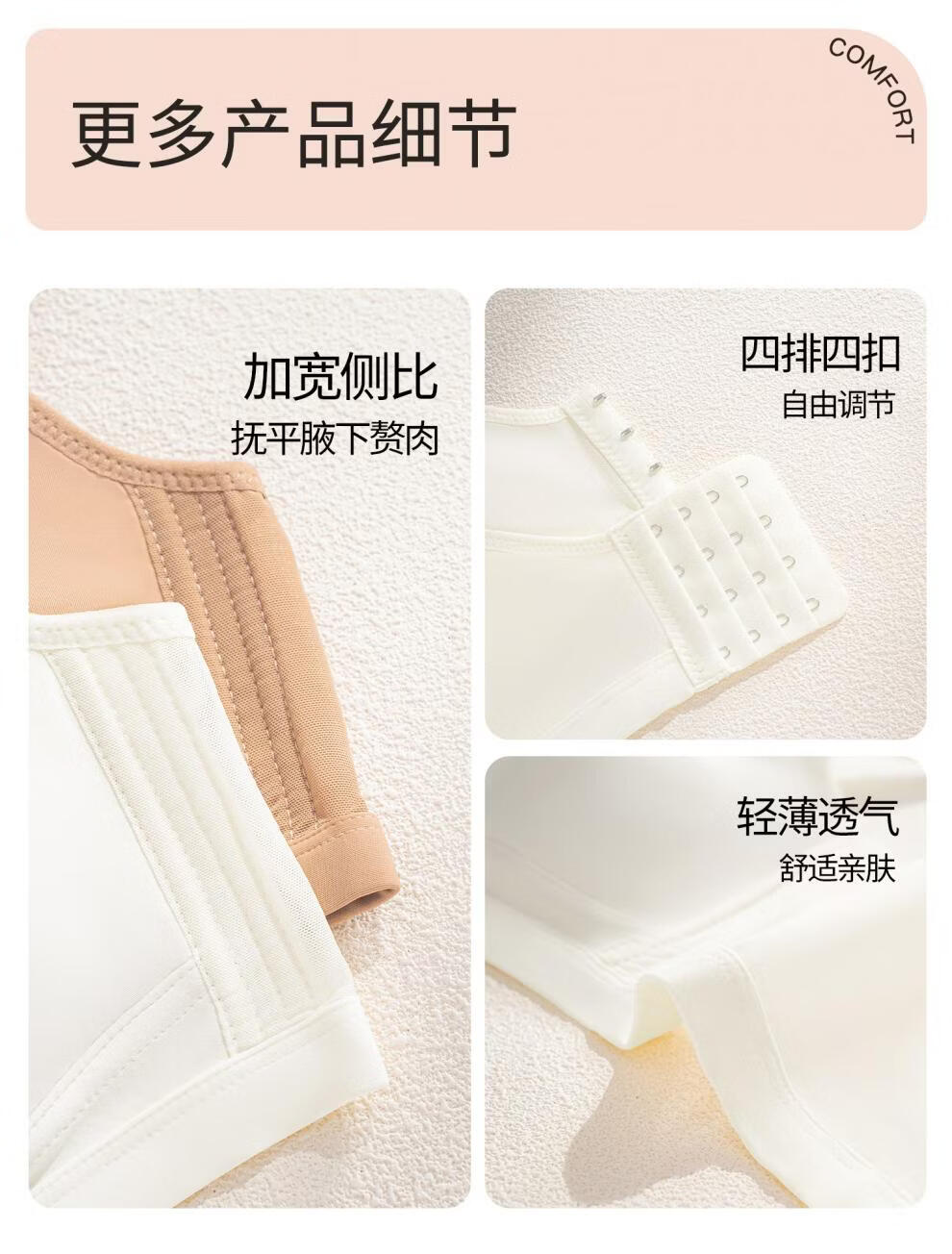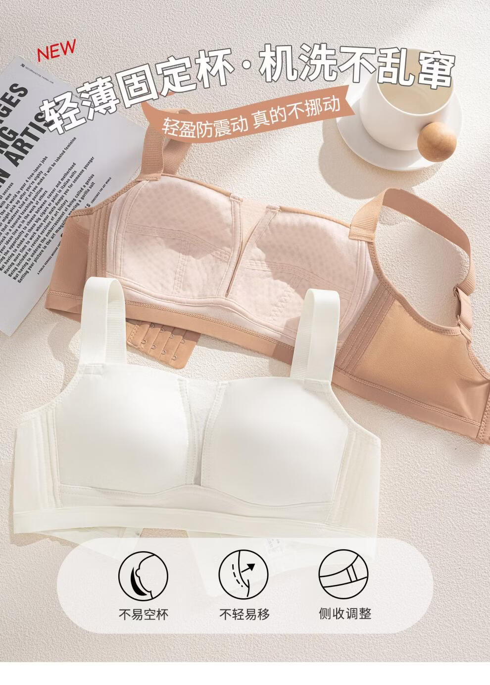Modal underwear for women with big breasts and thin breasts, invisible liquid foundation, traceless large size, anti-sagging, side breasts push-up bra, milky white 95B 42CD