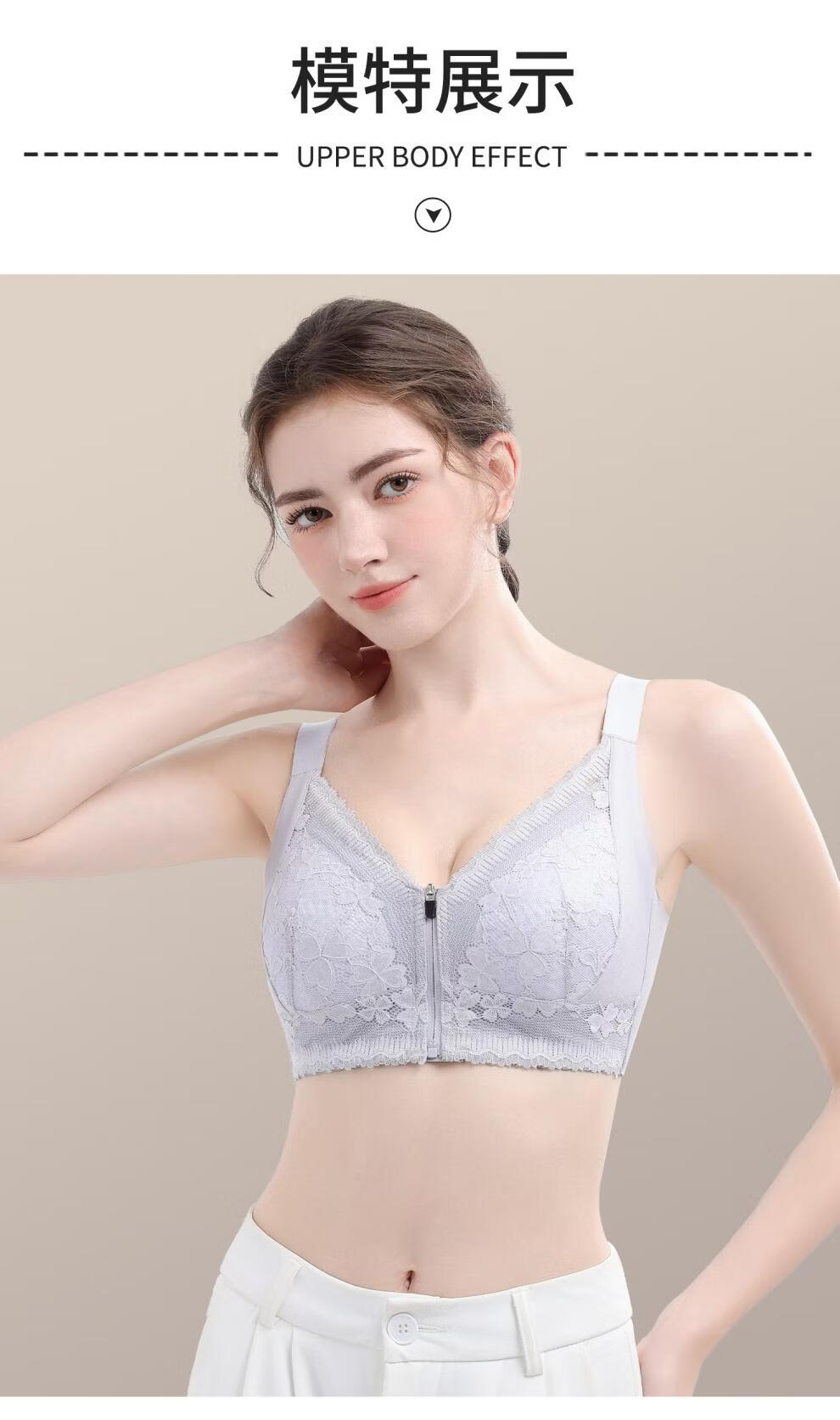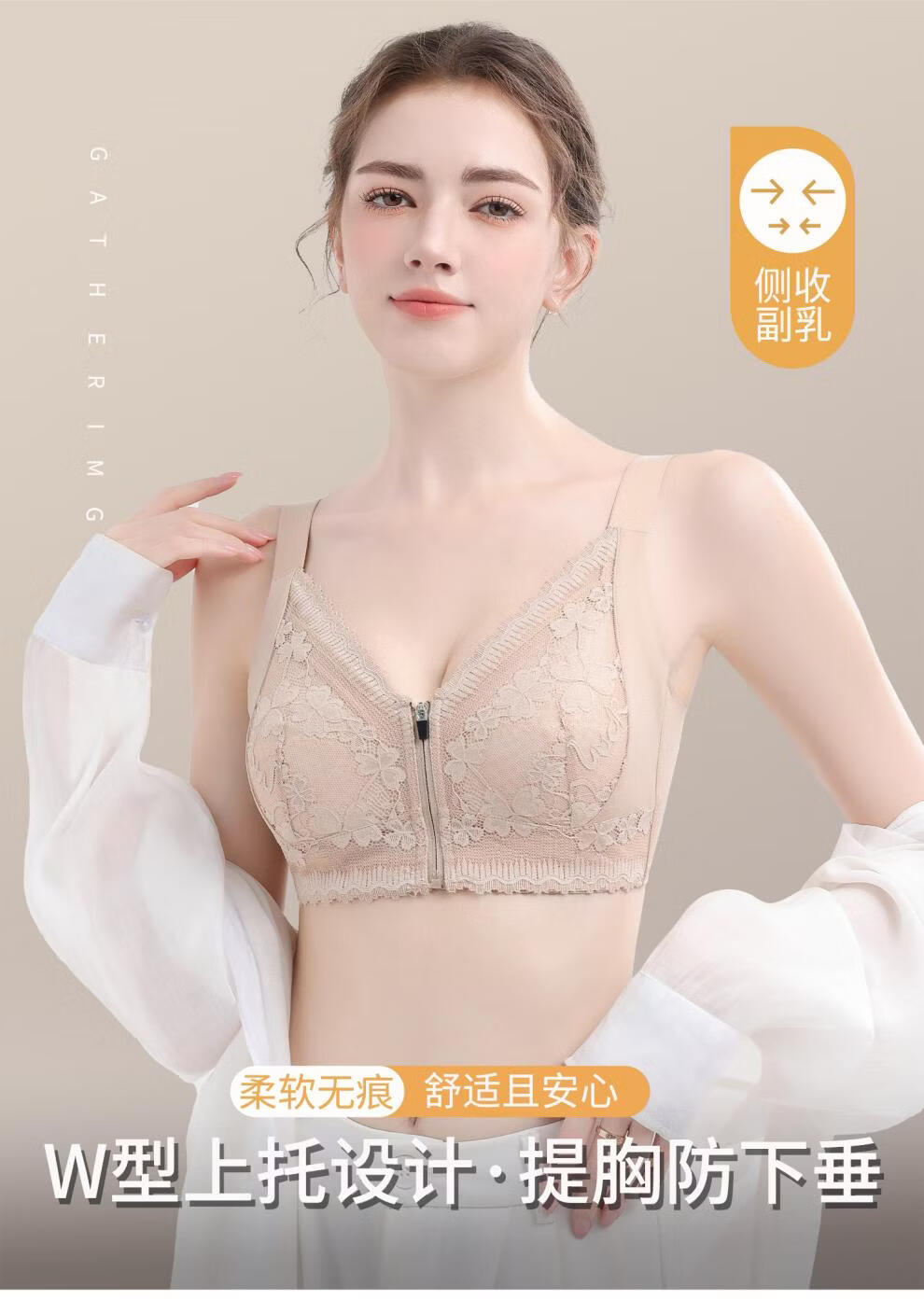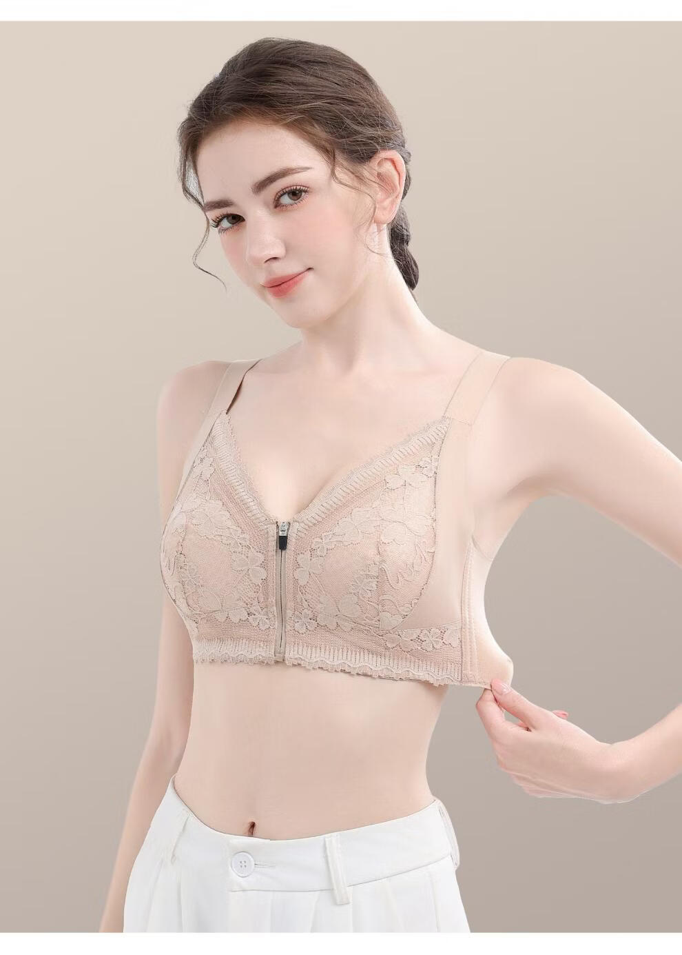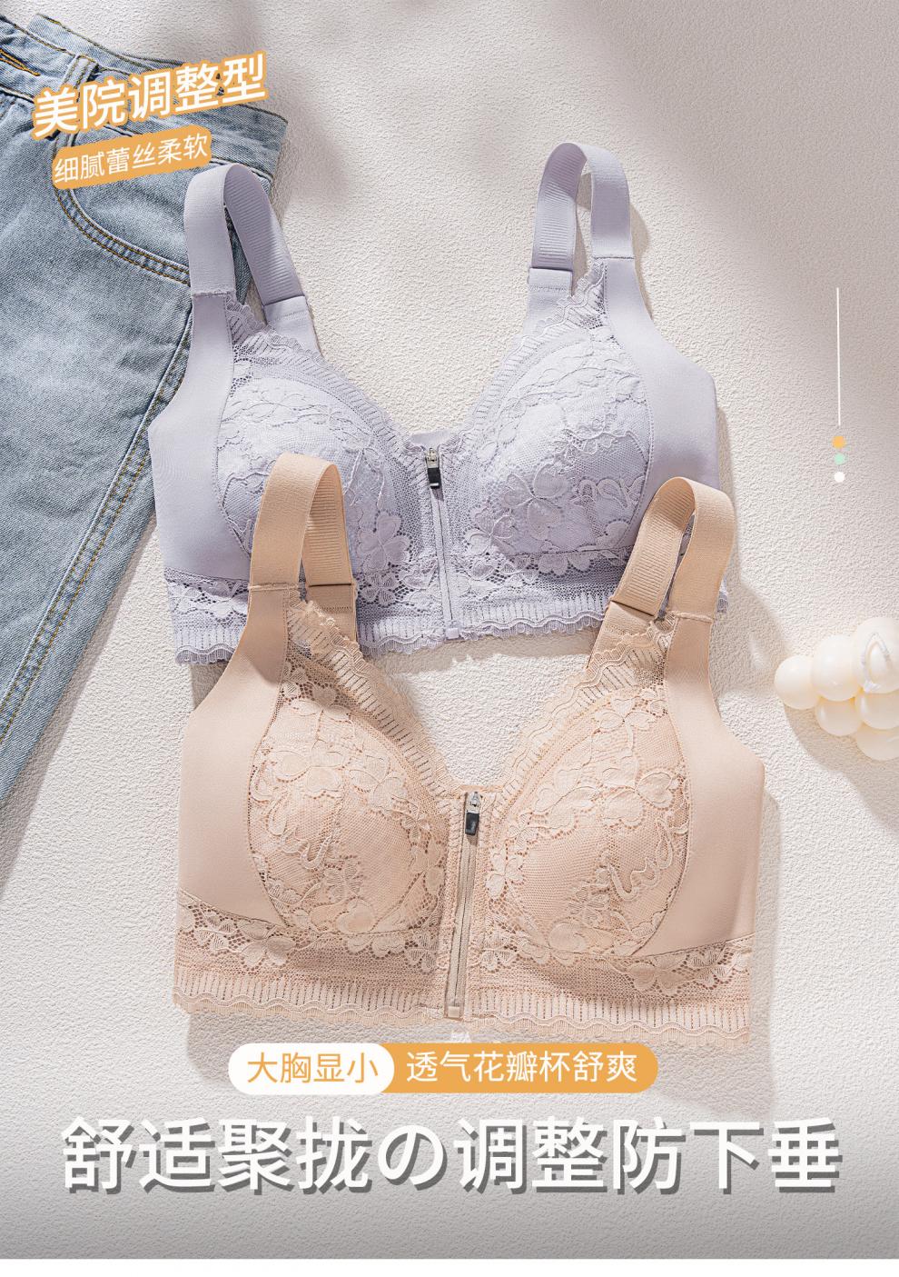 Modal front zipper adjustable underwear for women with large breasts, slimming, gathering side breasts, anti-sagging, large size bra, liquid foundation M 34/75 BCD full cup