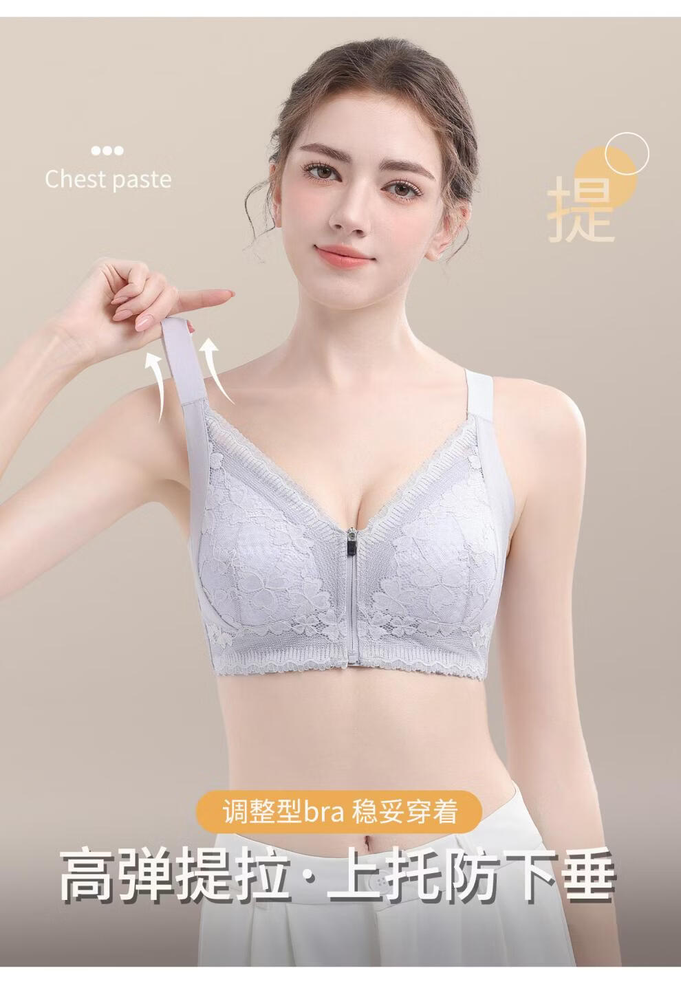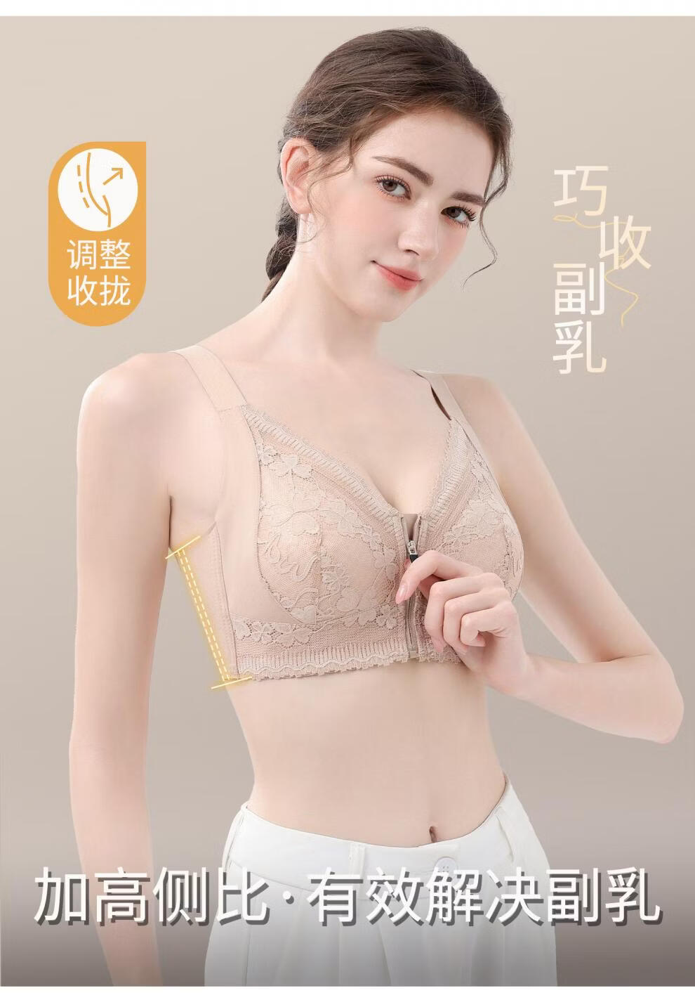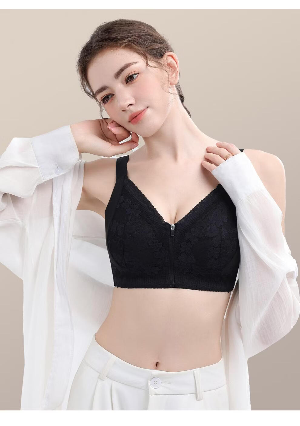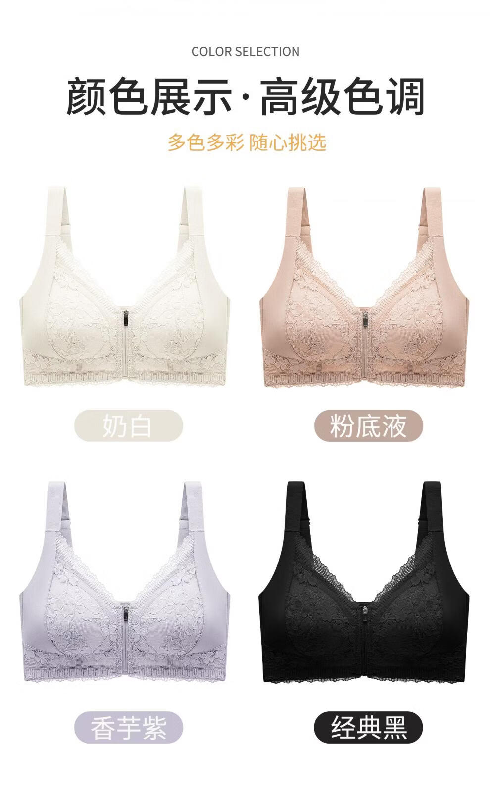 Modal front zipper adjustable underwear for women with large breasts, slimming, gathering side breasts, anti-sagging, large size bra, liquid foundation M 34/75 BCD full cup
