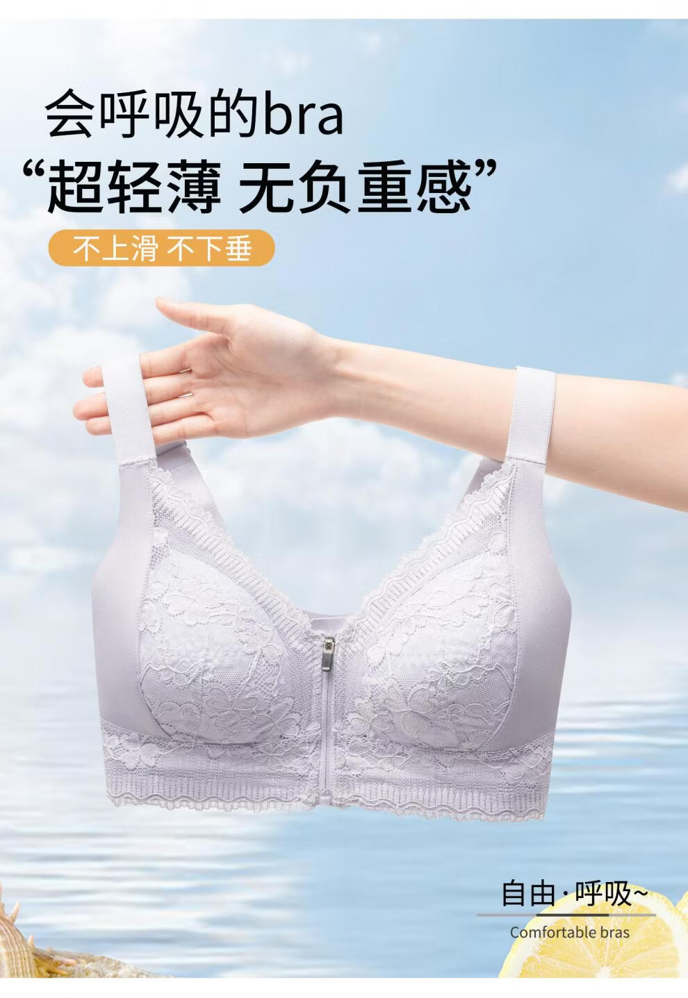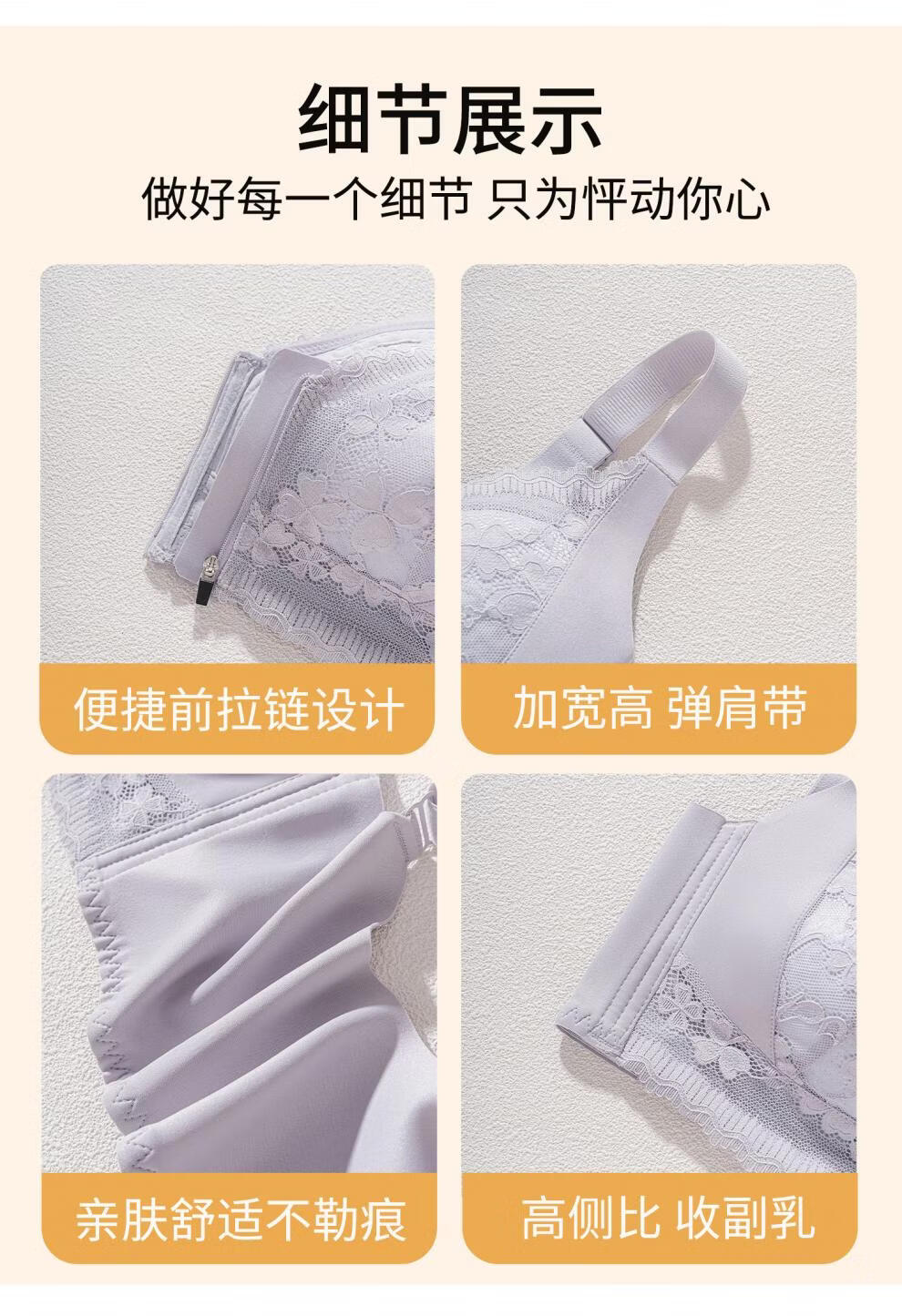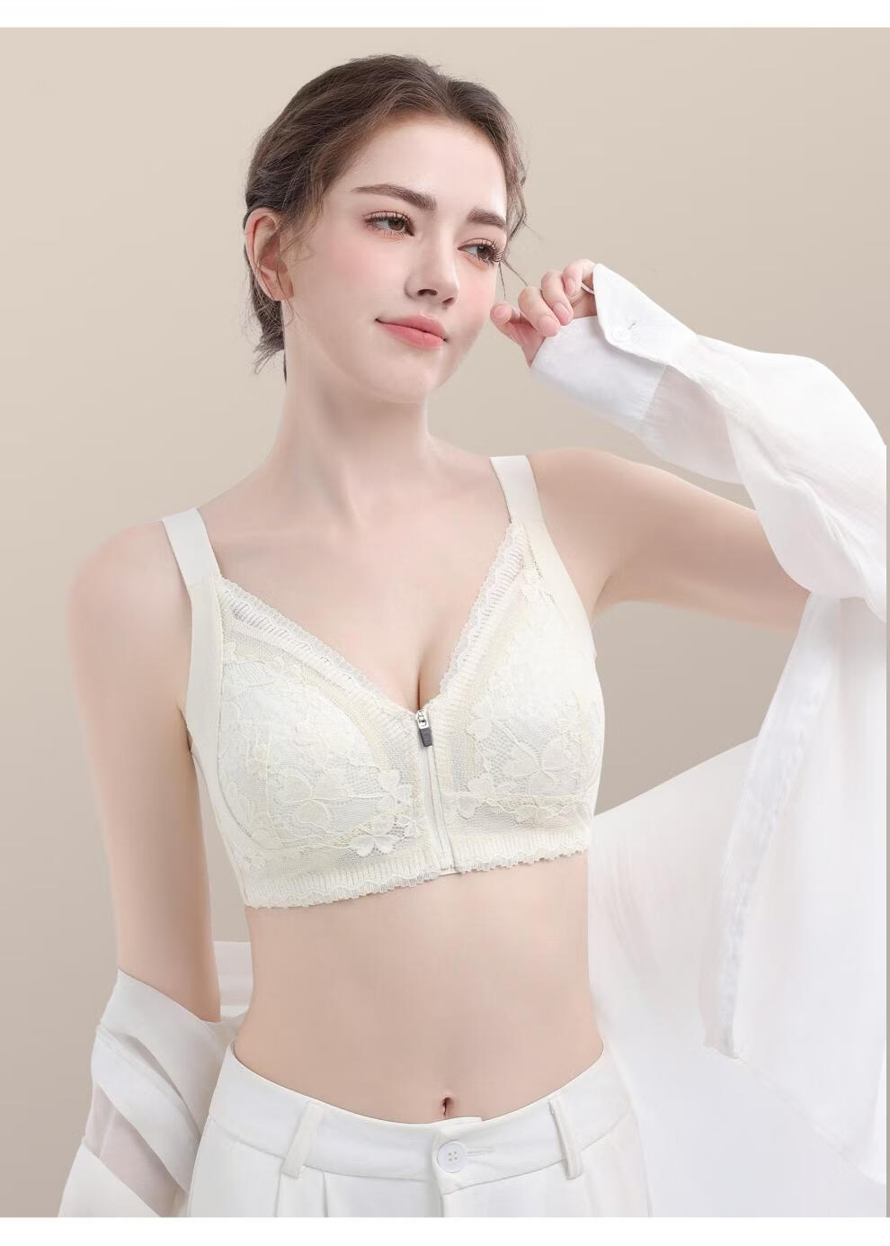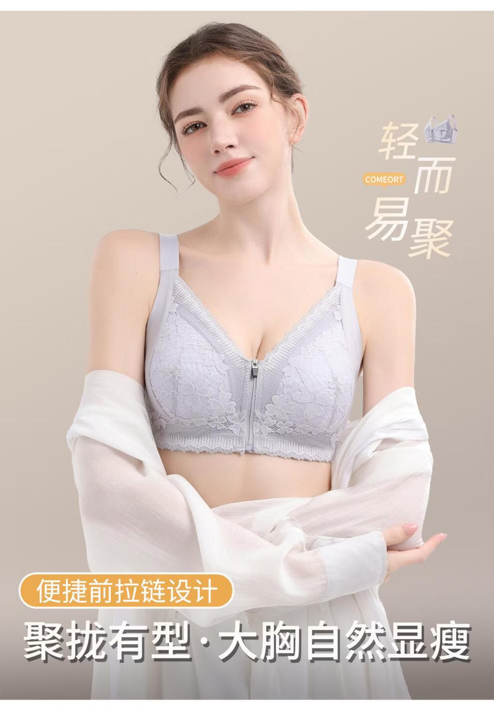 Modal front zipper adjustable underwear for women with large breasts, slimming, gathering side breasts, anti-sagging, large size bra, liquid foundation M 34/75 BCD full cup