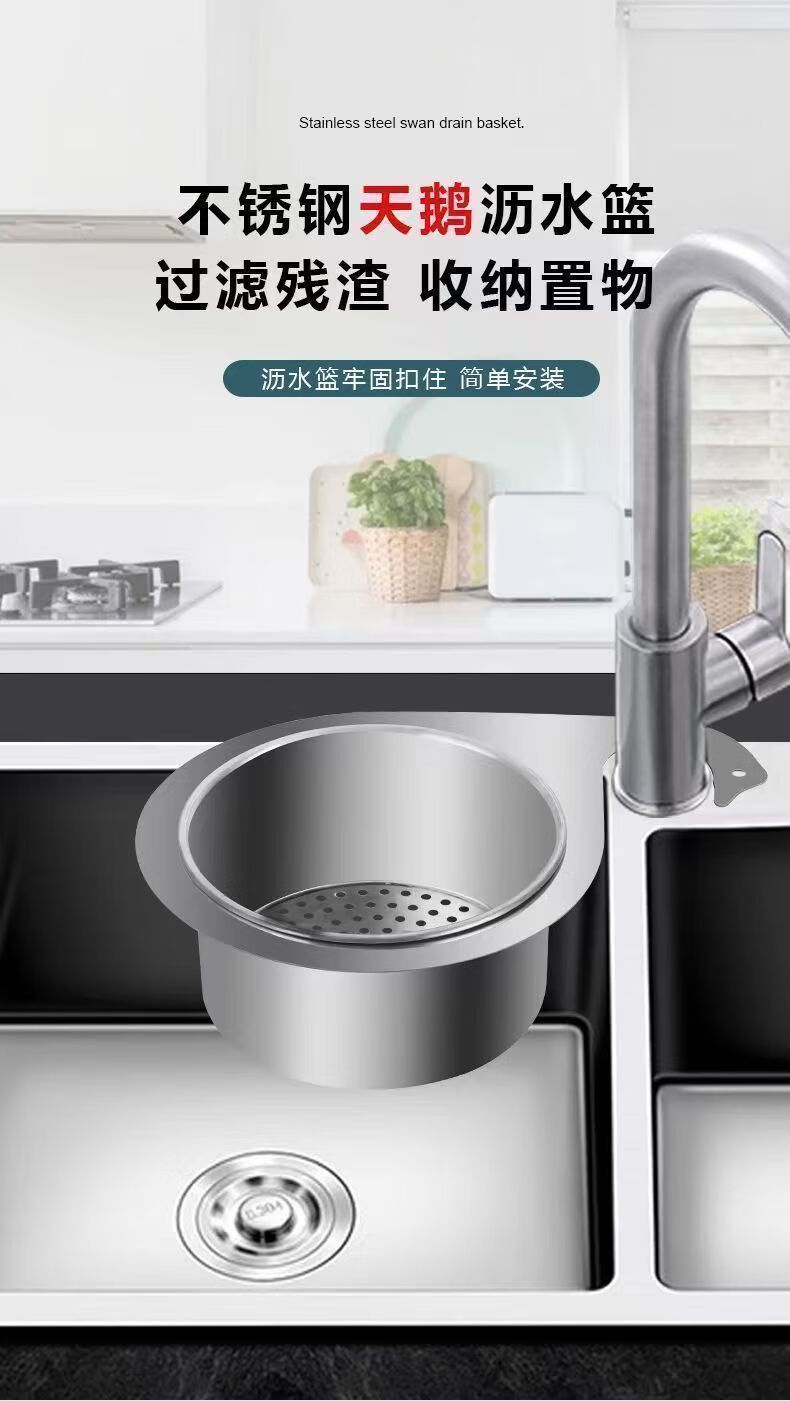 Kitchen sink swan drain basket 304 stainless steel hanging drain rack dry and wet separation hook garbage filter basket buy one get one free large size get 2 pieces 23.3*15.3*5.7cm /108g
