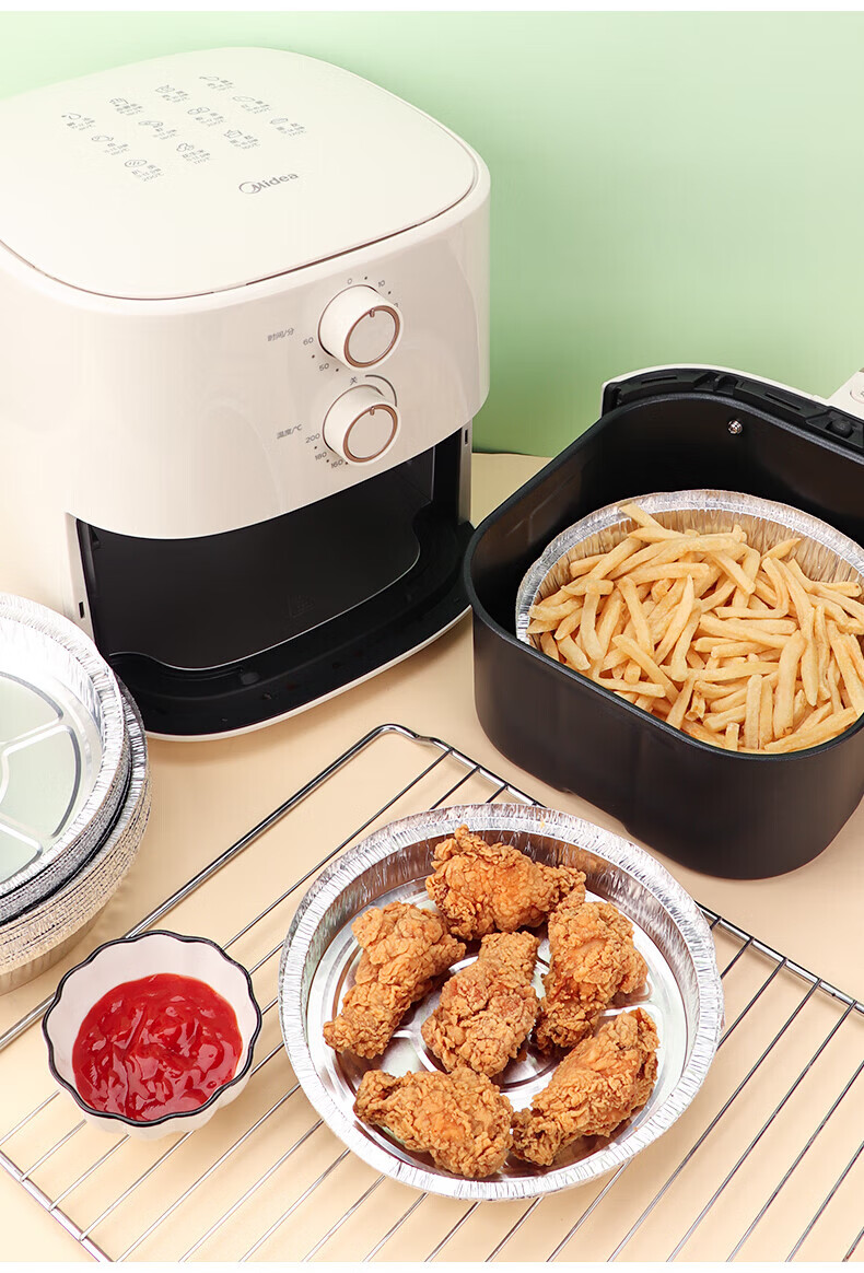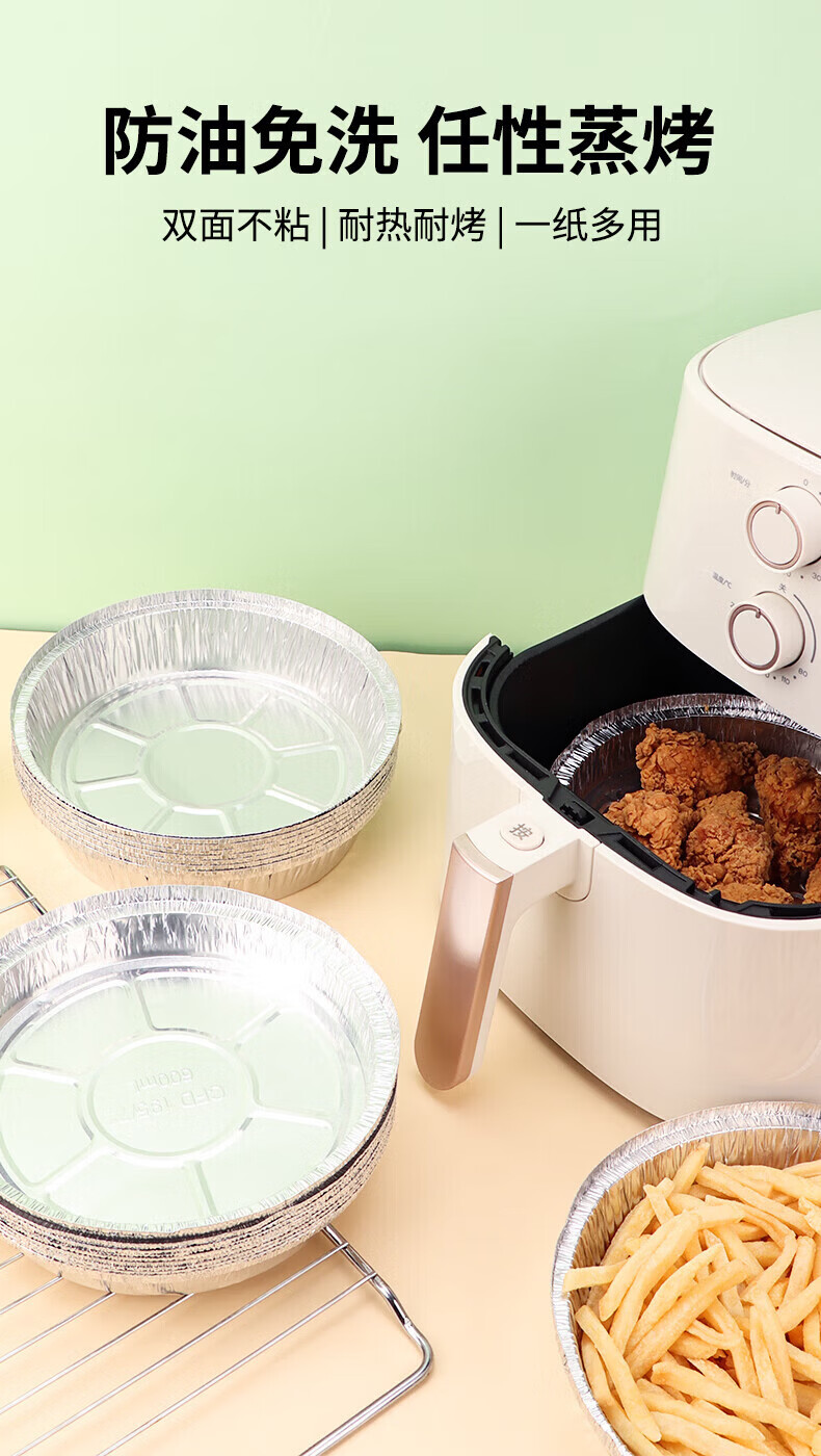Rice tin foil air fryer household special paper tin foil tray oven baking barbecue round tin foil box aluminum foil baking pan 8 inches deeper 20 pieces 4.5-8L universal