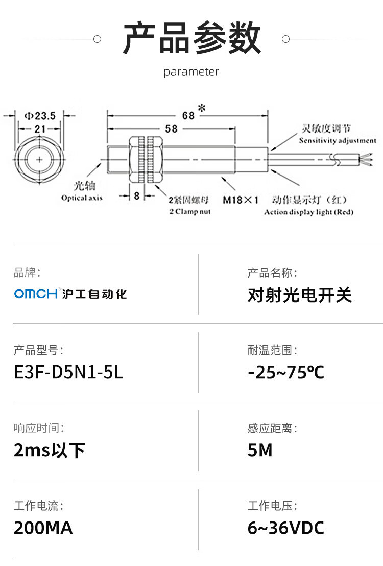 Hugong infrared through-beam photoelectric switch sensor/N2/P1/P2/Y1/Y2/N3/P3 E3F-5DY1-5L AC second line normally open