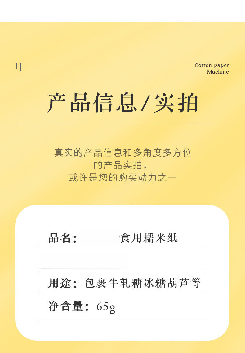 Shantou Lincun glutinous rice paper donkey hide gelatin cake nougat wrapping paper can be wrapped with medicated candy paper 6.5X8cm about 100 sheets of edible grade glutinous rice paper glutinous rice paper (6.5*8100 sheets