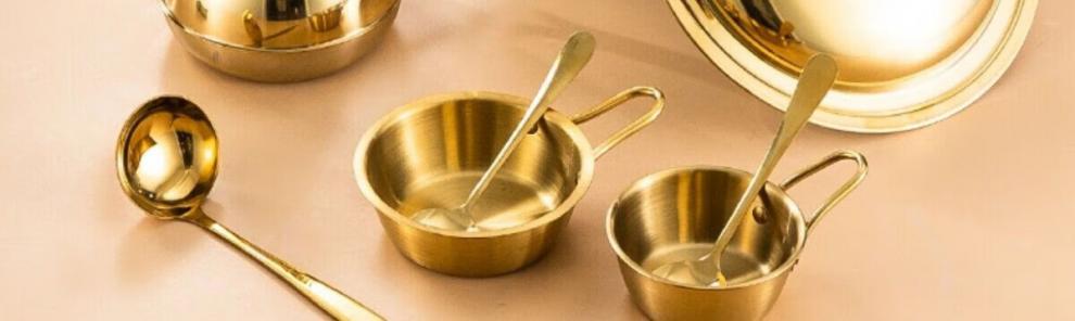 WANIOT golden spoon Korean style high-looking stainless steel spoon creative rice spoon spoon long handle exquisite large soup spoon hot pot spoon stainless steel golden spoon 10 pieces