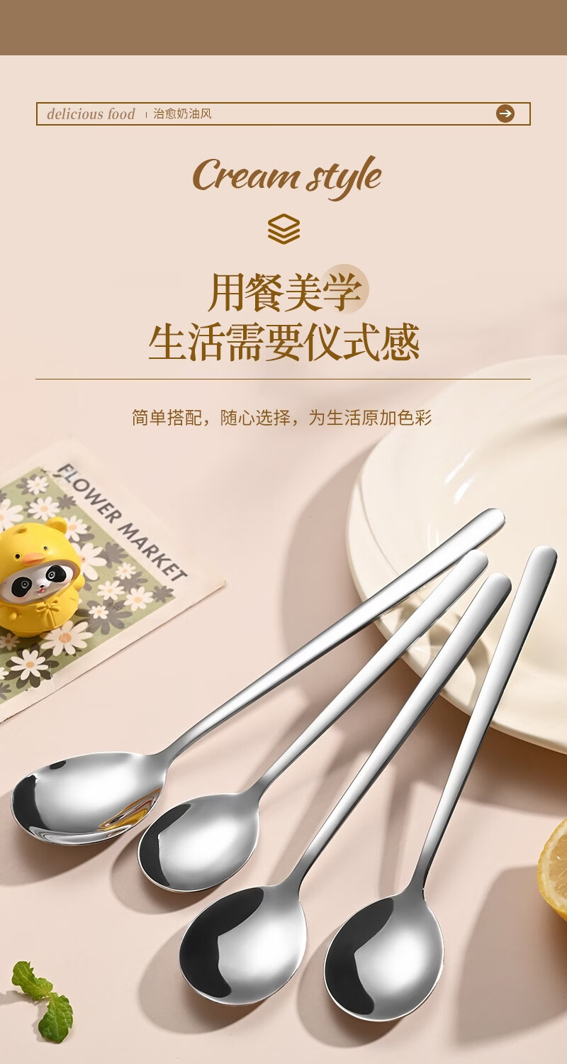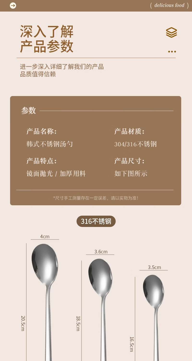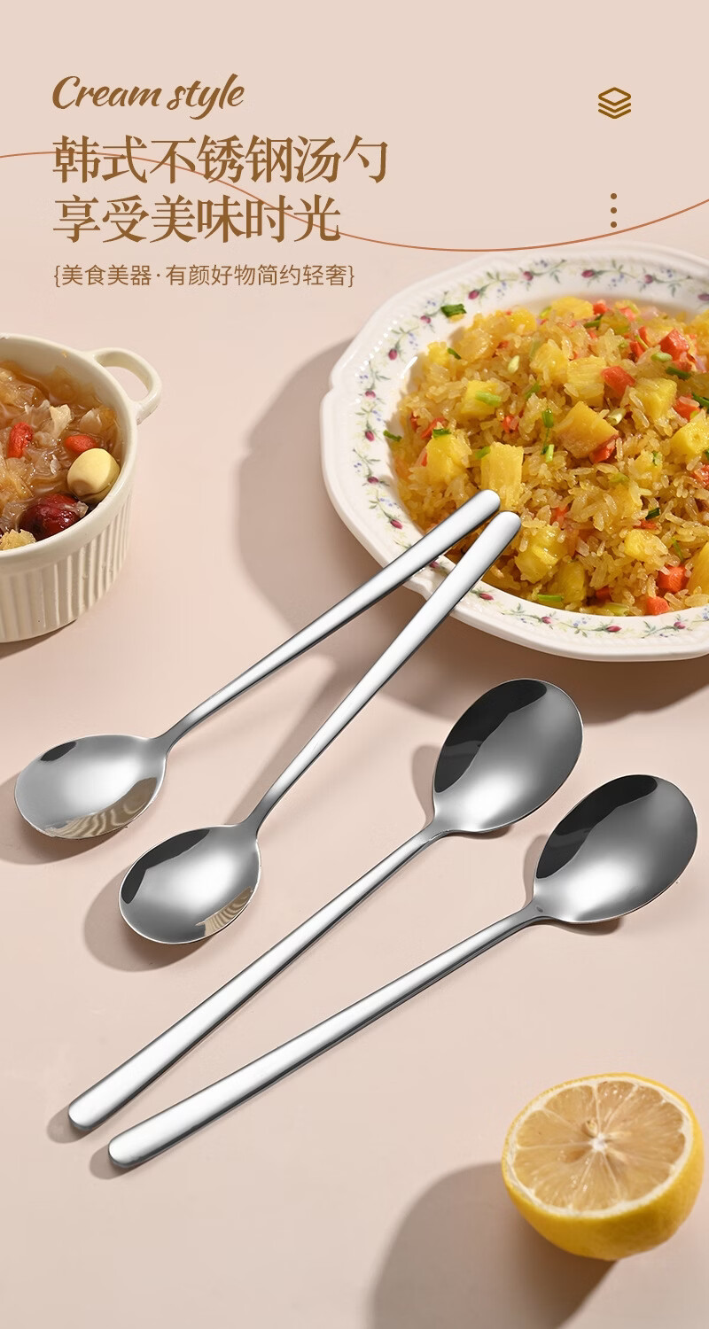 Baixinsi factory direct supply Korean soup spoon 316 stainless steel spoon long handle thickened stirring stainless steel spoon wholesale 304 small Korean spoon
