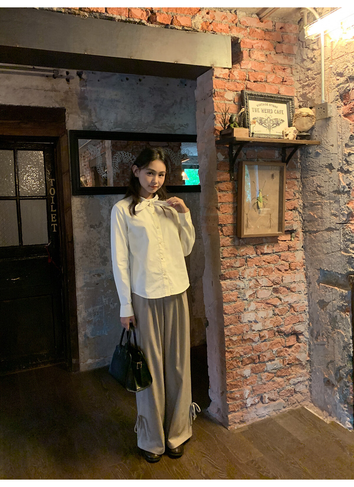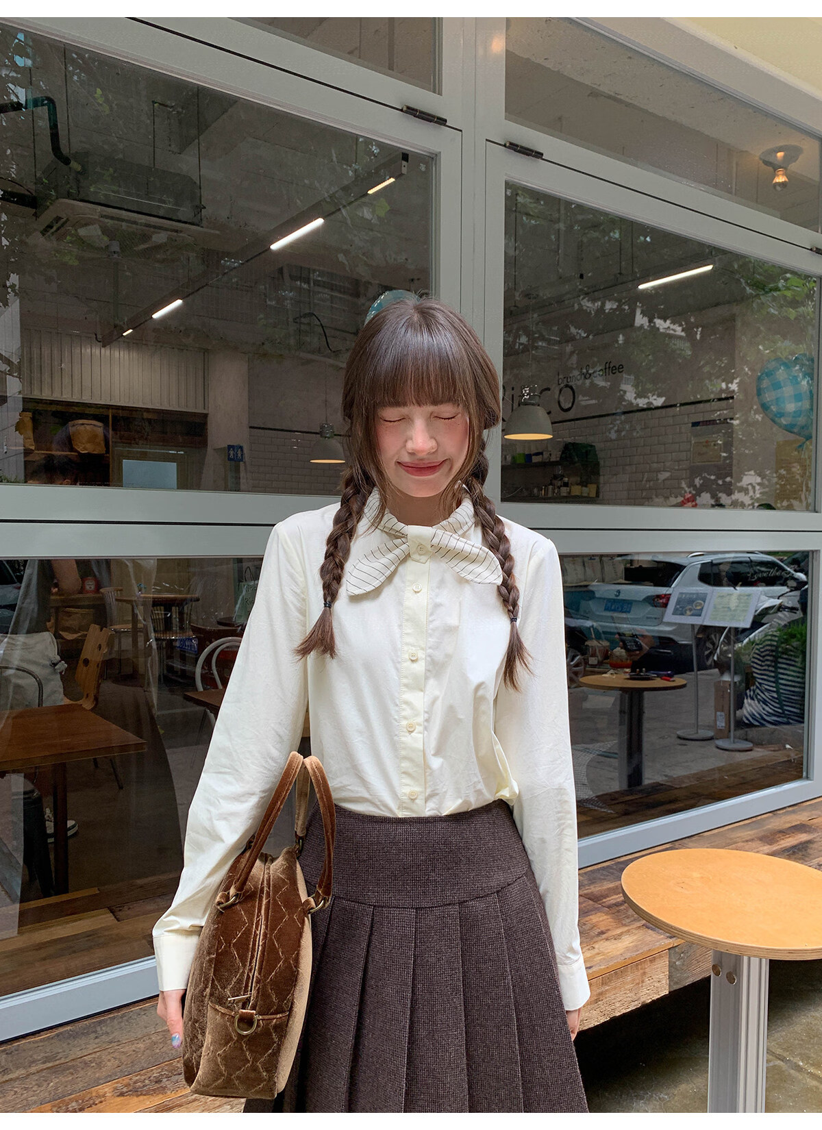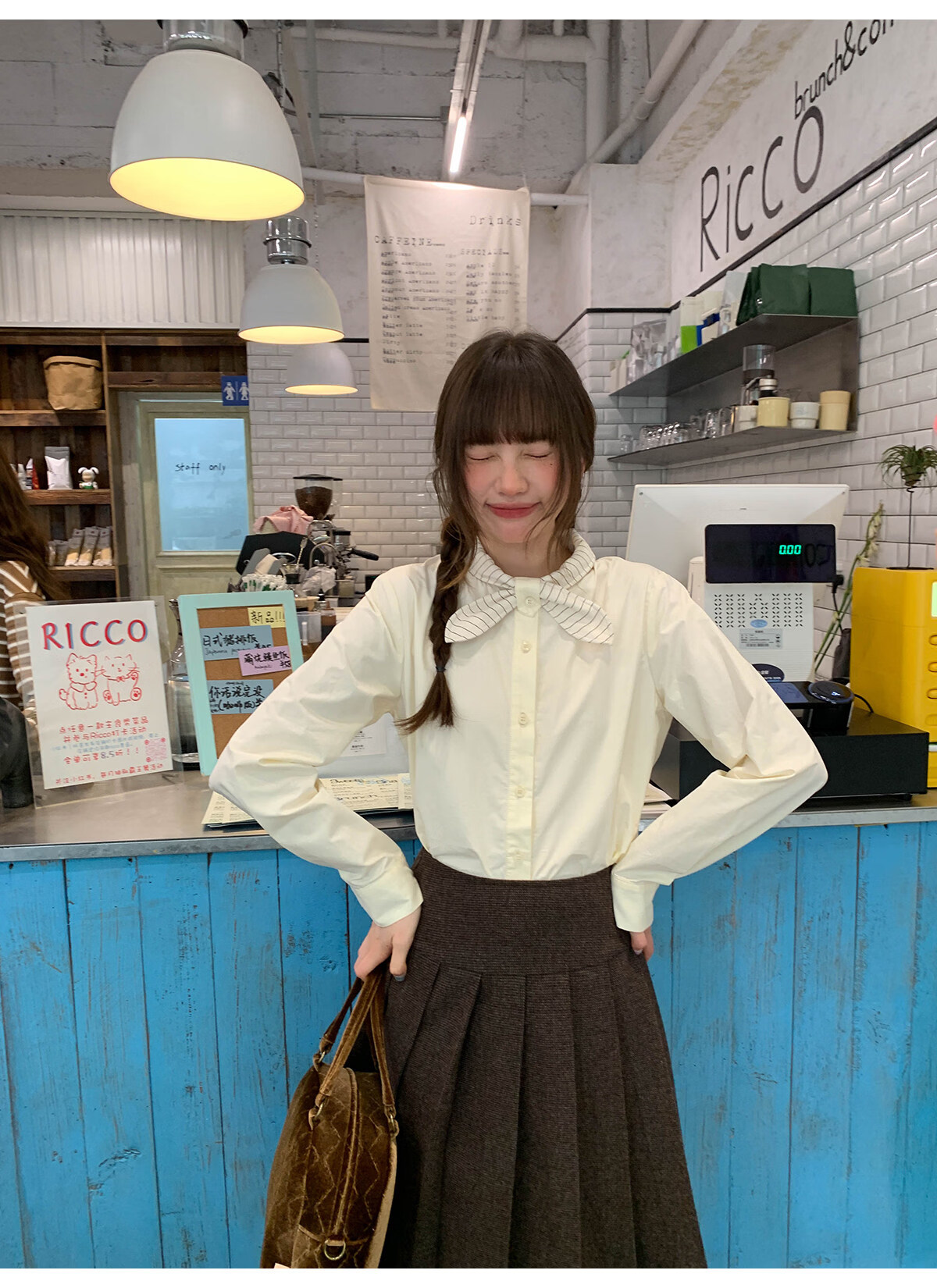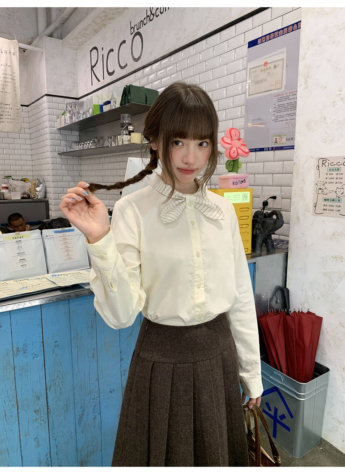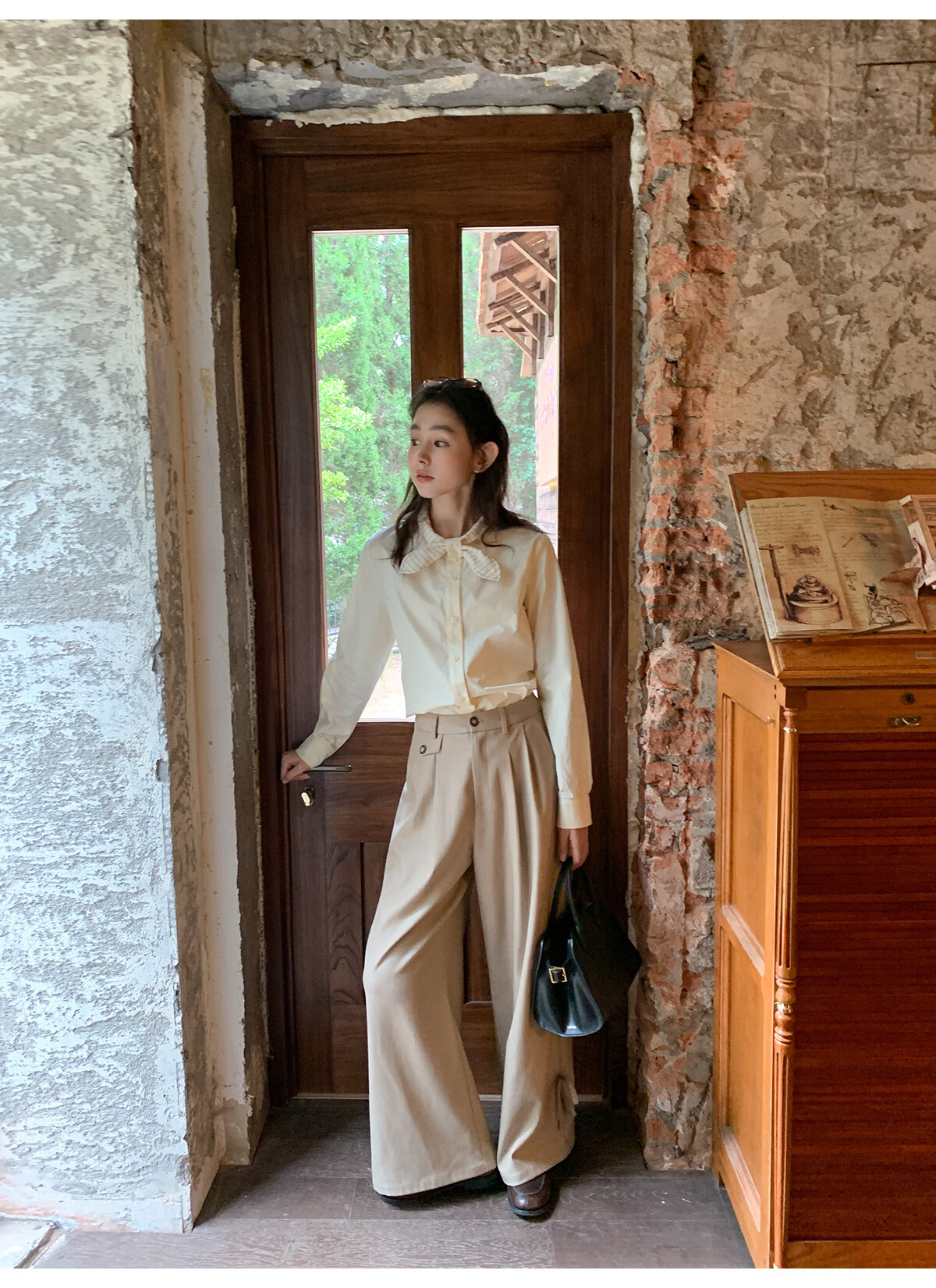 Hello Canon Striped Rabbit Ear Collar Long Sleeve Shirt Women's Retro Niche Design Shirt Temperament Simple Top Light Yellow XS