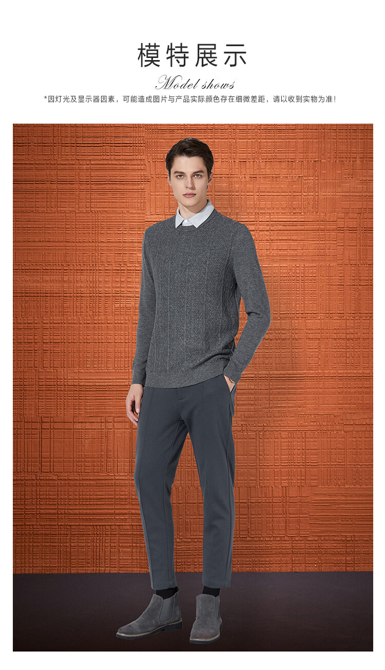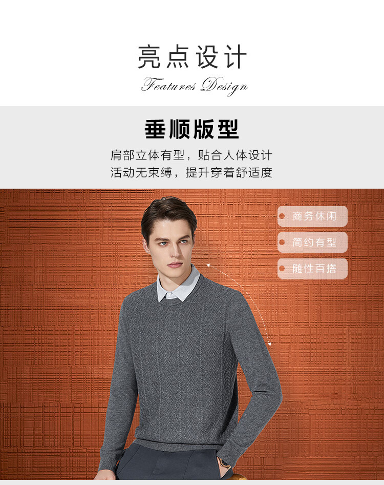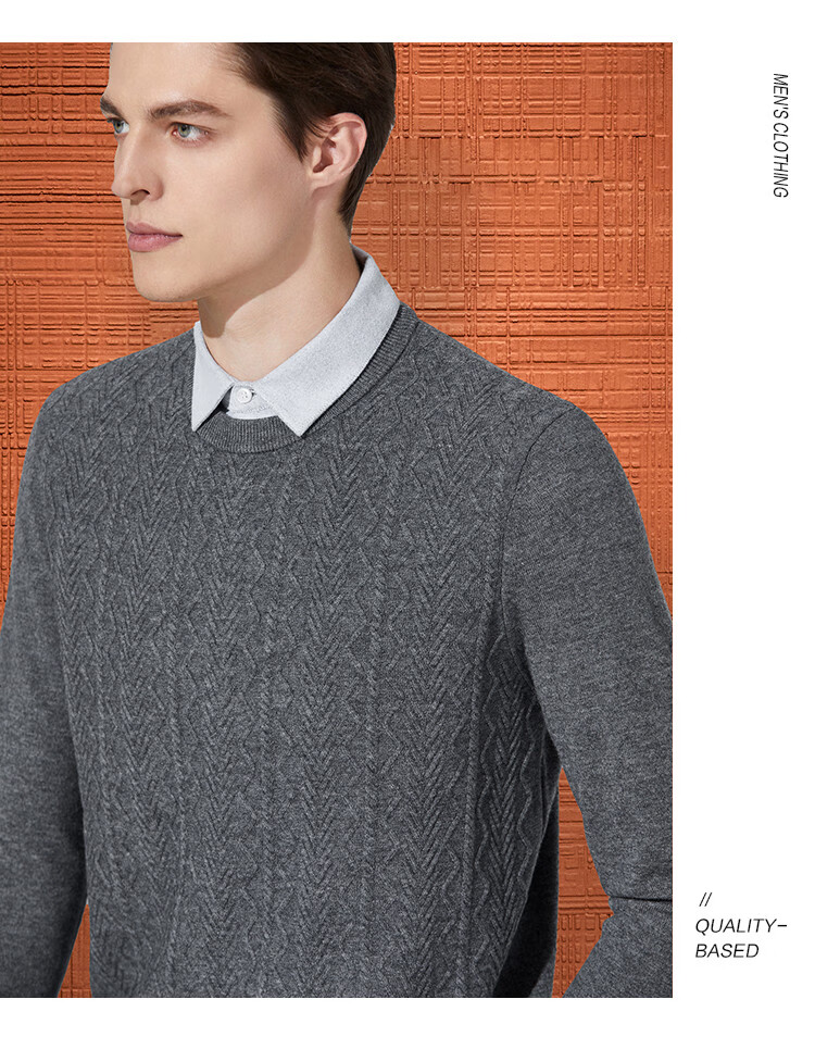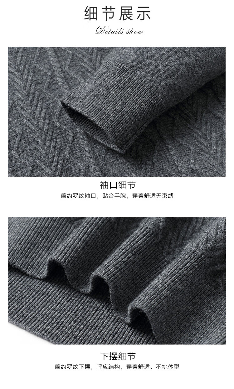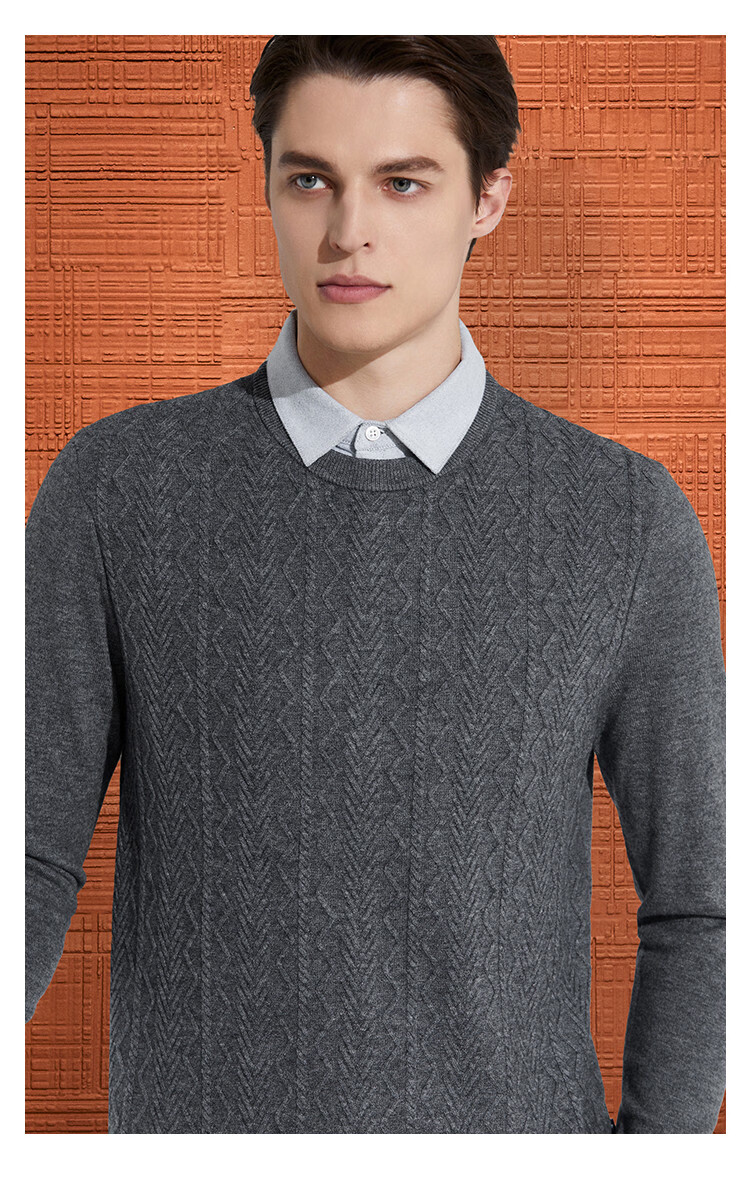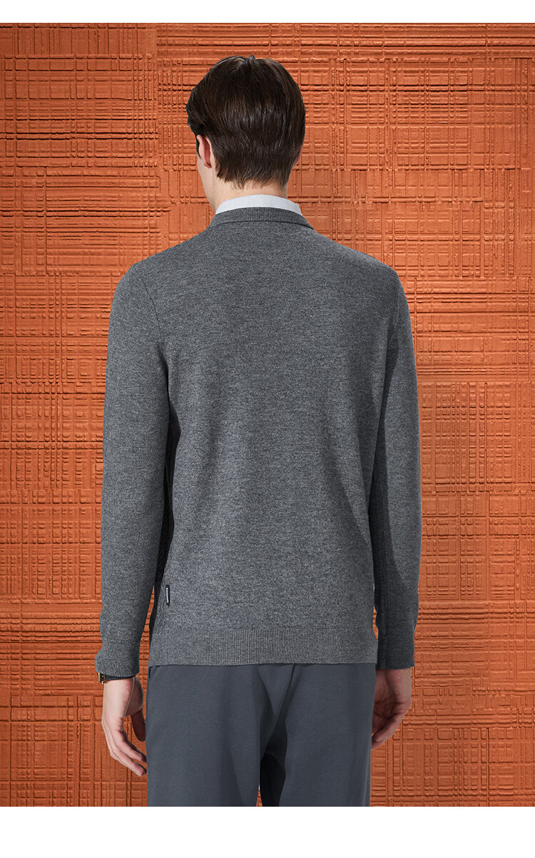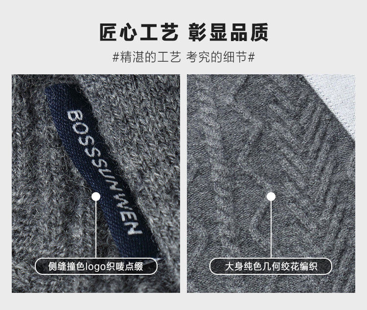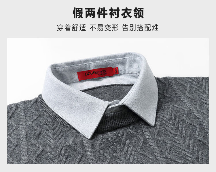 Bosssunwen 100% wool spring recommended fake two-piece skin-friendly warm knitted sweater wavy jacquard men's cardigan gray 2XL