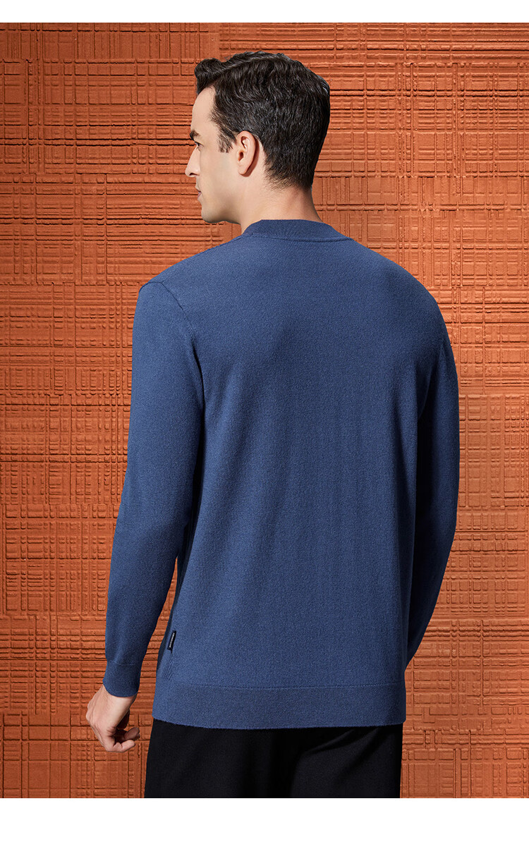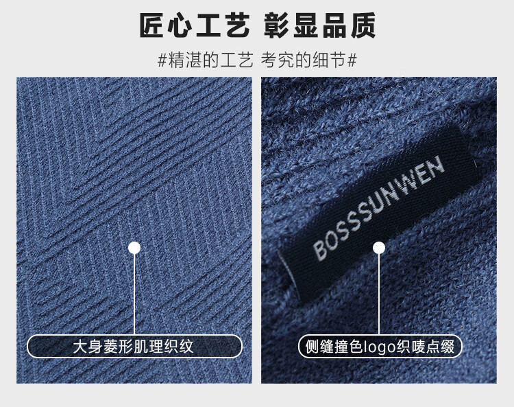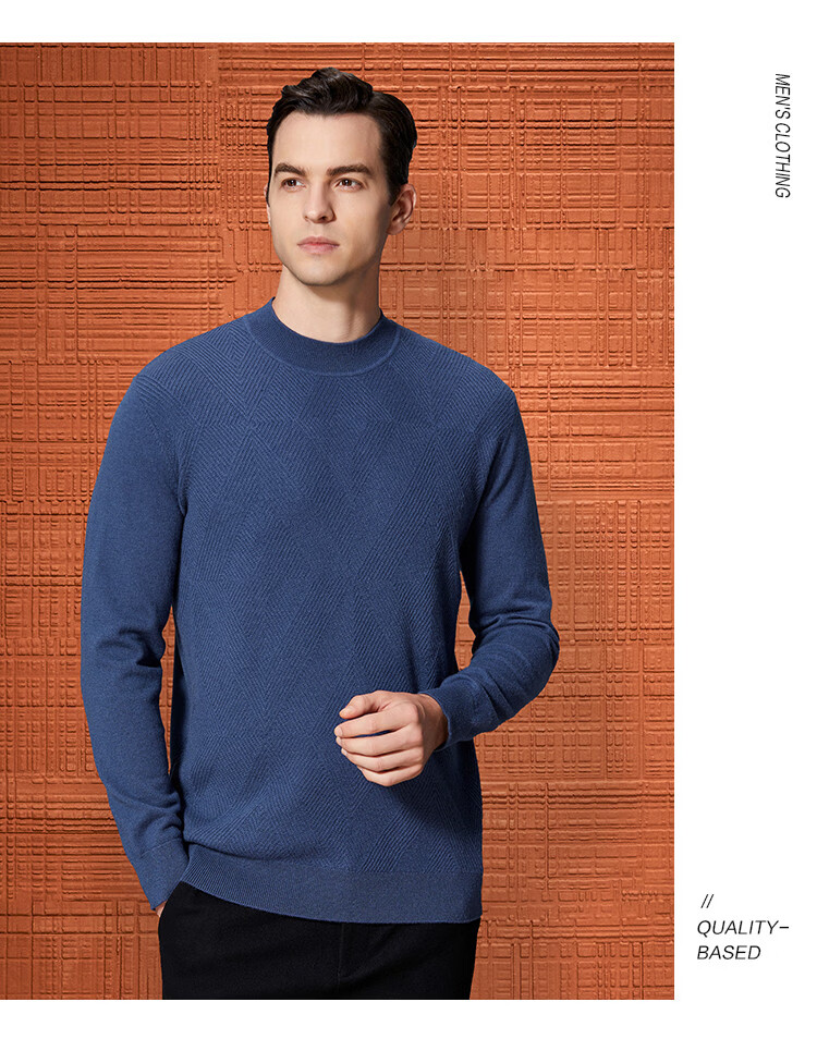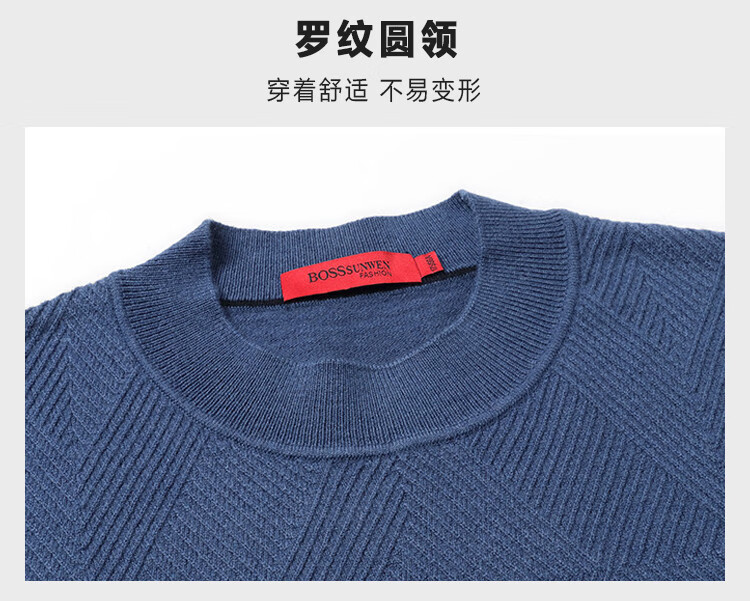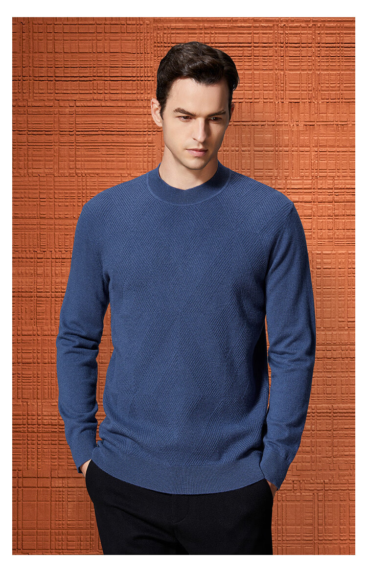 Bosssunwen 100% sheep wool early spring recommended business casual diamond jacquard skin-friendly warm round neck men's woolen sweater gray blue M
