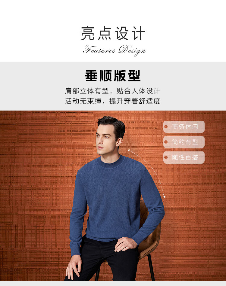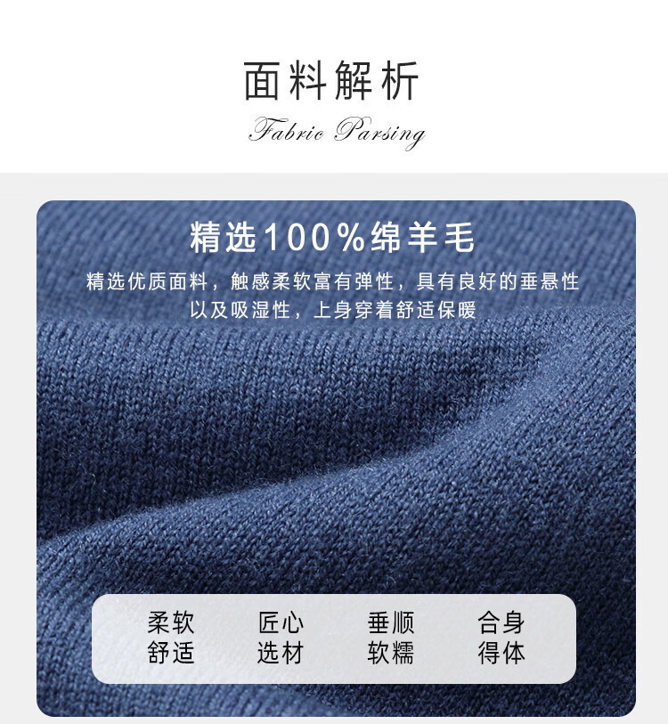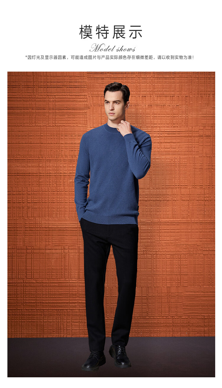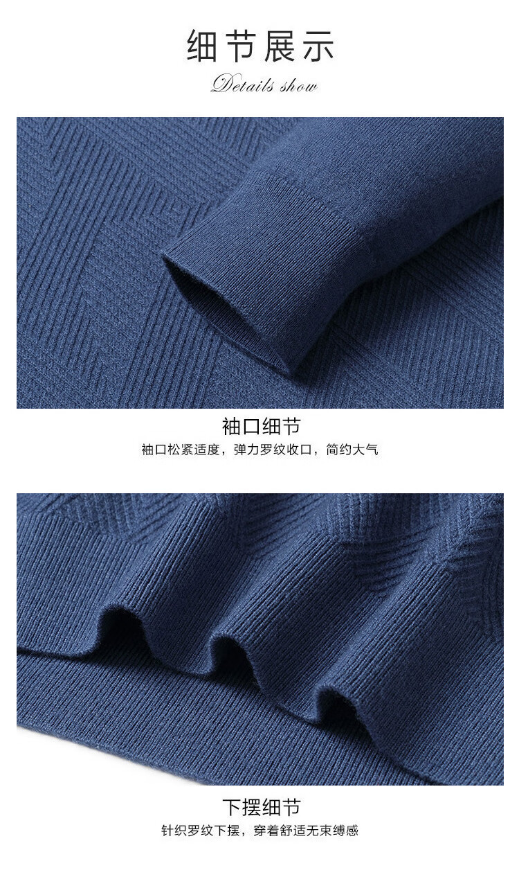 Bosssunwen 100% sheep wool early spring recommended business casual diamond jacquard skin-friendly warm round neck men's woolen sweater gray blue M