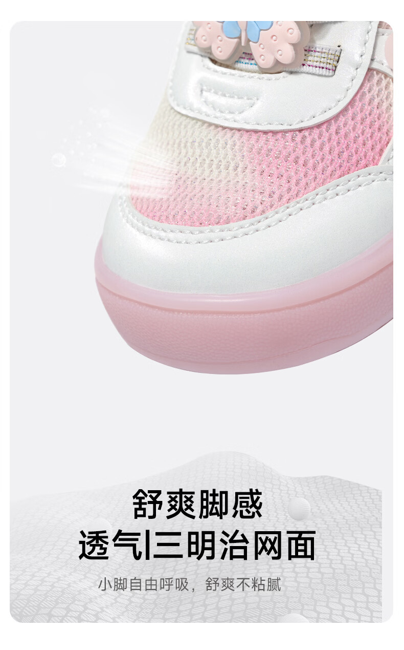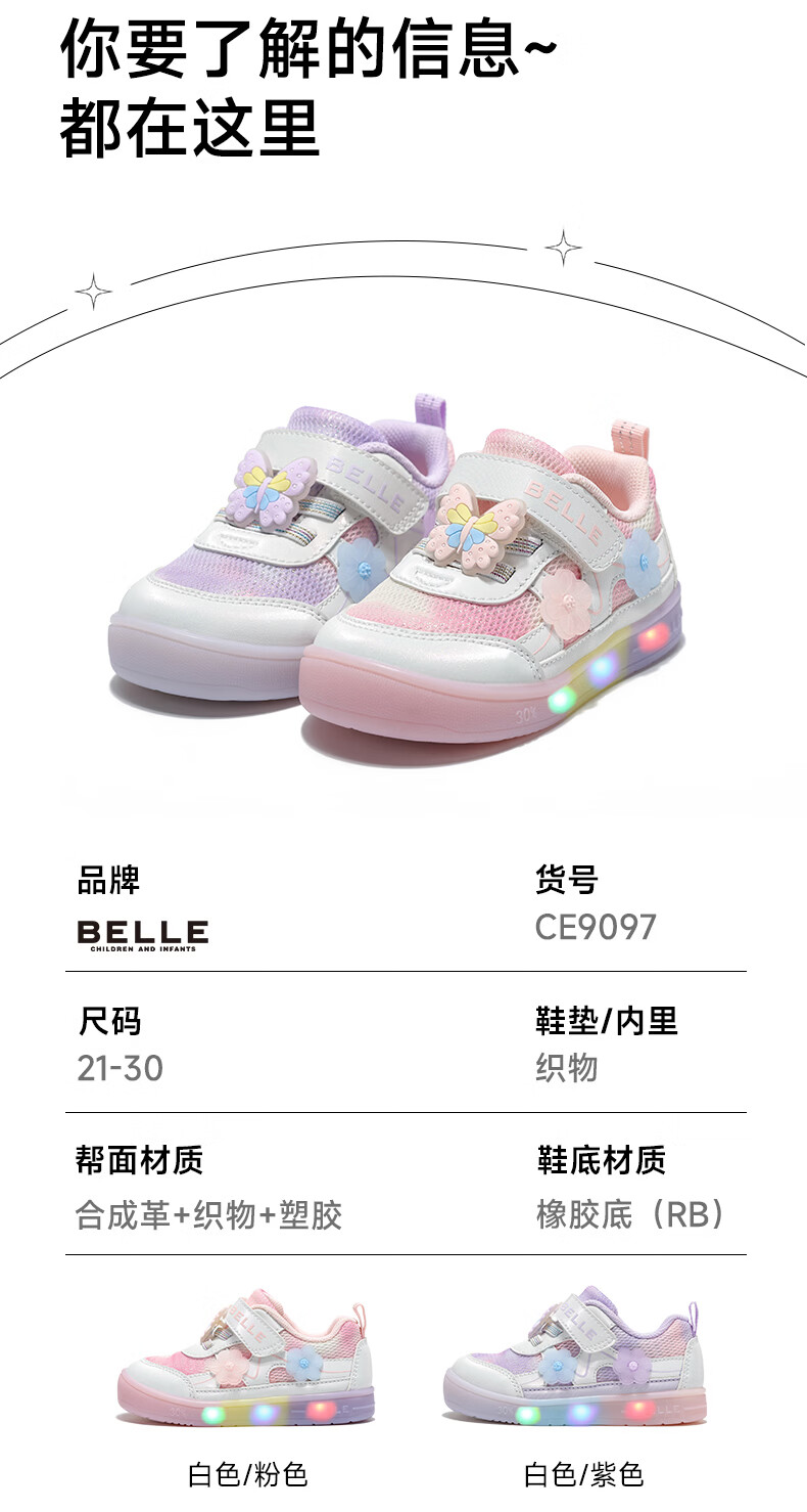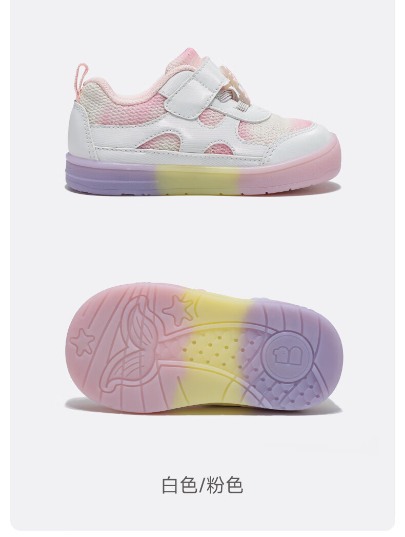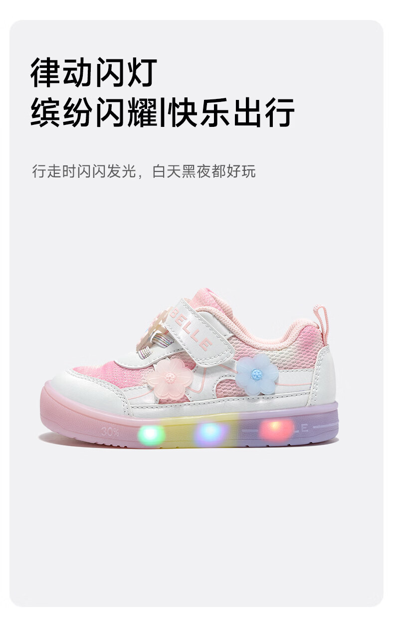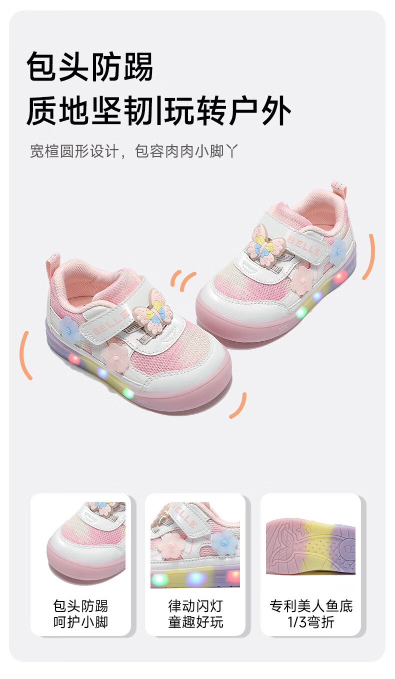 Belle Children's Shoes 26 Spring New Children's Toddler Shoes Girl Butterfly Flash Shoes Soft Sole Lightweight Breathable Baby Casual Shoes Butterfly Flash-White/Pink 21 Suitable for feet about 12.9-13.3cm long