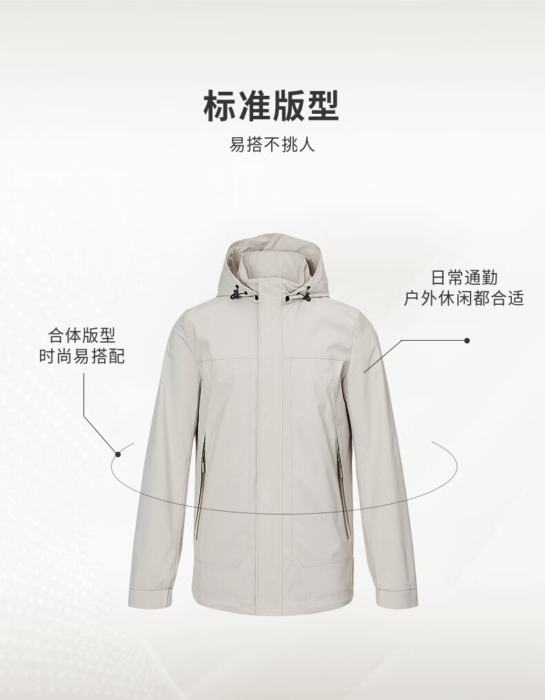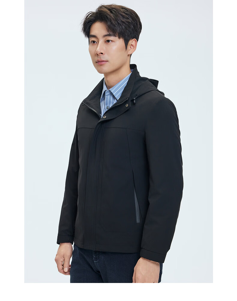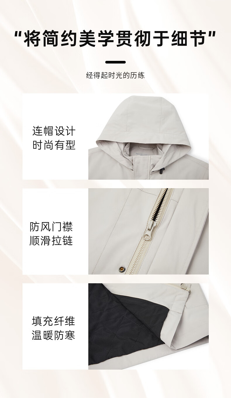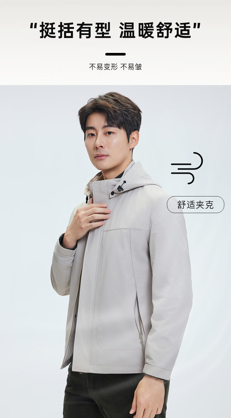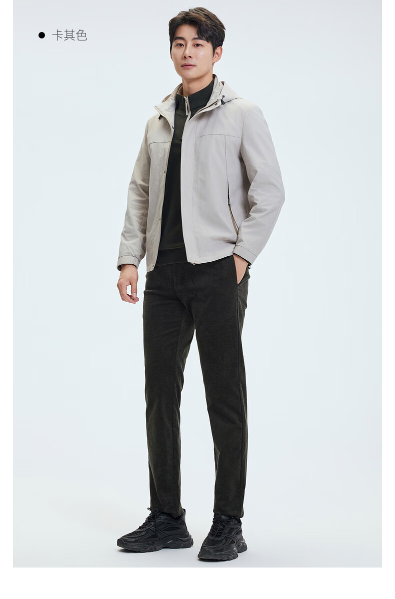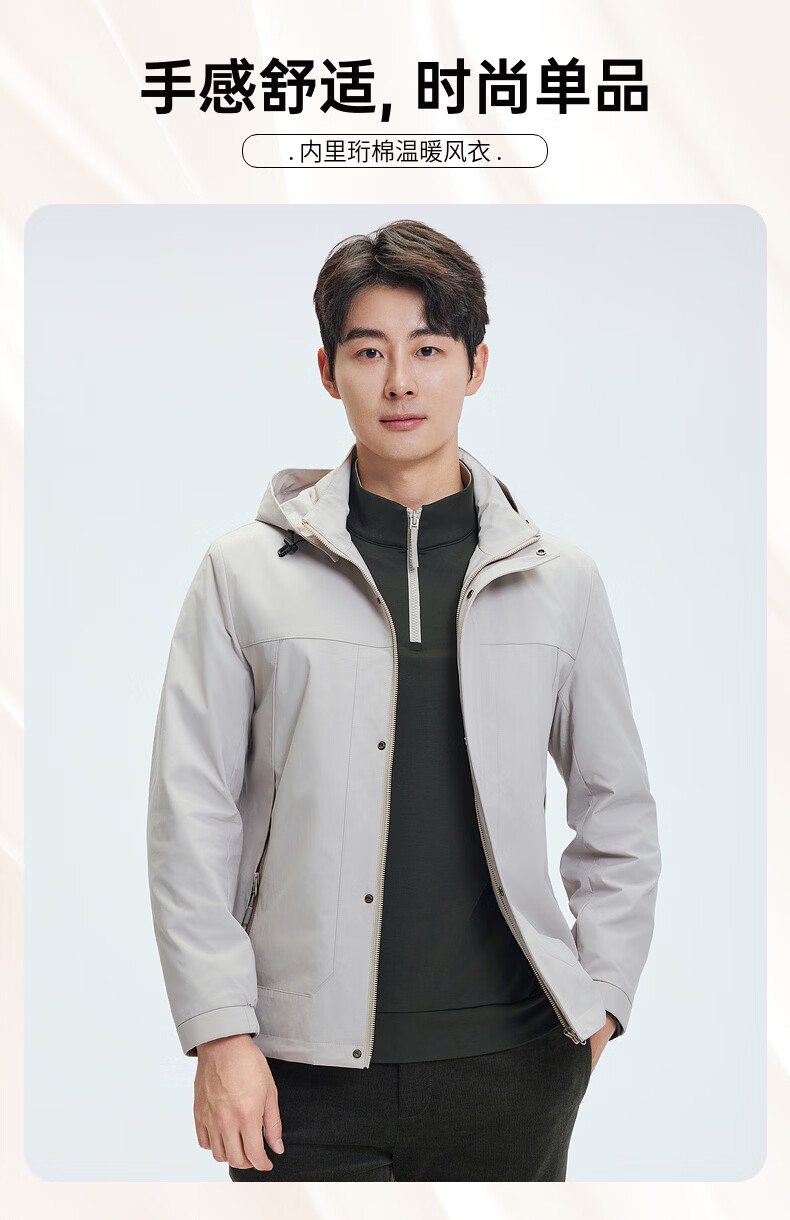 圣得西【门店同款】2025年冬季男款风衣连帽拉链保暖标准版型外套 卡其色 L (170/88A)
