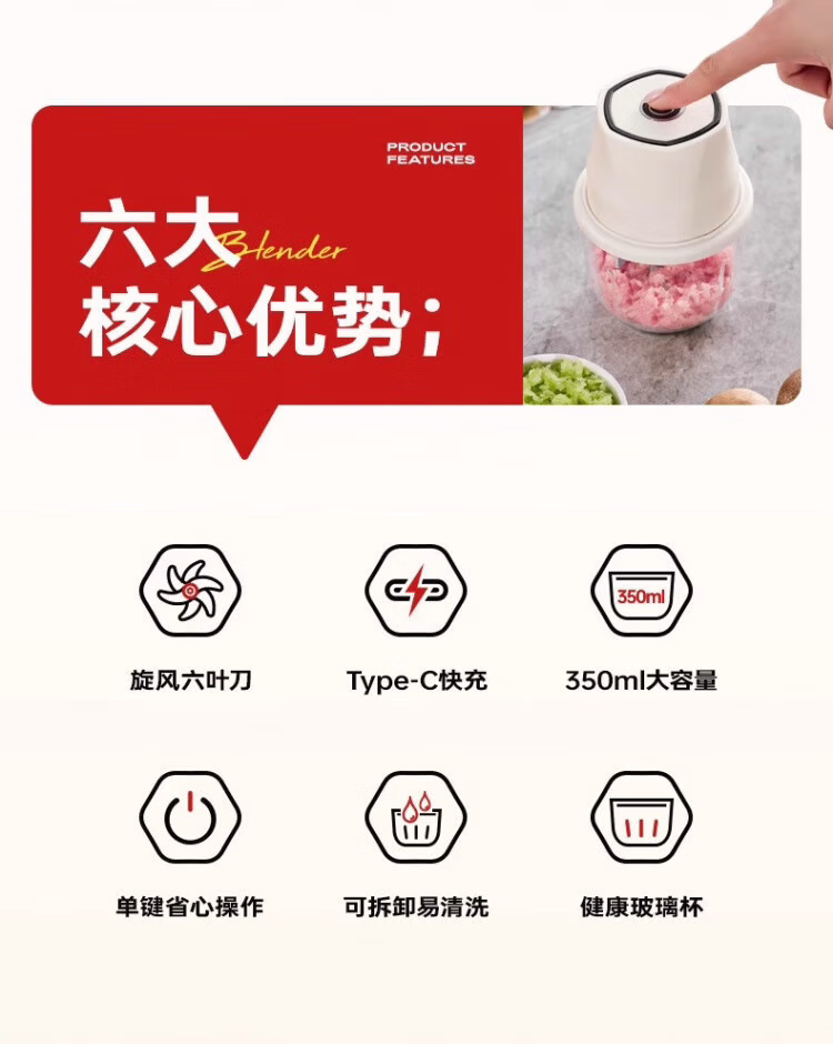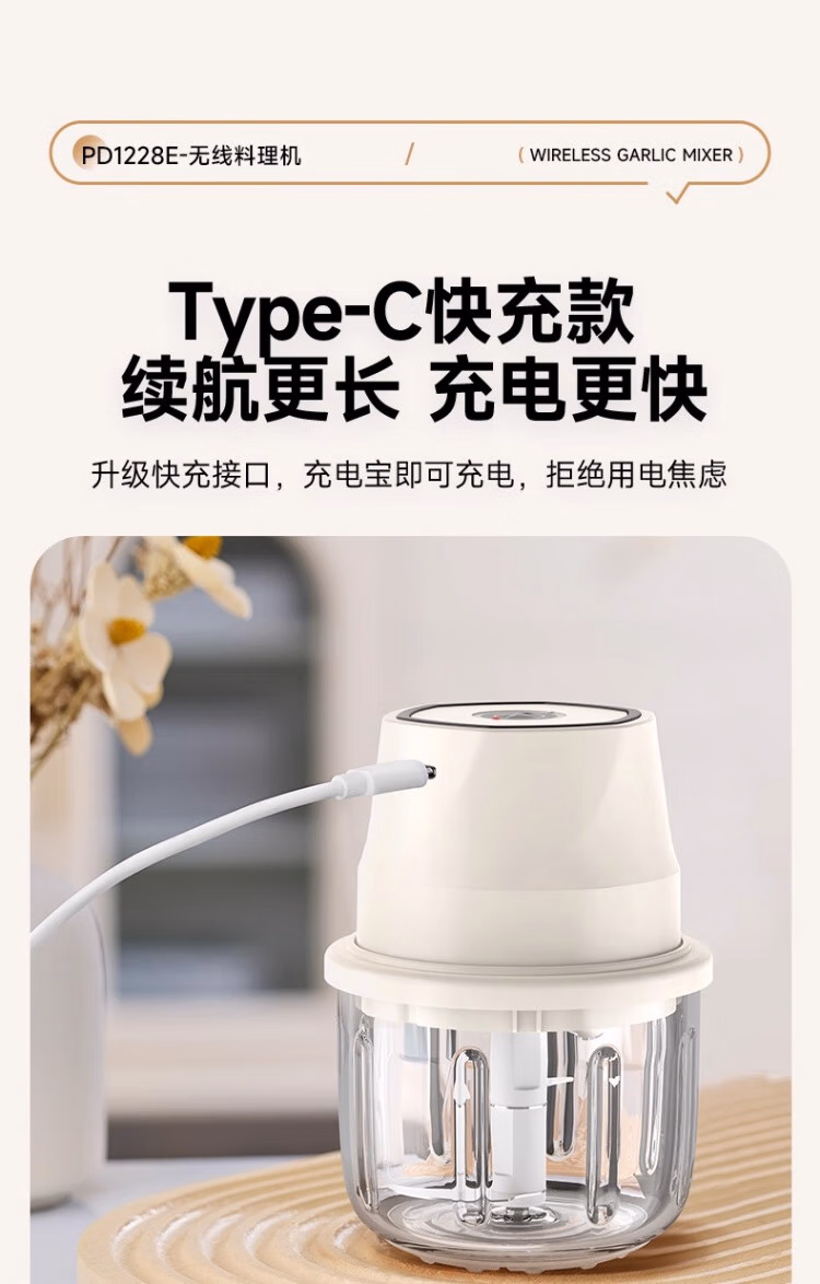 He Jiagong German electric garlic mashed garlic cooking machine minced garlic smashing household meat grinder garlic mincing machine 00ML+ 300ML+ thickened plastic cup + stainless steel four-leaf knife