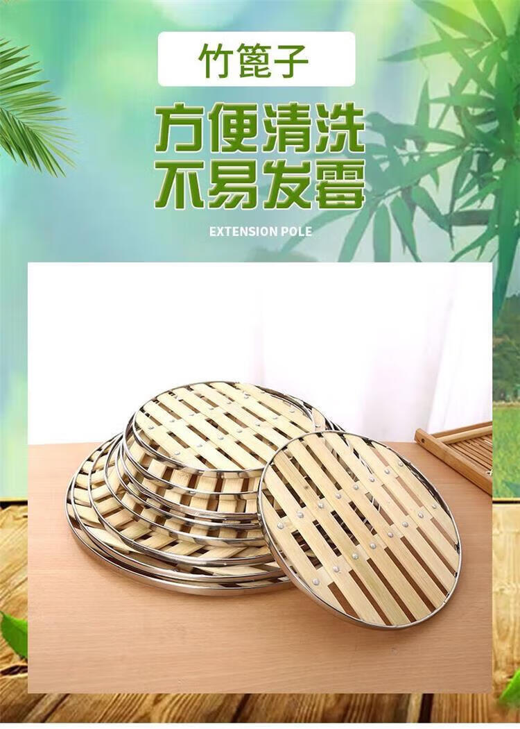 He Jiagong Bamboo Grate Household Round Grate Bamboo Steamed Slices Steamed Buns Hanamaki Buns Xiao Long Bao Dessert Noodles Diameter Unwrapped 42