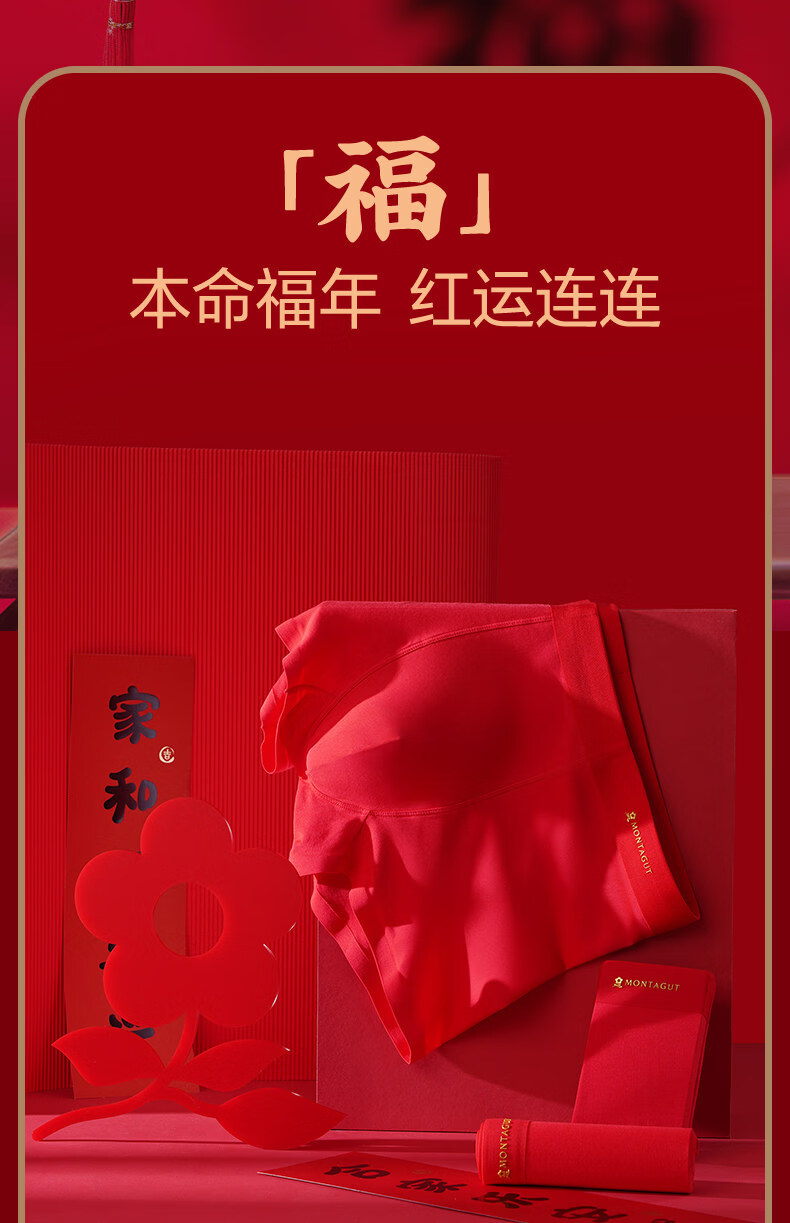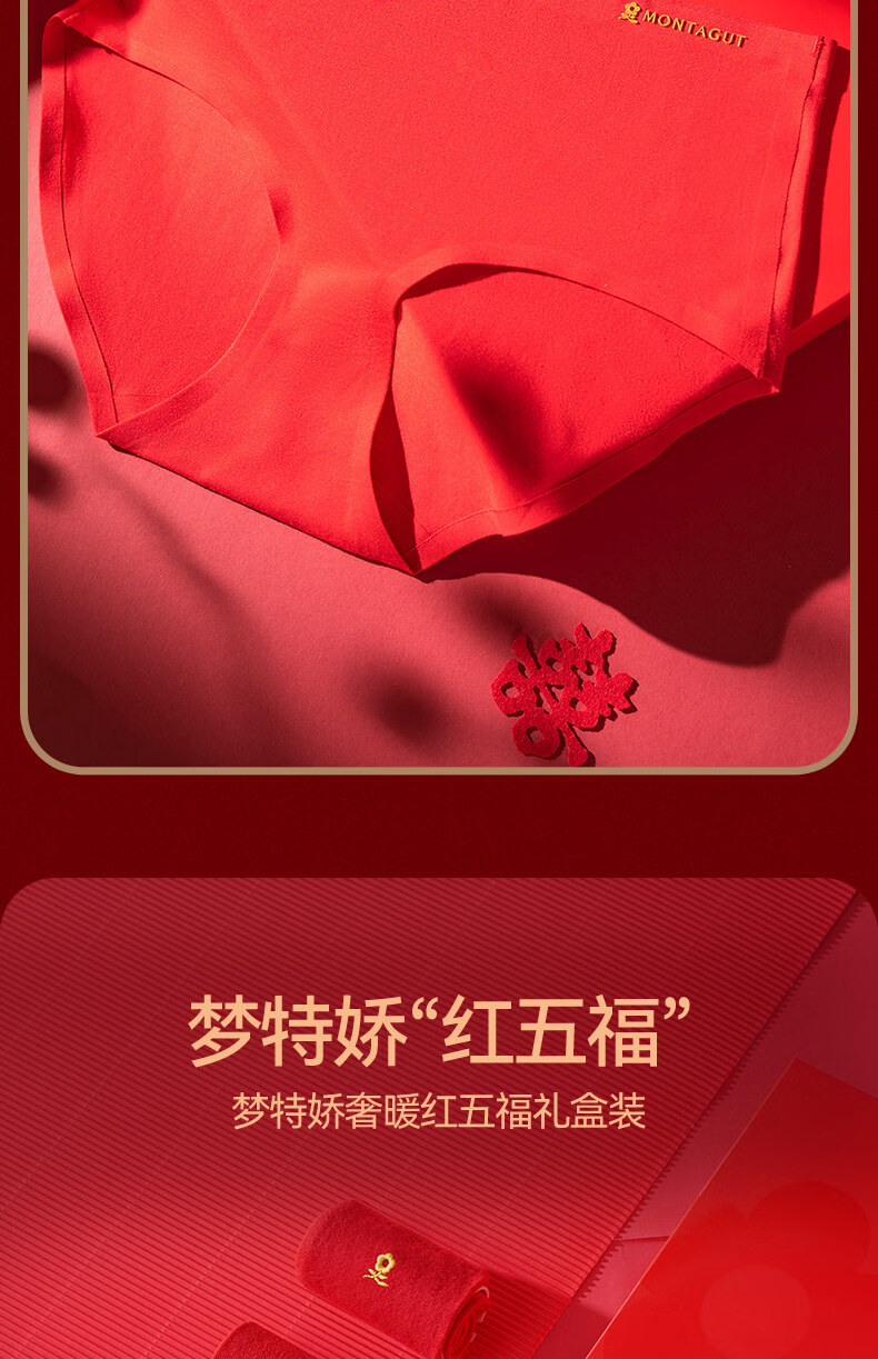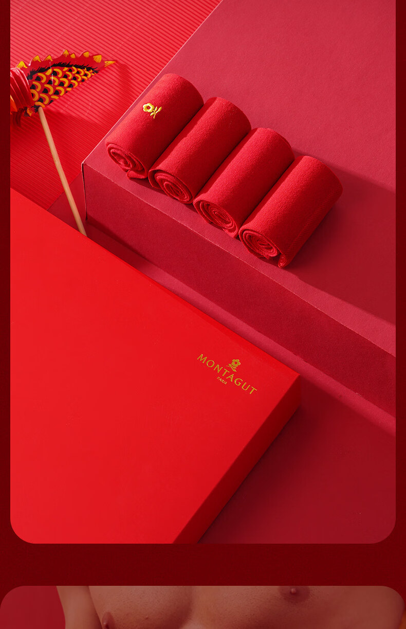 MONTAGUT Men's Zodiac Year Pure Cotton Socks Men's Big Red Mid-Tube Socks Women's Couple Wedding Gifts are Horse Gift Box Men Modal Underwear*2+Cotton Socks*2 M Women Suitable for 80-100Jin Jin equals 0.5 kg