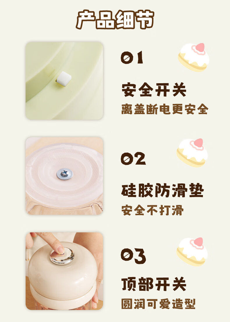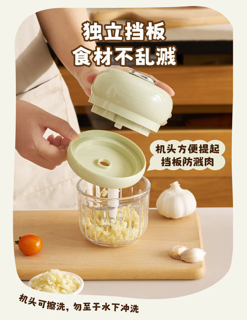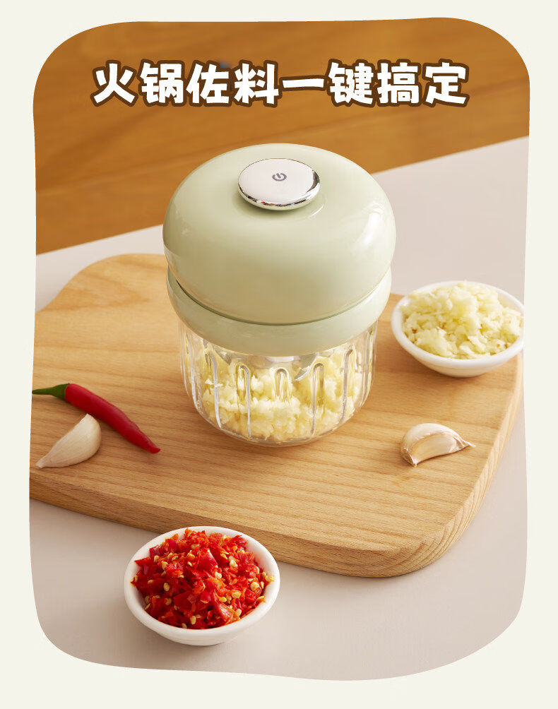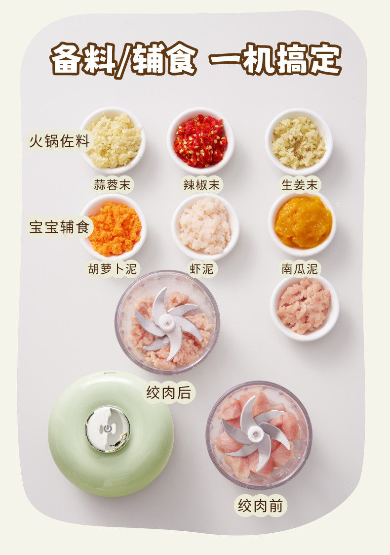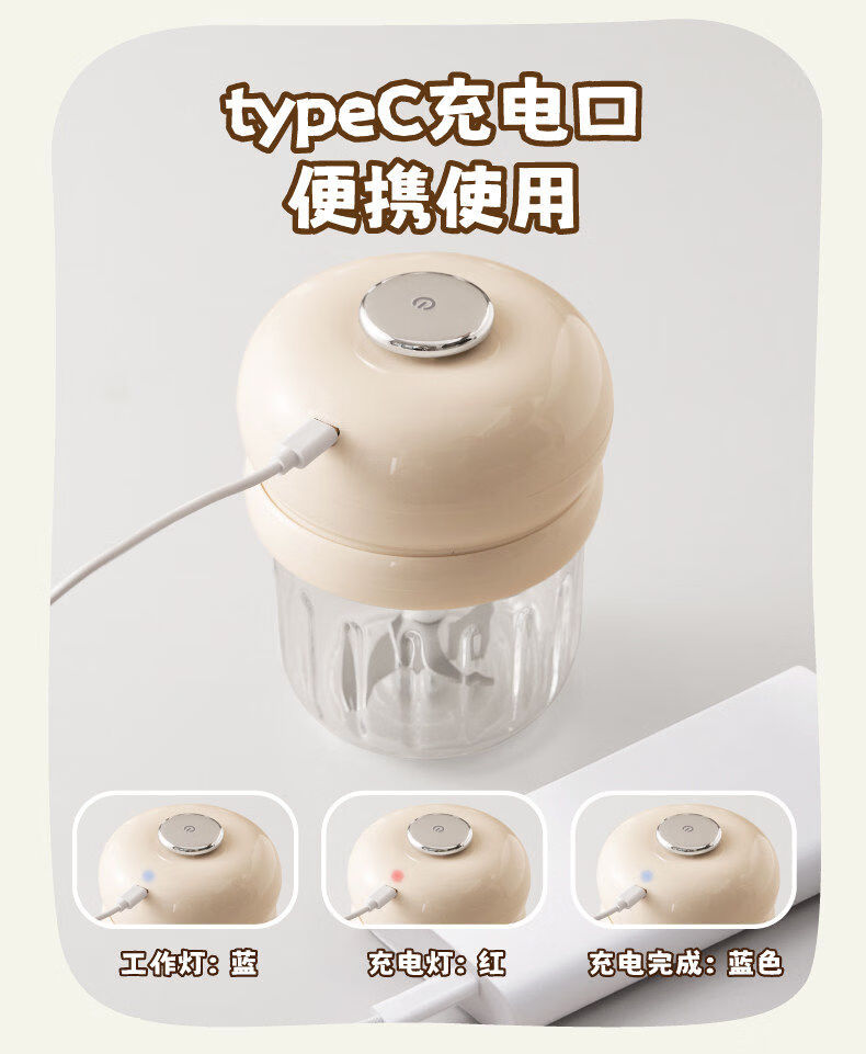 OEING minced meat only takes a few seconds, electric garlic beater, household meat grinder, garlic pounder, food supplement machine, small garlic mince artifact, cream white, free type-C charging cable