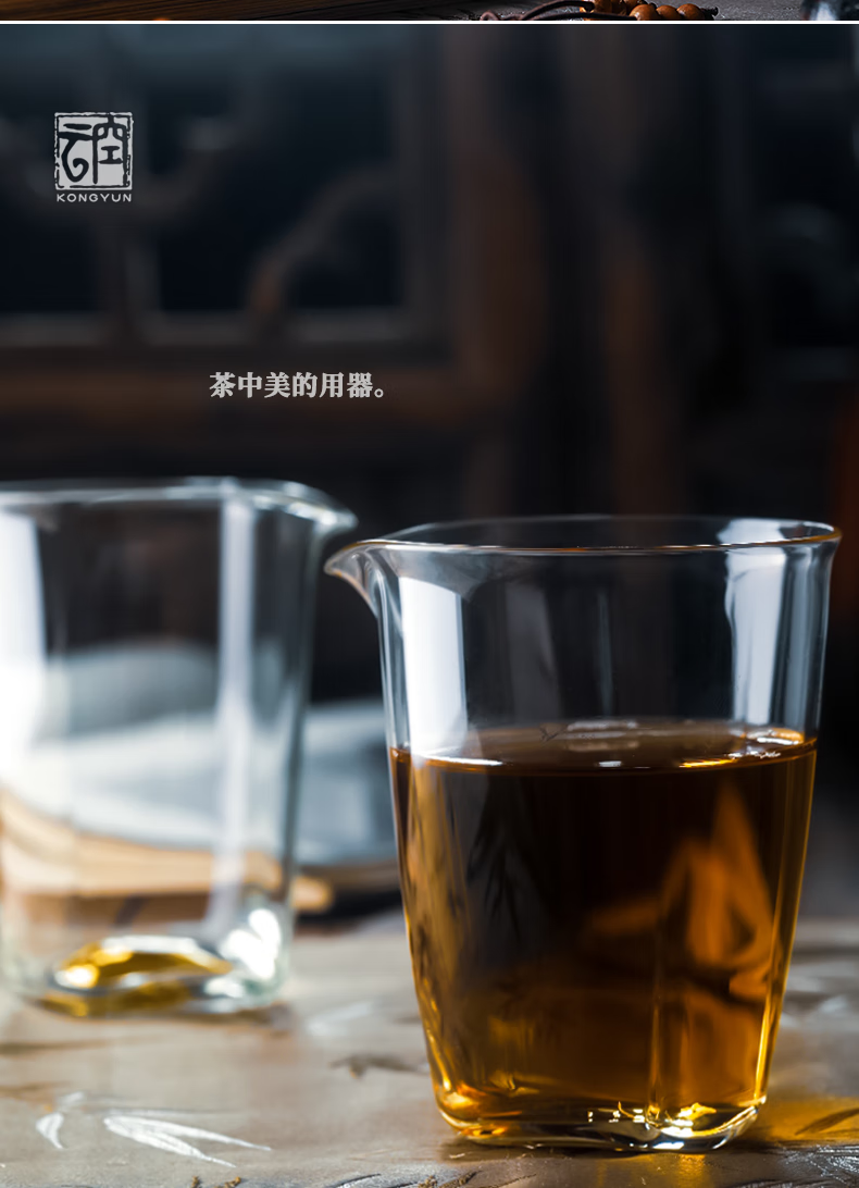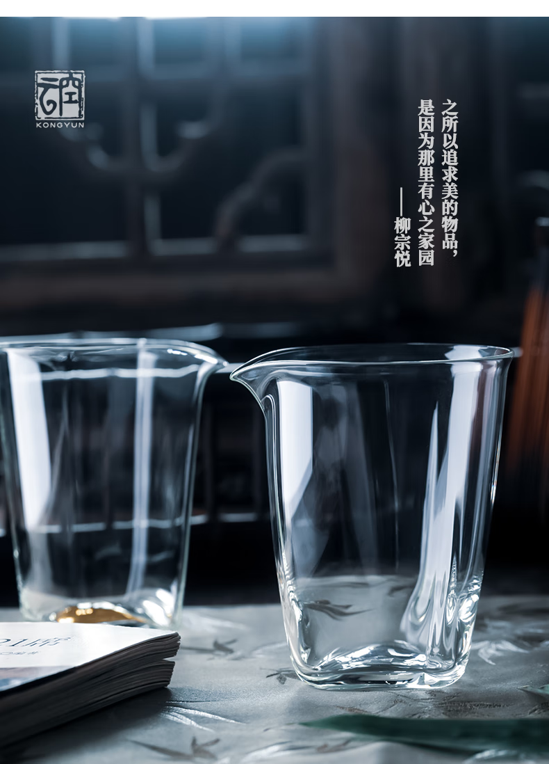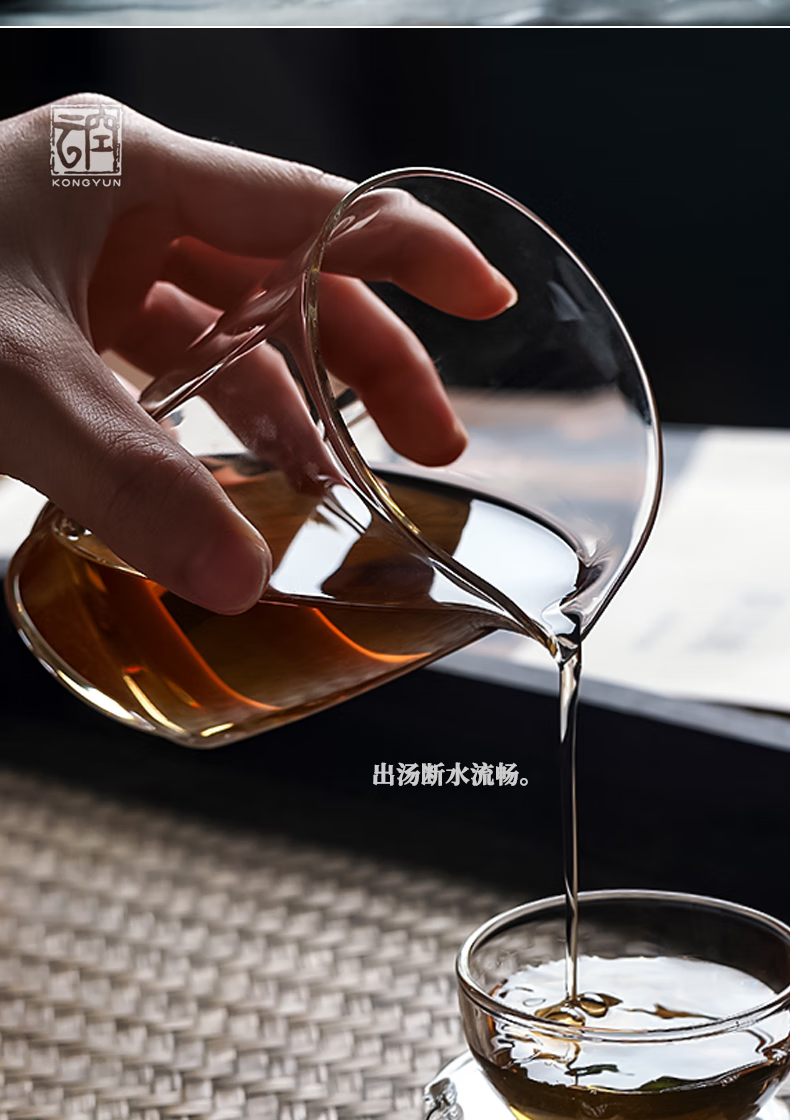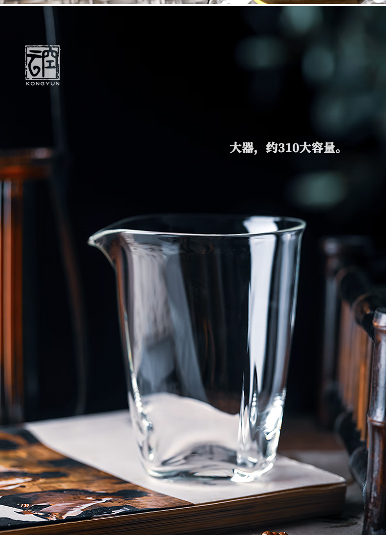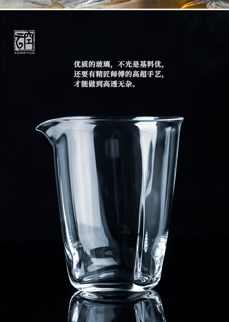 Qiaoyou Kongyun handmade floating glass fair cup Japanese-style heat-resistant tea set complete set tea maker with tea filter integrated gift single male cup approximately 310ML carton packaging