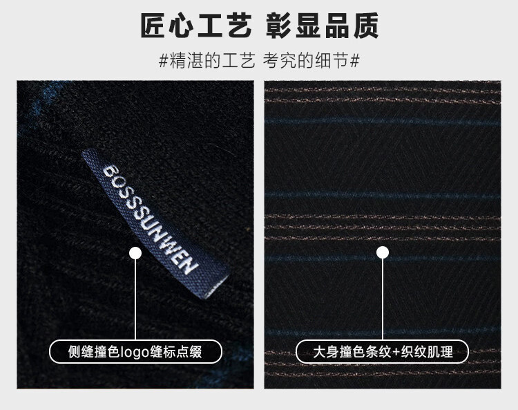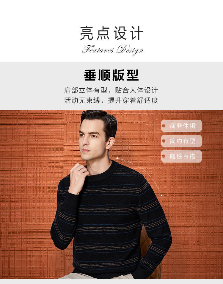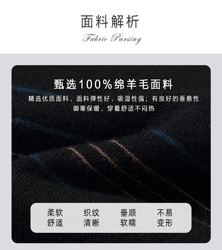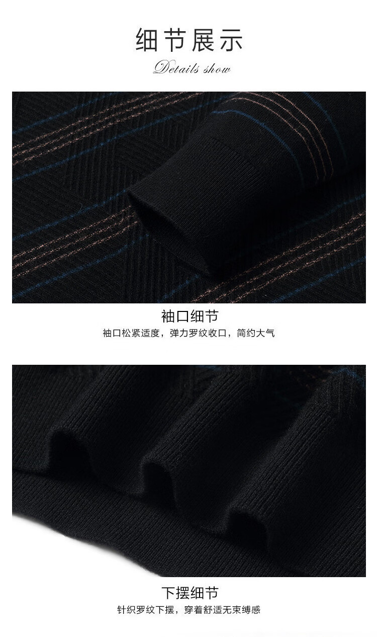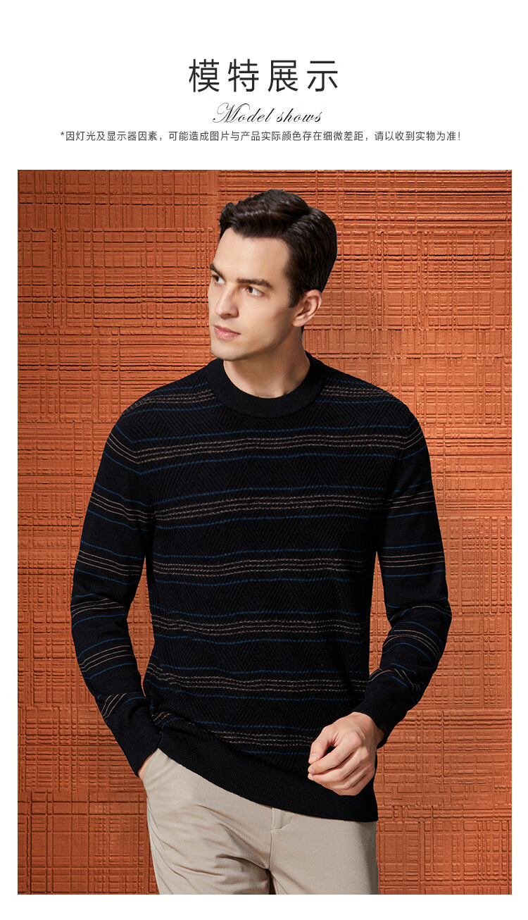 Bosssunwen 100% sheep wool recommended for spring business casual skin-friendly soft contrast striped round neck men's wool sweater black M