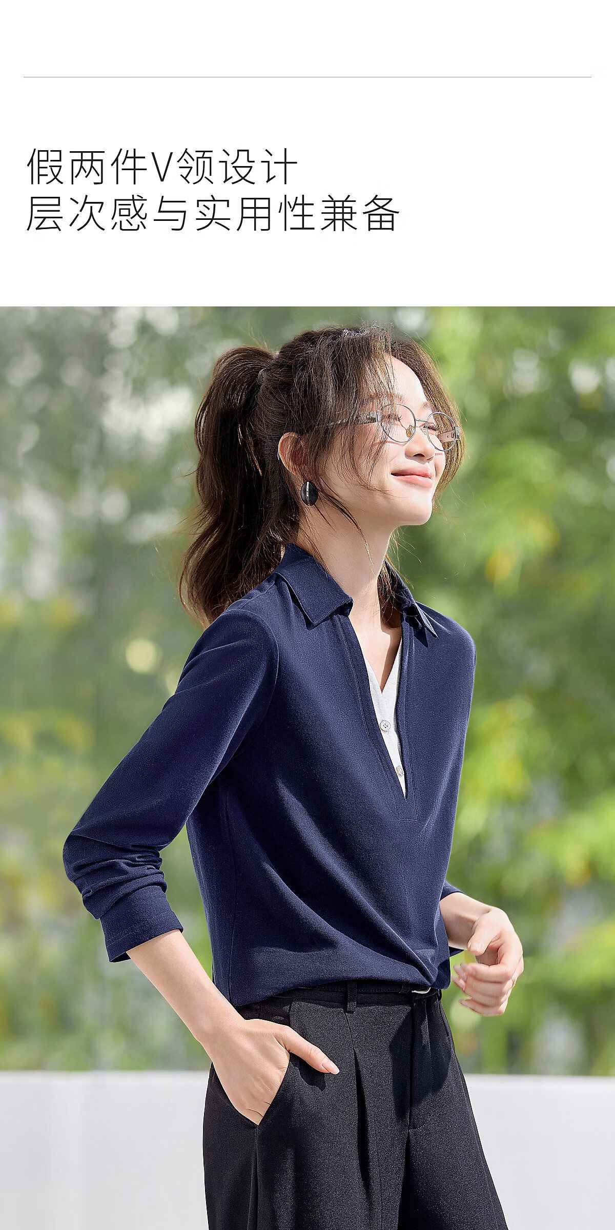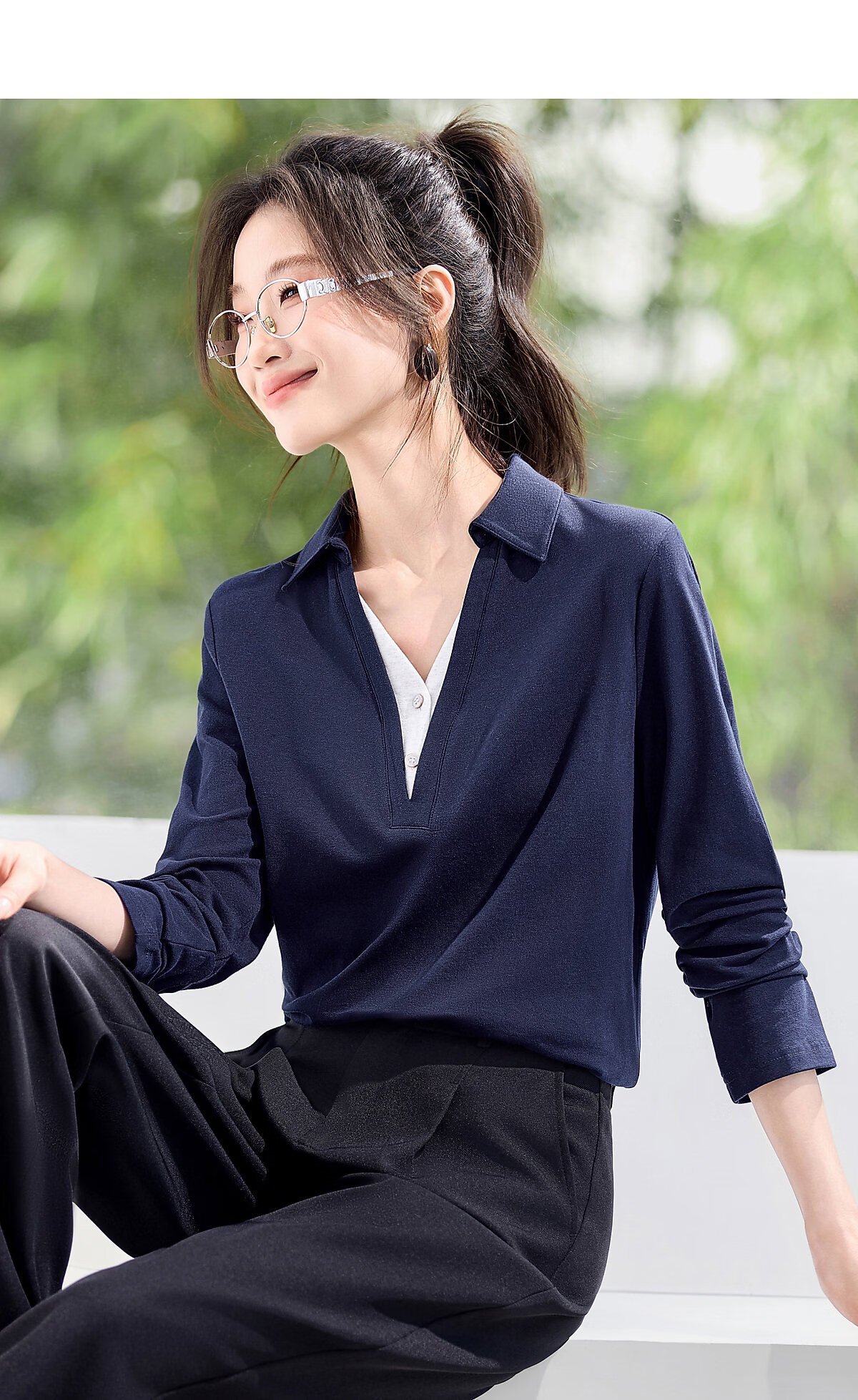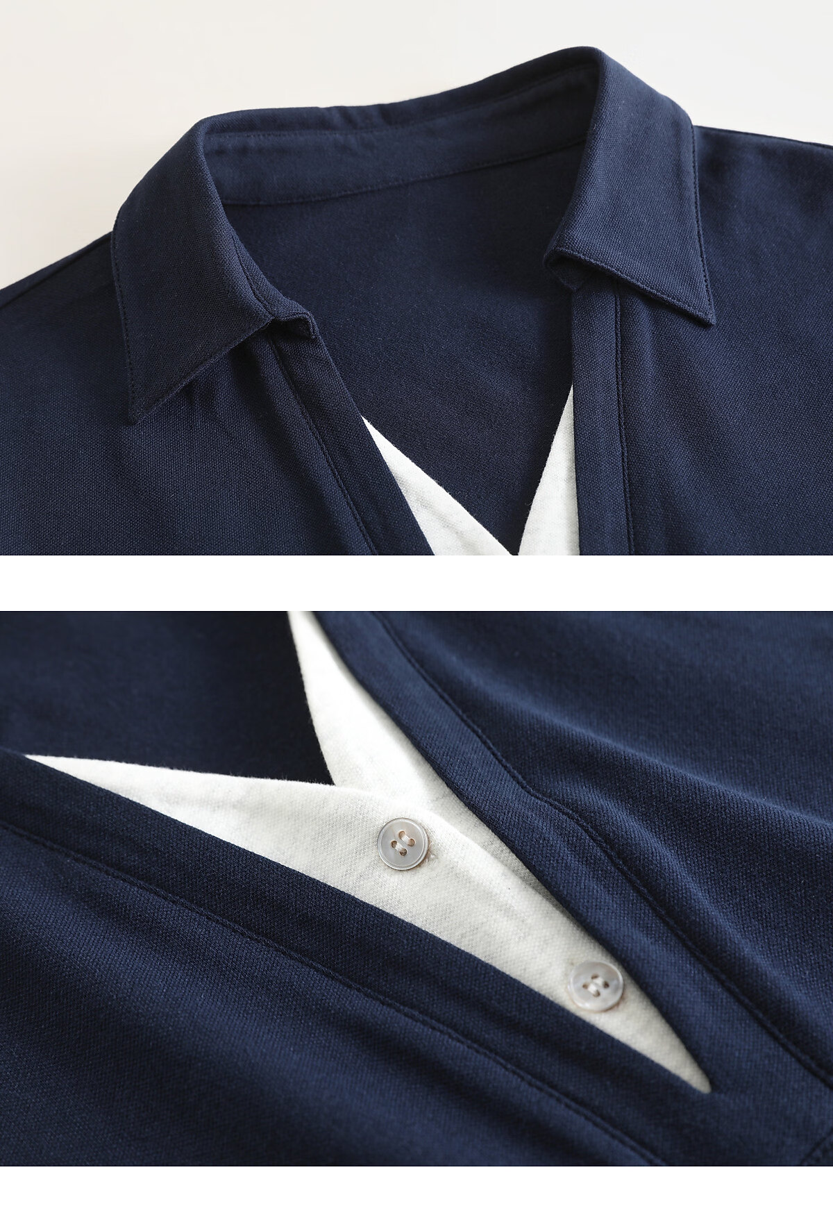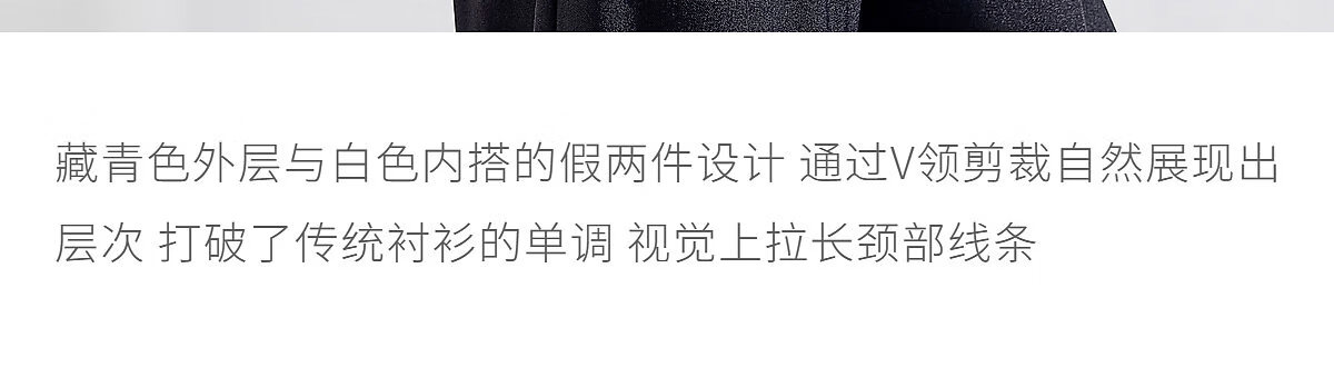 Mohan Yimei Top 2026 Spring New POLO Fake Two-Piece Contrast Color V-Neck Slim Versatile Slim Long-Sleeved Shirt Navy S