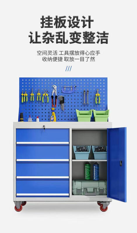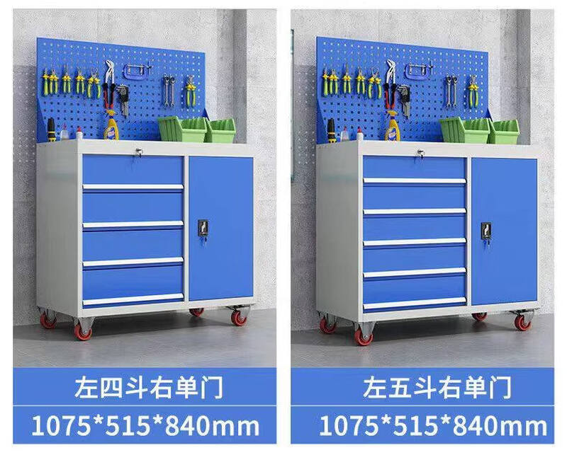 Renjuyi multifunctional tool cart heavy-duty tool cabinet car repair metal cabinet factory workshop with mobile drawer left four buckets right single door wheel