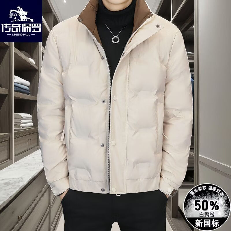Hengyuan Xiangchuan 2026 Men's Down Jacket Winter Slim Thick Warm Stand Collar Jacket for Men Brown 2XL Recommended 135-150 Jin Jin equals 0.5 kg