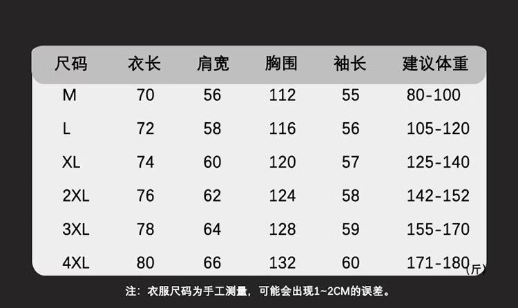 China (cm) 165 / 88-90 170 / 96-98 175 / 108-110 180 / 118-122 185 / 126-130
