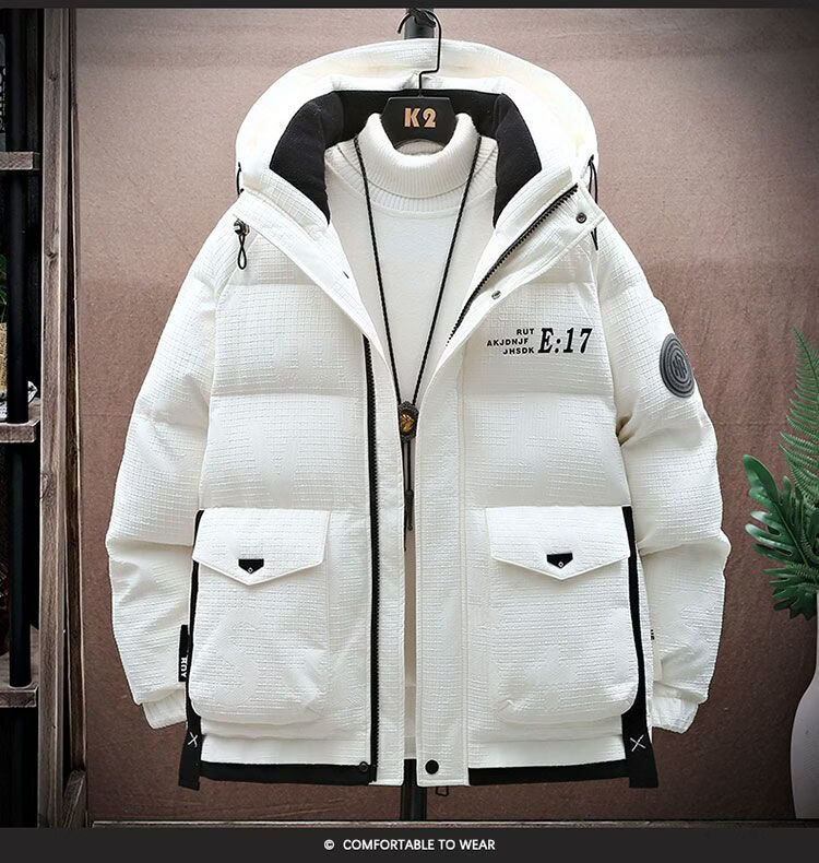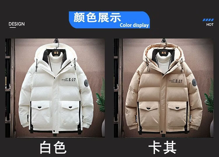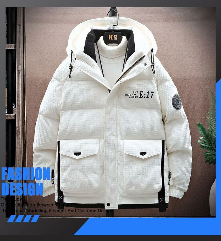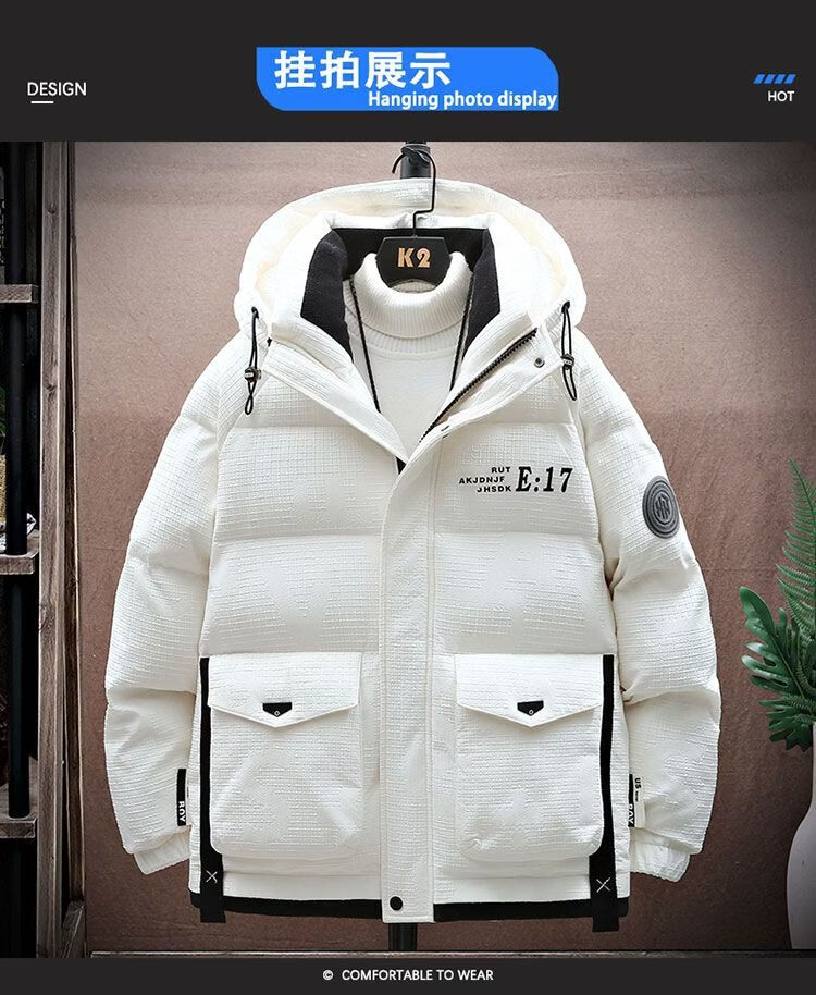 Hengyuanxiang Зимняя куртка на белом утином пуху Мужская пуховая куртка для подростков Утепленная теплая куртка с капюшоном Защита от холода Daduo Down 50 Белый утиный пух 918 Белый 3XL