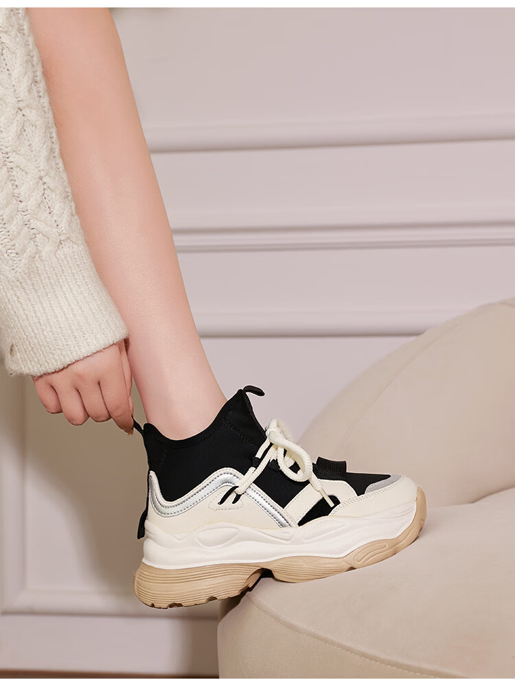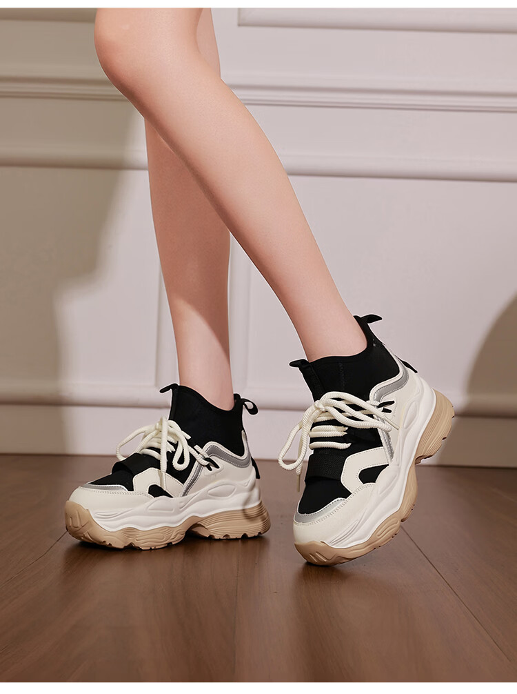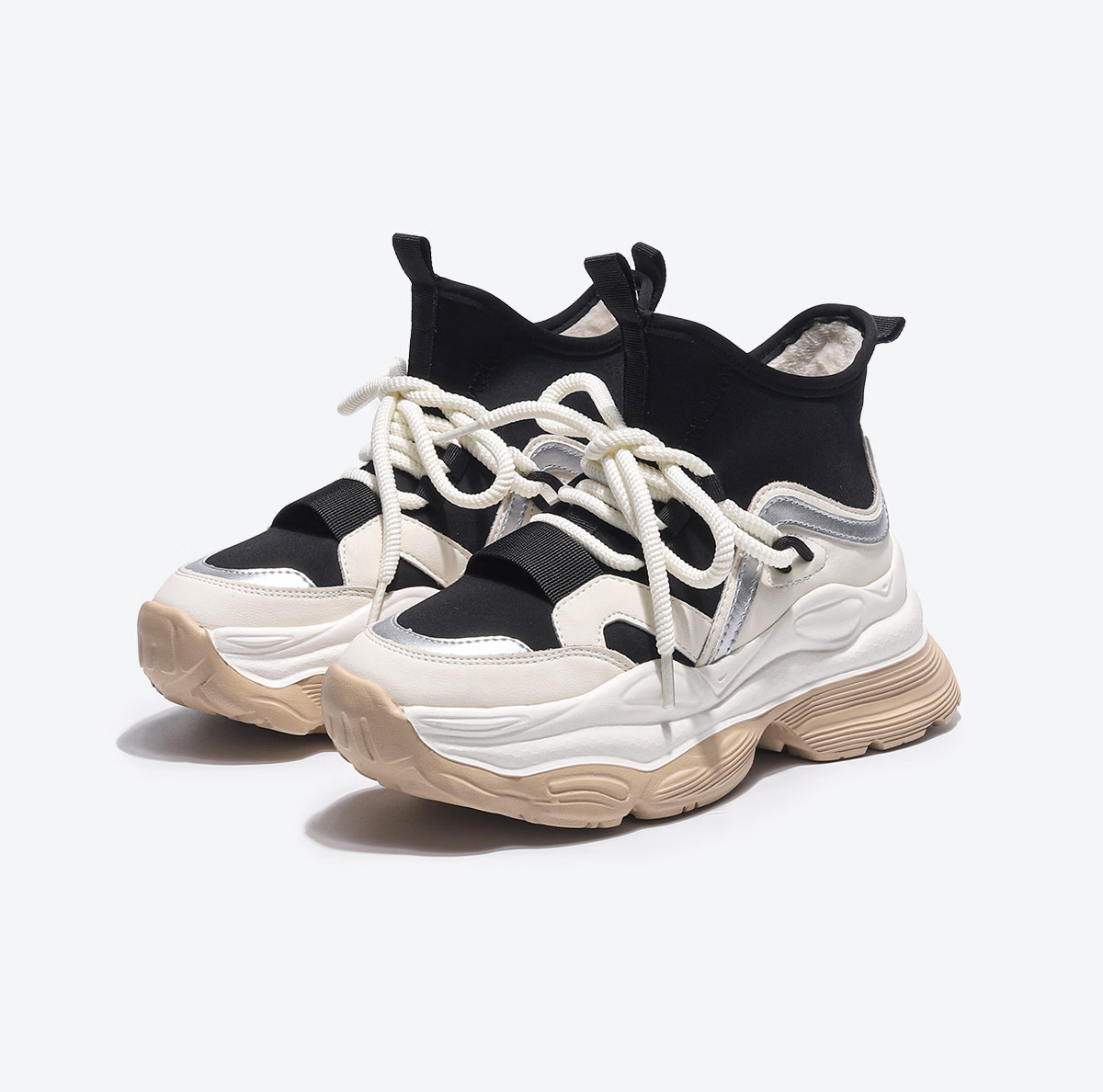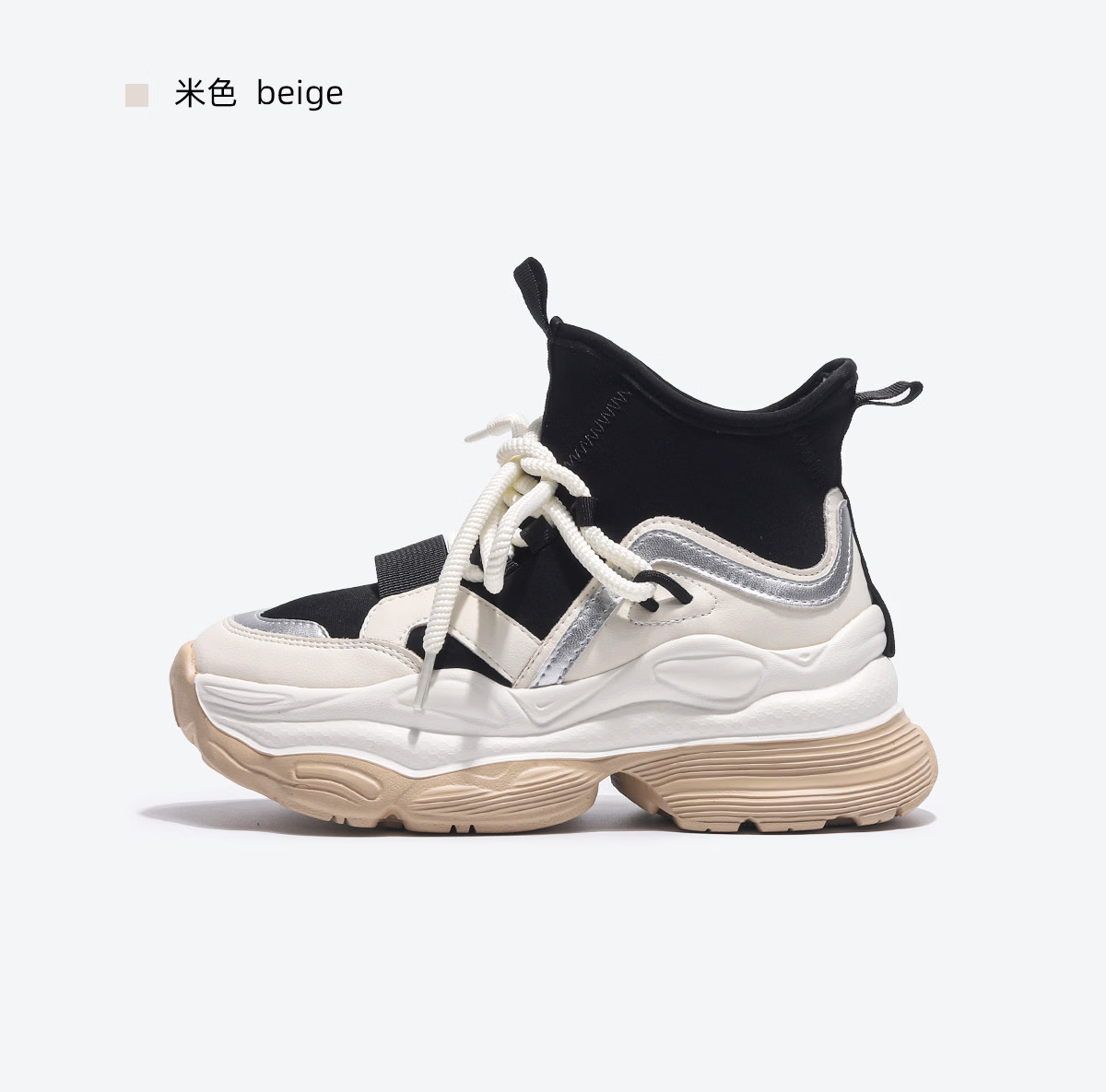 IQXX increased 8.5CM plus velvet dad shoes for women 2026 winter new anti-slip warm snow boots fashionable cotton shoes beige velvet 36