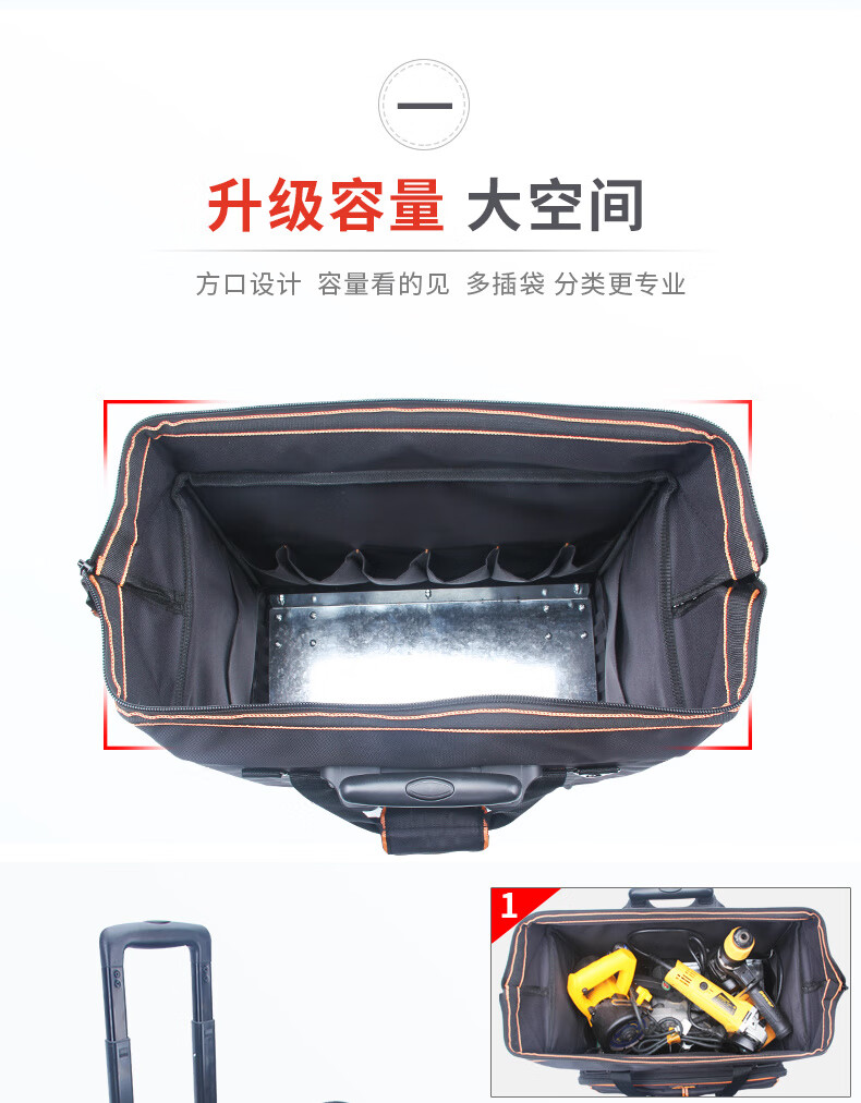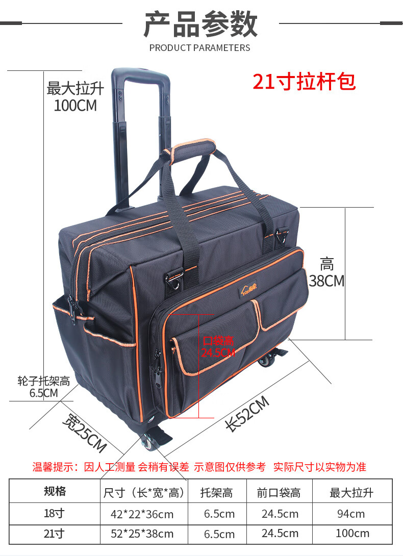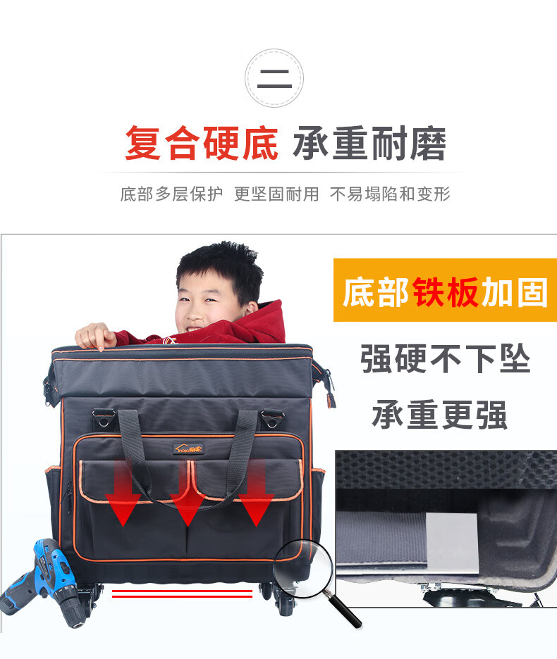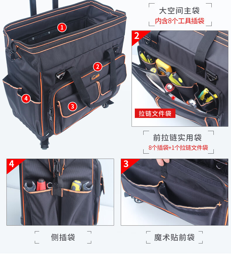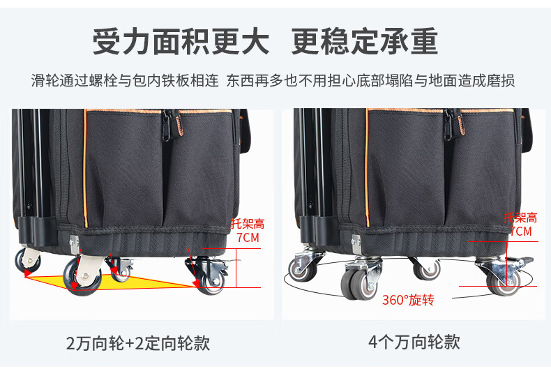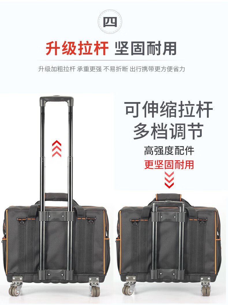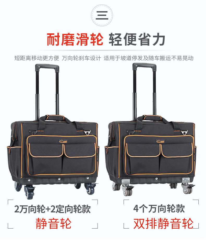 Sailoto Tool Kit Repair Kit Large Multi-Function Canvas Home Appliance Repair Electrician's Bag Trolley Tool Box Bag 18-inch Four-Side Hardened 4-Way Universal Wheels Double Row Wheels