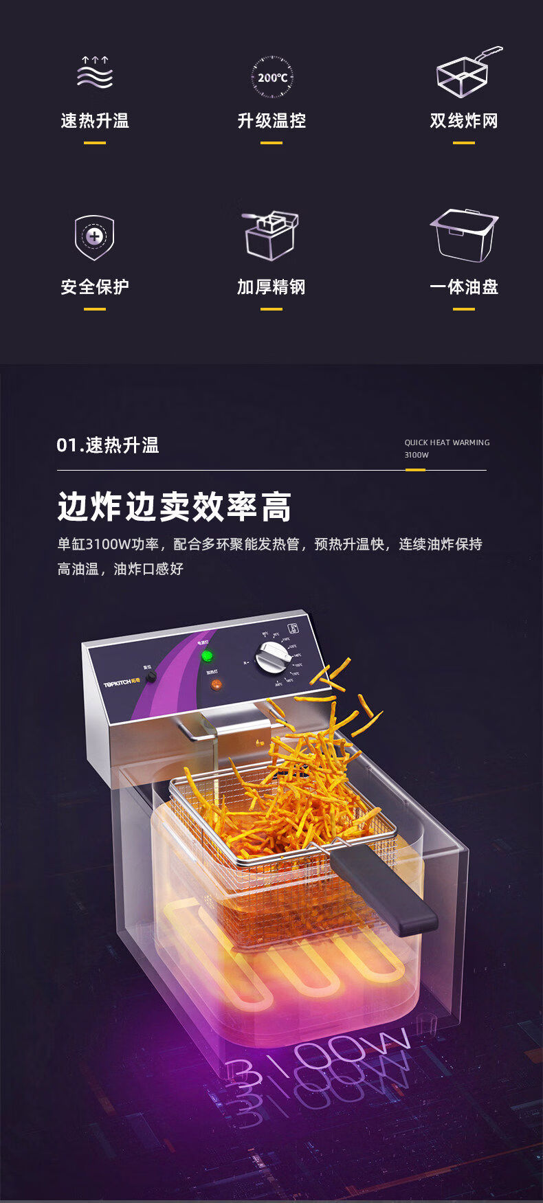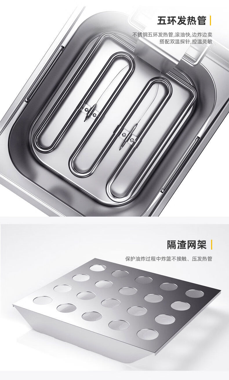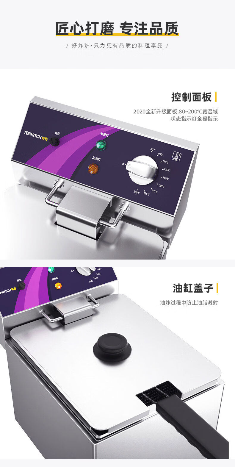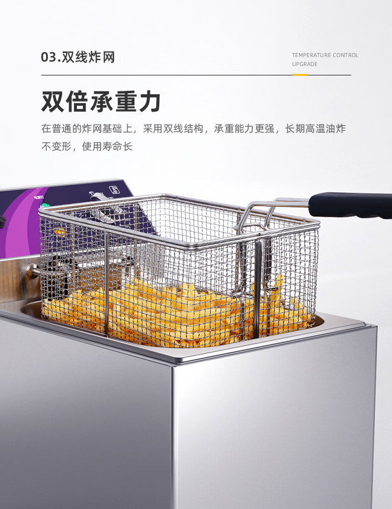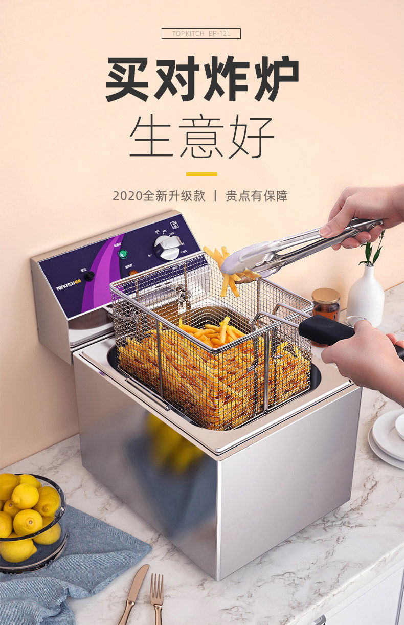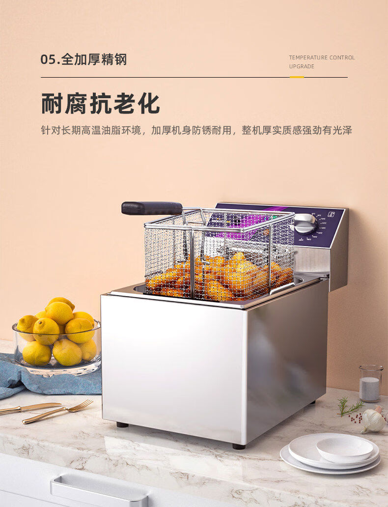 Yong Huan Electric Fryer Commercial Electric Fryer Single and Double Cylinder Electric Fryer Constant Temperature Fried Chicken and French Fries Kebab Pot 12L 1 inch EF-12L deep tank 12 liters
