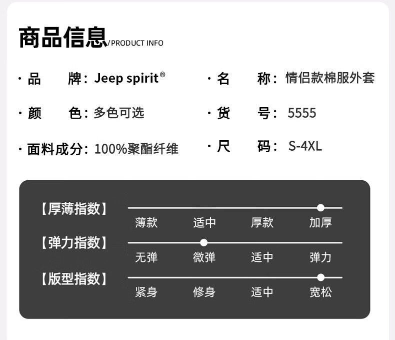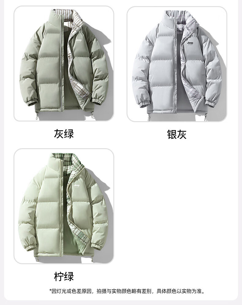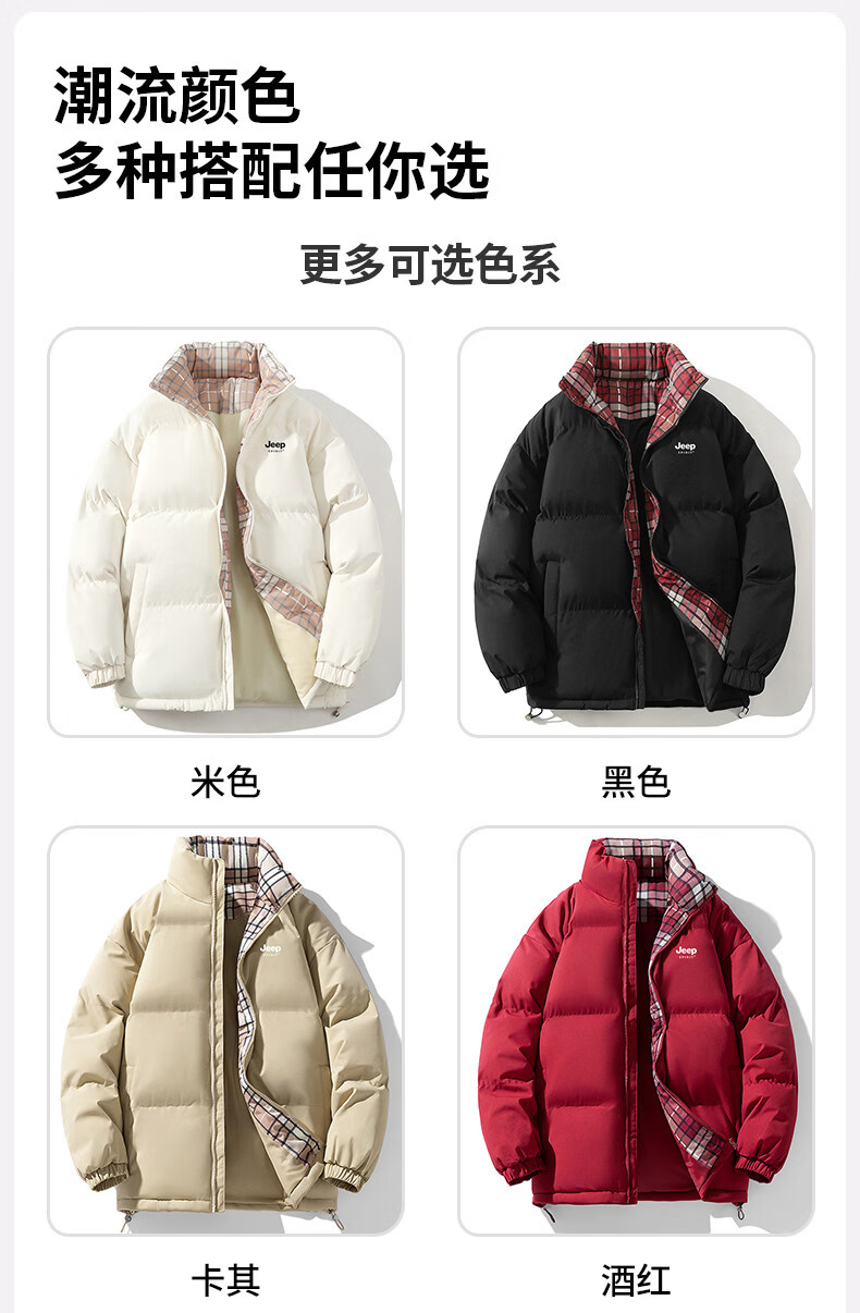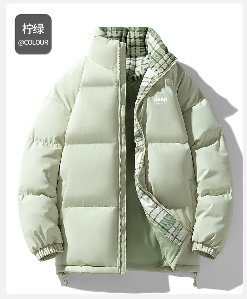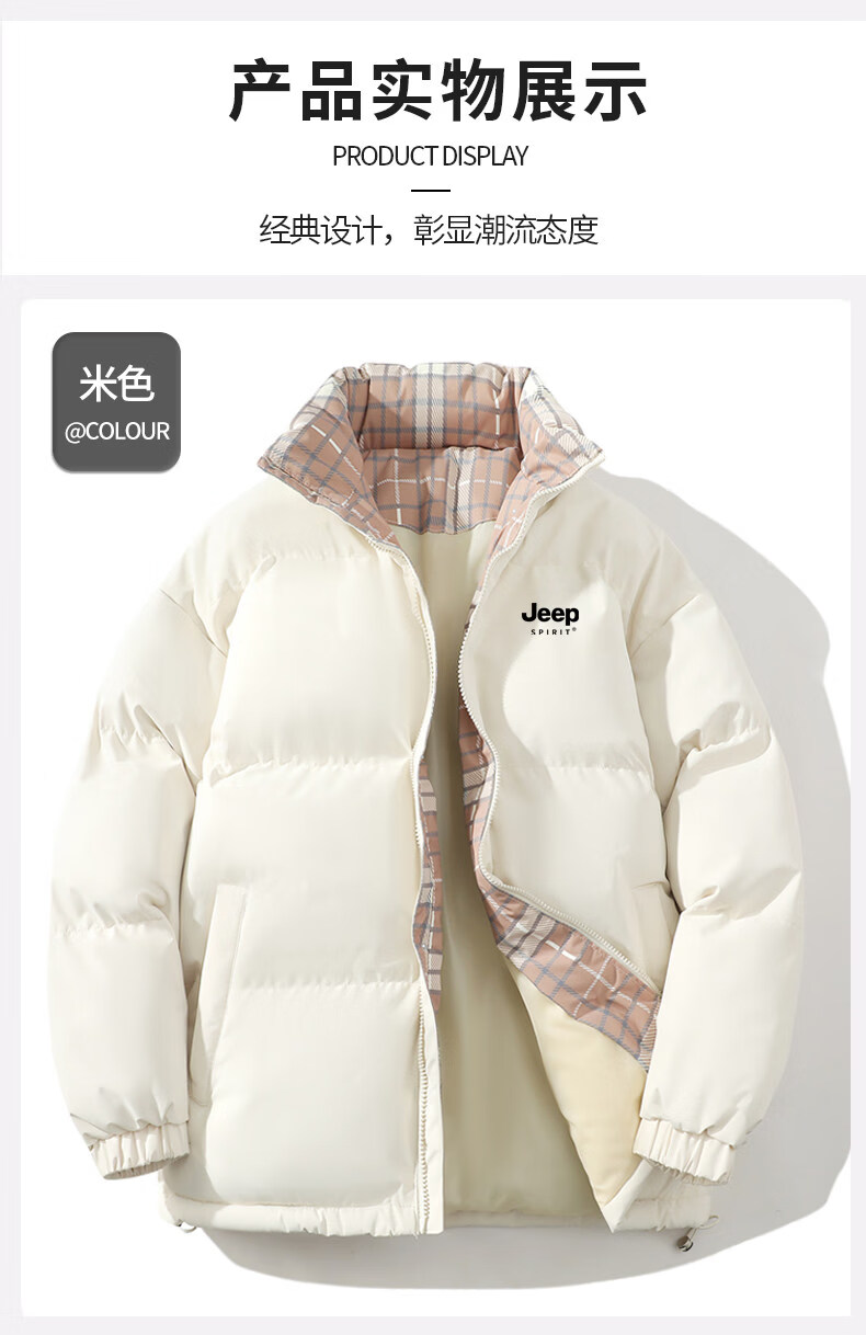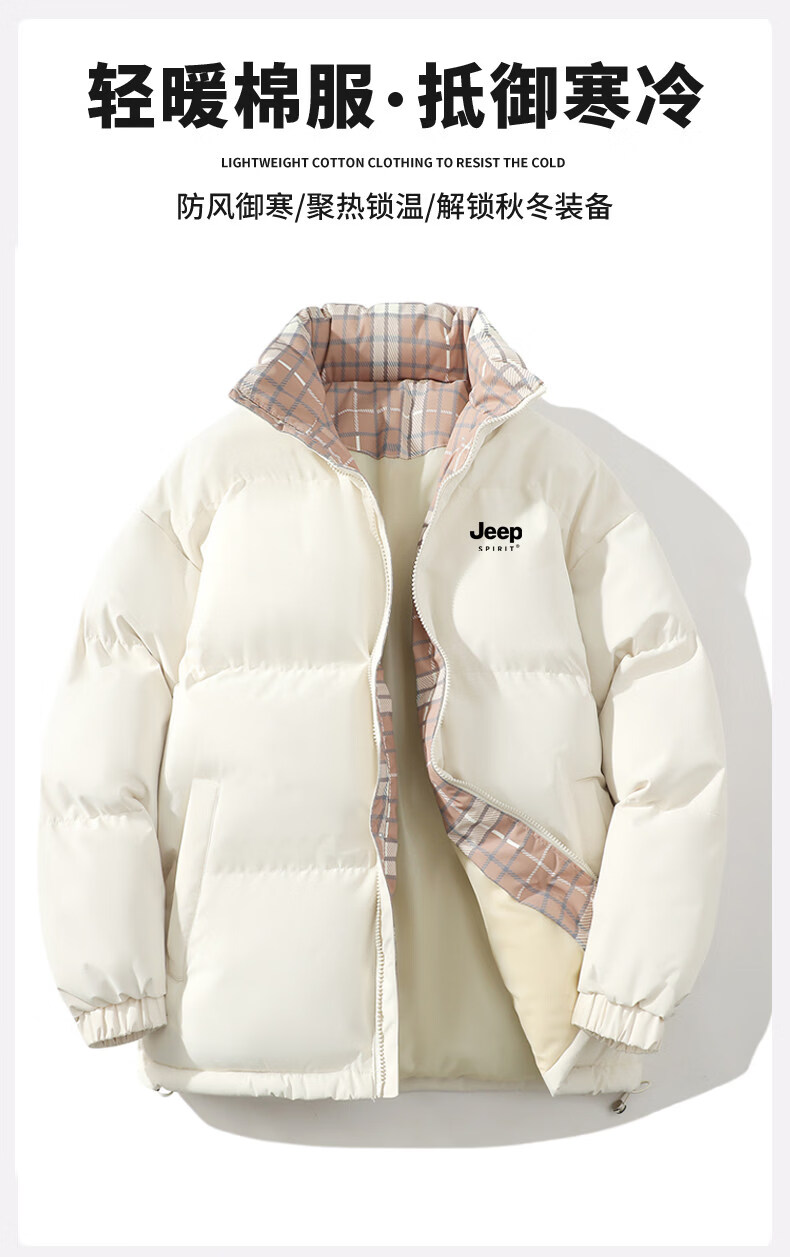 JEEP SPIRIT Down Cotton Jacket Women's 2026 New Winter Small Couple Bread Jacket Thickened Cotton Jacket New Product Men and Women Same Style Jelly Blue Warm and Thickened S