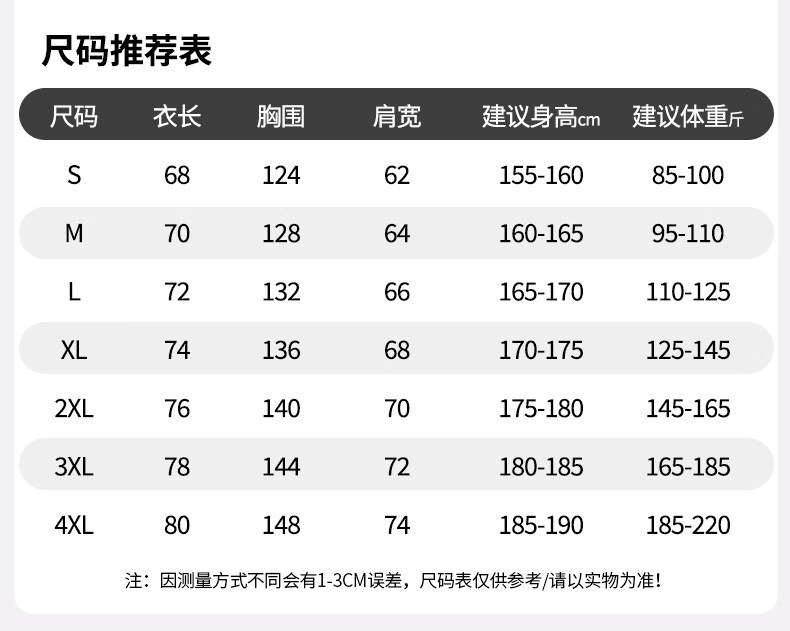 China (cm) 165 / 88-90 170 / 96-98 175 / 108-110 180 / 118-122 185 / 126-130